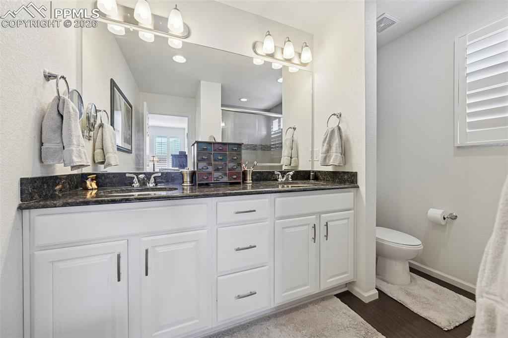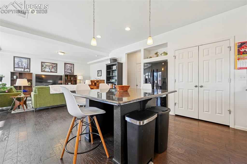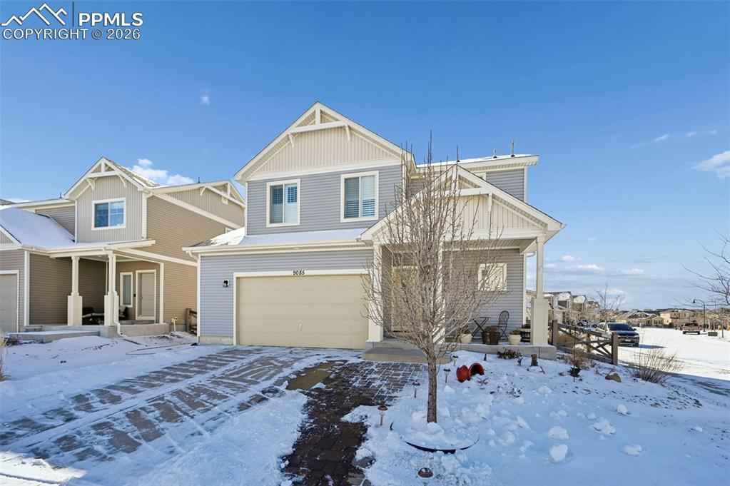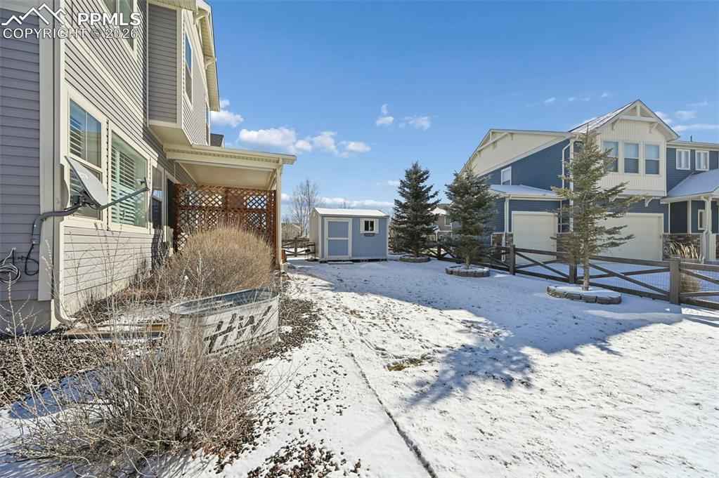 Welcome to this move-in ready 3-bedroom home in the heart of Banning Lewis Ranch, one of Colorado Springsx2019; most sought-after master-planned communities. Thoughtfully designed and beautifully maintained, this home offers an open, light-filled layout perfect for both everyday living and entertaining.xD;xA;xD;xA;The main living area features engineered hardwood floors, a stylish tray ceiling in the living room, and abundant natural light enhanced by plantation shutters throughout. The kitchen is a true centerpiece with granite countertops, a large center island, generous cabinetry, and new appliances that will be installed, seamlessly connecting to the dining and living spaces.xD;xA;xD;xA;Upstairs, newly installed LVP flooring adds durability and a modern touch to the living areas. The primary suite and secondary bedrooms are well-sized, providing comfort and flexibility for guests, a home office, or family needs.xD;xA;xD;xA;Step outside to the covered patio and enjoy the low-maintenance xeriscaped backyard, complete with a storage shed for added convenience. Additional highlights include fully paid-off solar panels for energy efficiency and long-term savings, extra storage, and a functional layout designed for modern living.xD;xA;xD;xA;Located within walking distance to pools, parks, fitness centers, and miles of walking and biking trails, Banning Lewis Ranch offers a vibrant lifestyle and strong sense of community. With its ideal layout, quality upgrades, and exceptional location, this home offers both comfort and lasting value.