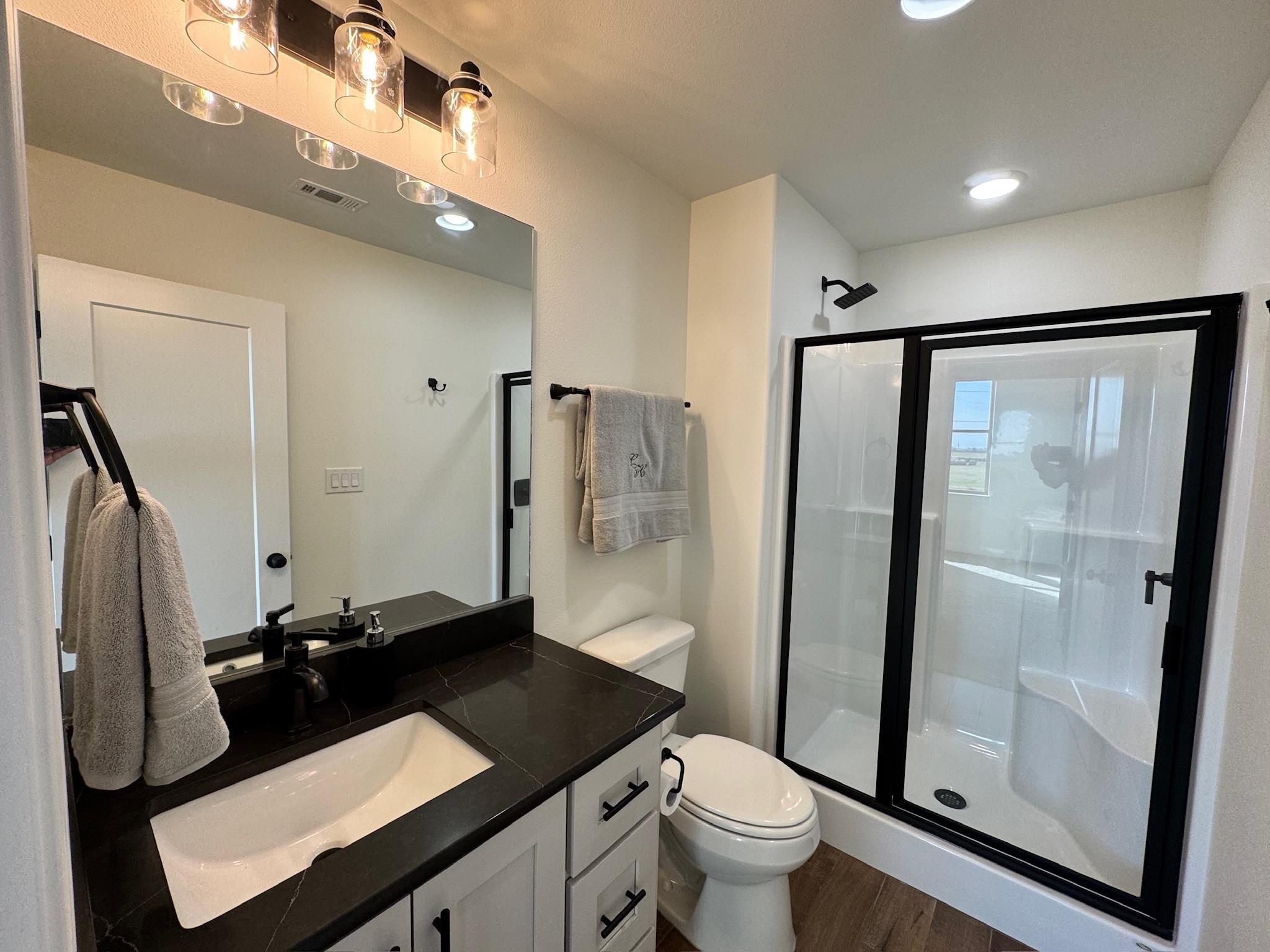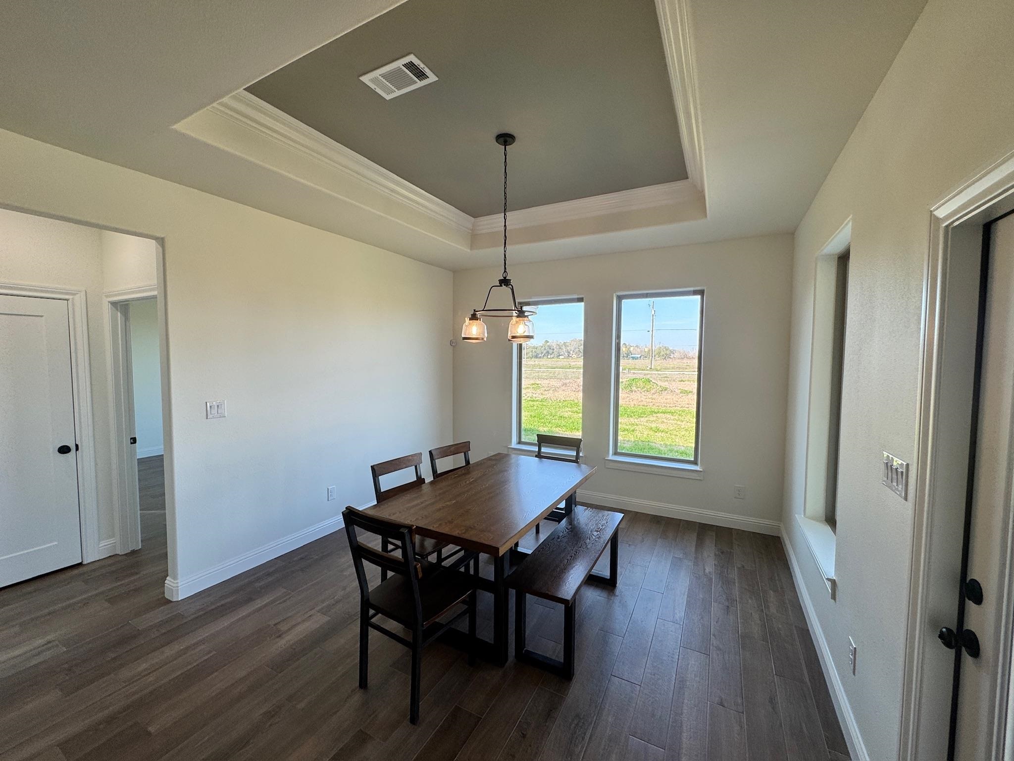 Located on a corner lot in Highland Village in Nome, the Weller floor plan has tons to offer. This new construction has 4 bedrooms, 3 full baths, a dining/study with built in book shelves and upstairs with the 4th bedroom is a bonus area. The family room has tons of windows and is open to the kitchen. The kitchen has a gas cooktop, seperate microwave and oven. Great counter space with Broadway Black Polished countertops. There are some spice racks, a stained island and cabinets to the ceiling. The primary bathroom has a tile shower with a rainhead shower, a handheld shower and the standard shower head as well. Upgraded tile floor downstairs and tile wrap in tub areas in other bathrooms. Notice the stairs with wood treads and white risers. A nice covered entry with and the back patio is a nice size as well. The exterior has a stone entrance, upgraded garage door and windows have wood shutters. This one is move in ready!!!