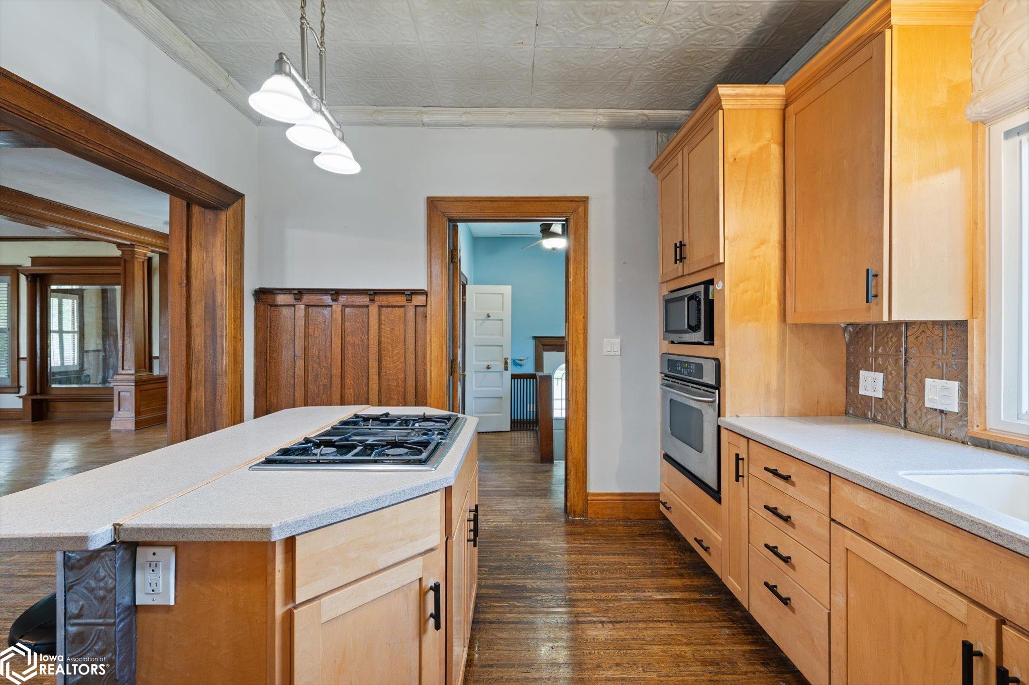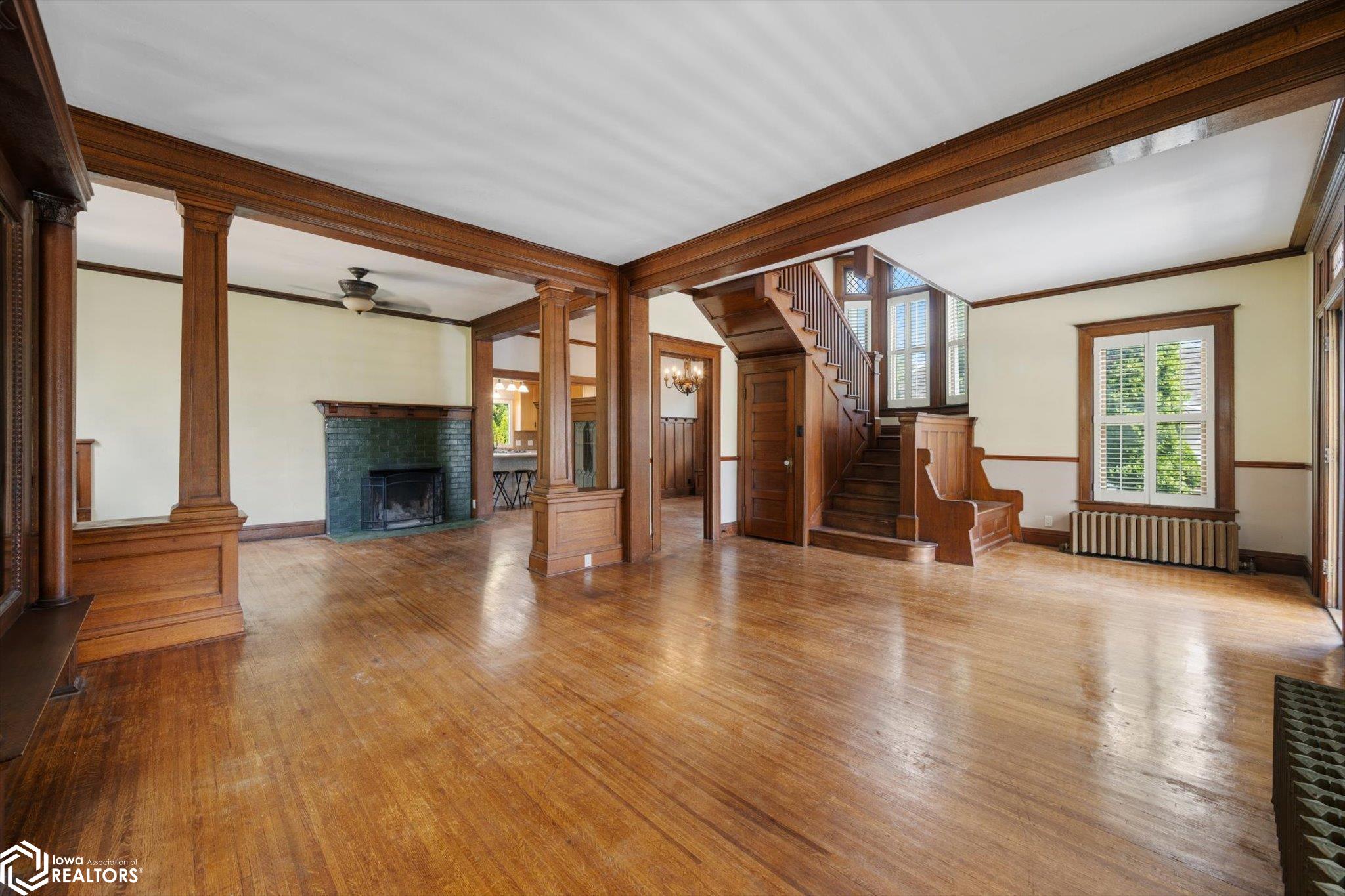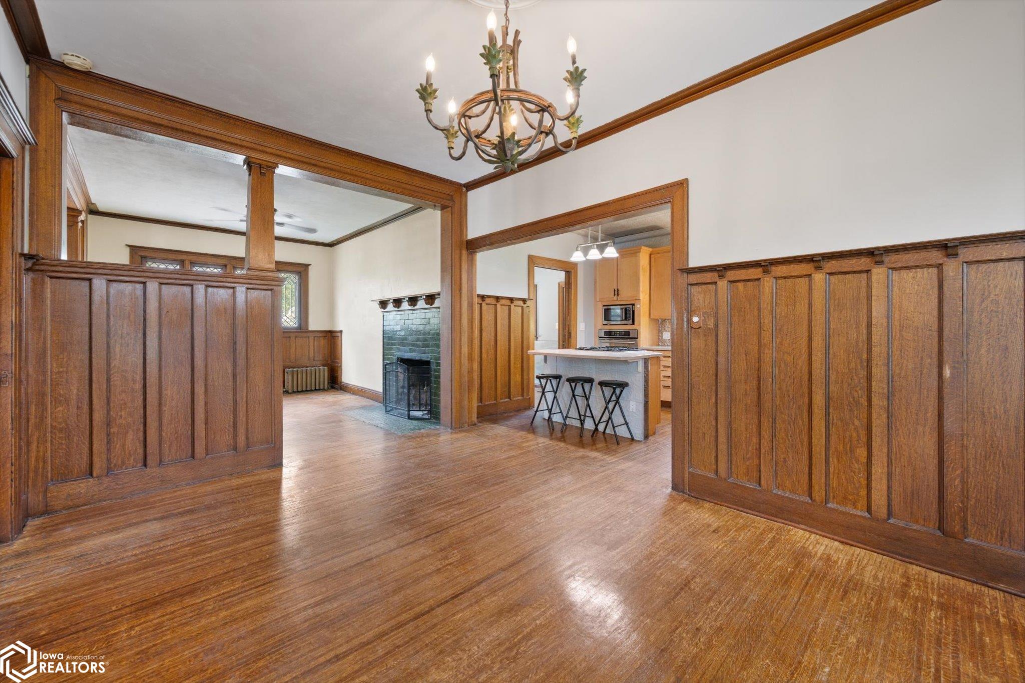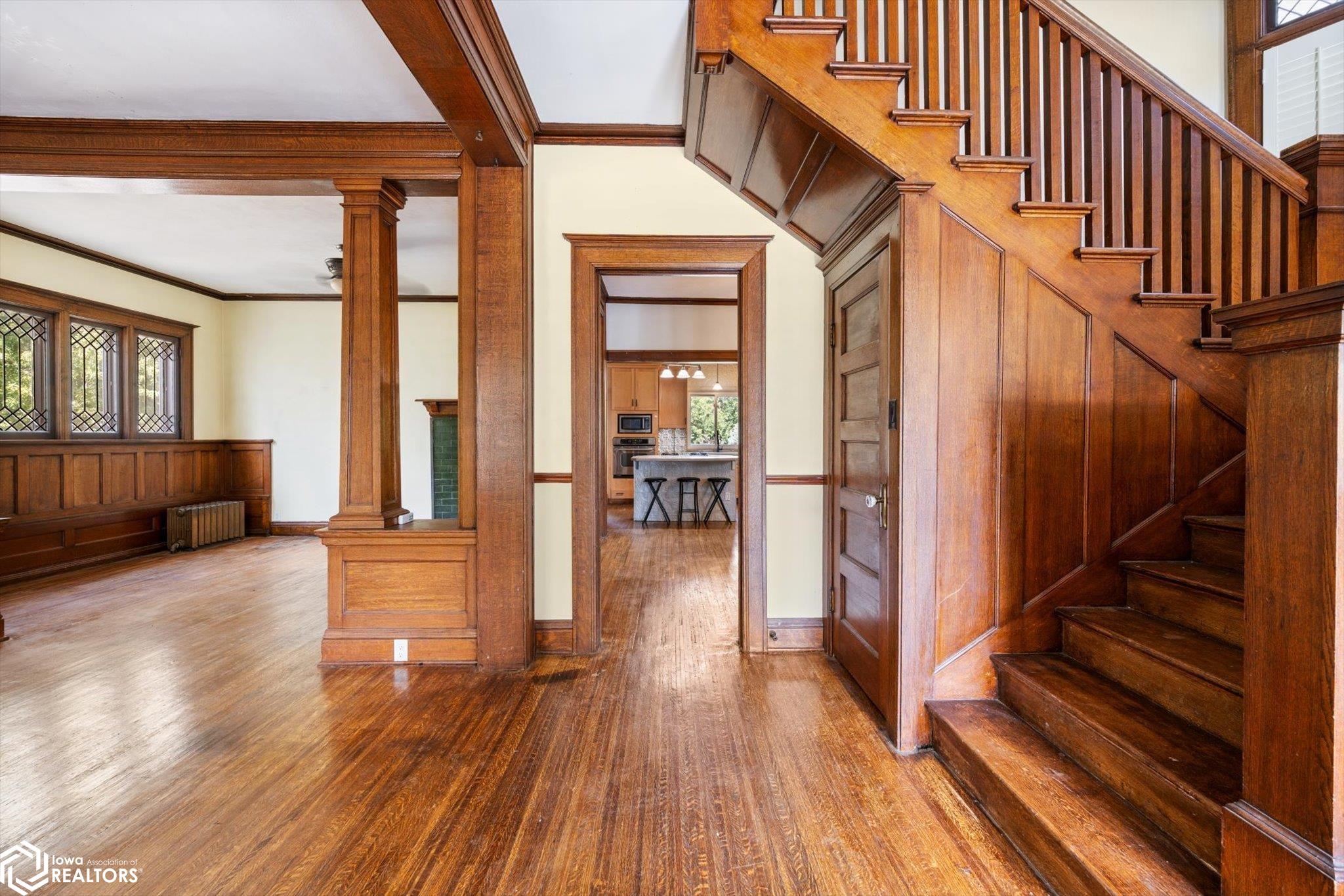 Rarely available, stately 4-bedroom, 3-bath Victorian home on historic Silk Stocking Row, thoughtfully restored to its former grace while blending modern convenience. Two fireplaces add warmth and character, while tall wooden columns with intricate terra cotta capitals define the carport and welcoming front porch, perfect for relaxing. One-inch tiger oak flooring flows throughout both levels. The kitchen offers an island with Jenn-Aire cooktop, maple cabinets, and pantry drawers designed for easy access. Comfort upgrades include heated floors in the main baths and kitchen, plus a jet-air tub in the lower bath. The finished basement features flexible living space. Outdoors, enjoy mature fruit trees, grapevines, and the privacy of hedges along with a 6-foot vinyl fence. It is a rare opportunity to own a classic home that honors tradition yet embraces todays lifestyle.