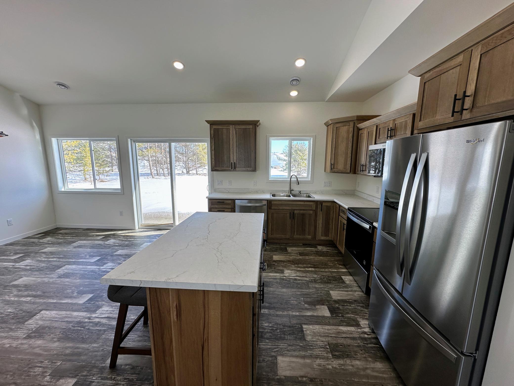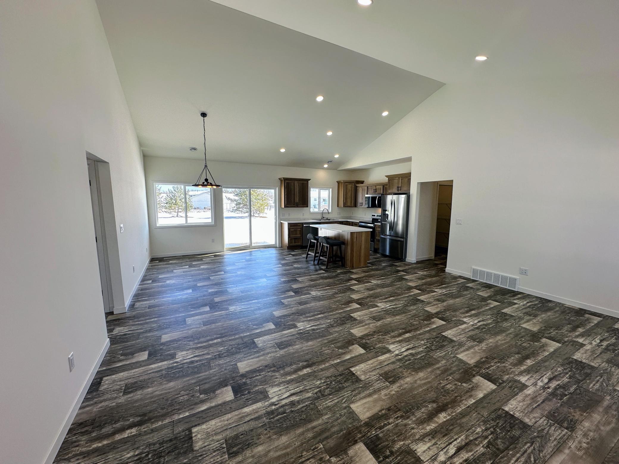 Effortless One-Level Living in Westwind 4th Addition! Experience the perfect blend of style and accessibility in this brand-new, one-level masterpiece. The open-concept design is defined by vaulted ceilings that flood the home with natural light. At it's heart, the kitchen features sleek stainless steel appliances and a sit-up island-ideal for casual mornings or hosting friends. The primary suite serves as a true retreat, complete with a beautifully tiled walk-in shower and a generous walk-in closet. Two additional bedrooms provide the perfect space for guests or a home office. Step through the sliding glass door to your private patio or take a short stroll to nearby walking paths, ball fields and the local golf course. With an insulated garage, high efficiency natural gas furnace and central air, this home is built for year-round comfort and peace of mind. Financial Perk: Special assessments may be waived if the Buyer's income qualifies!
