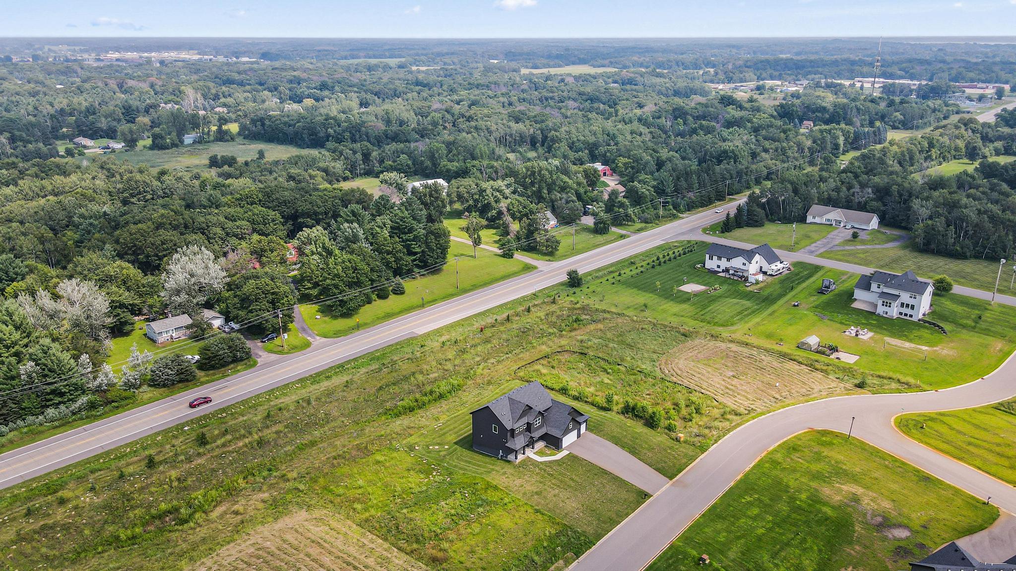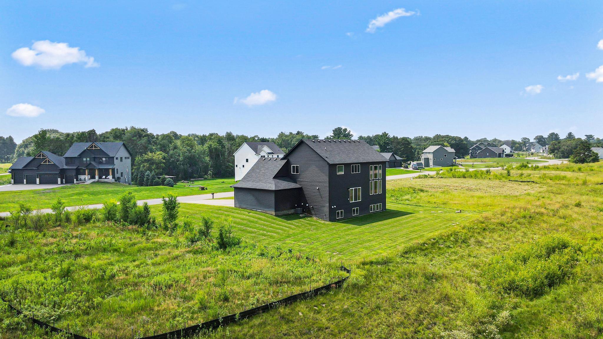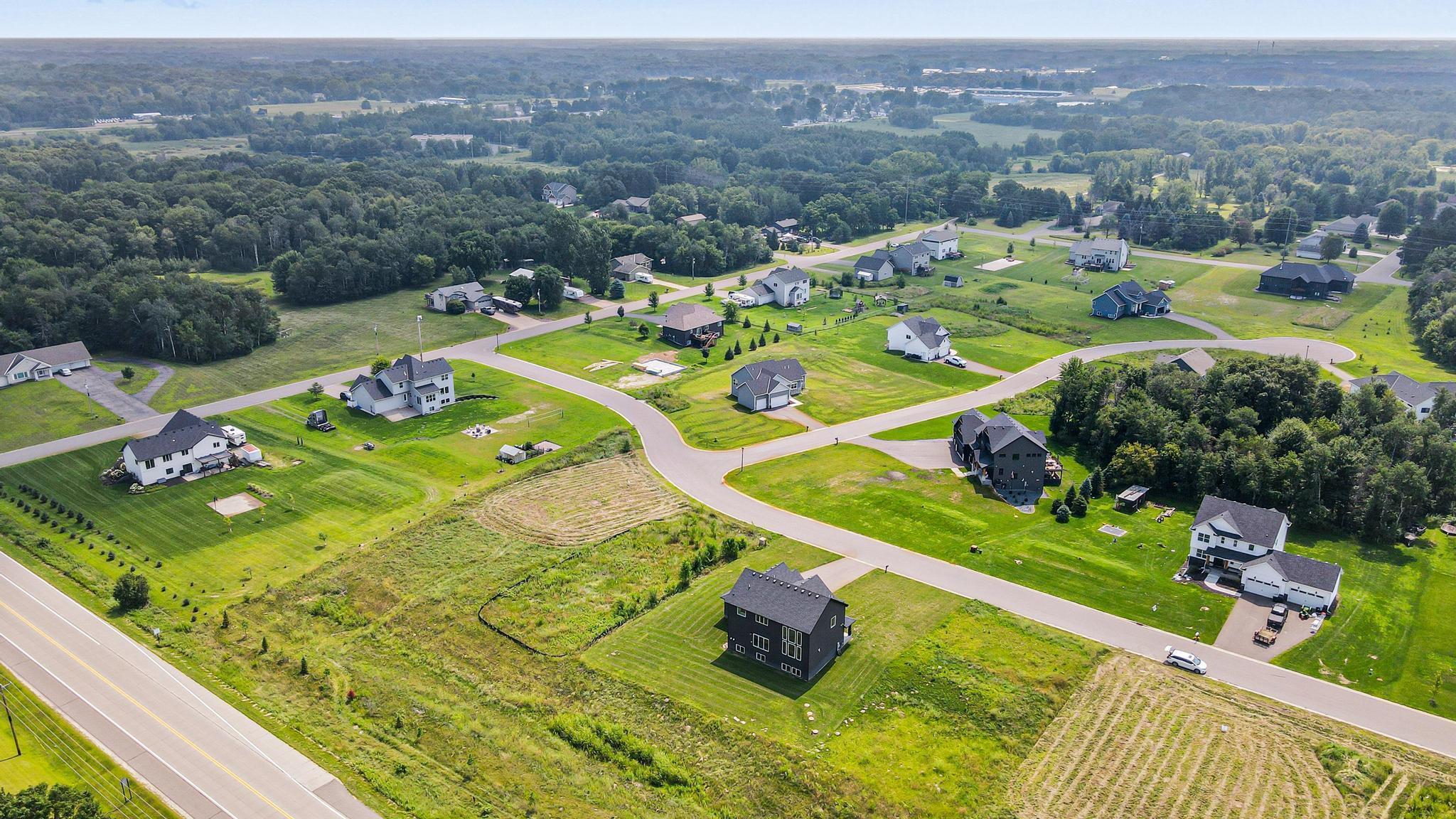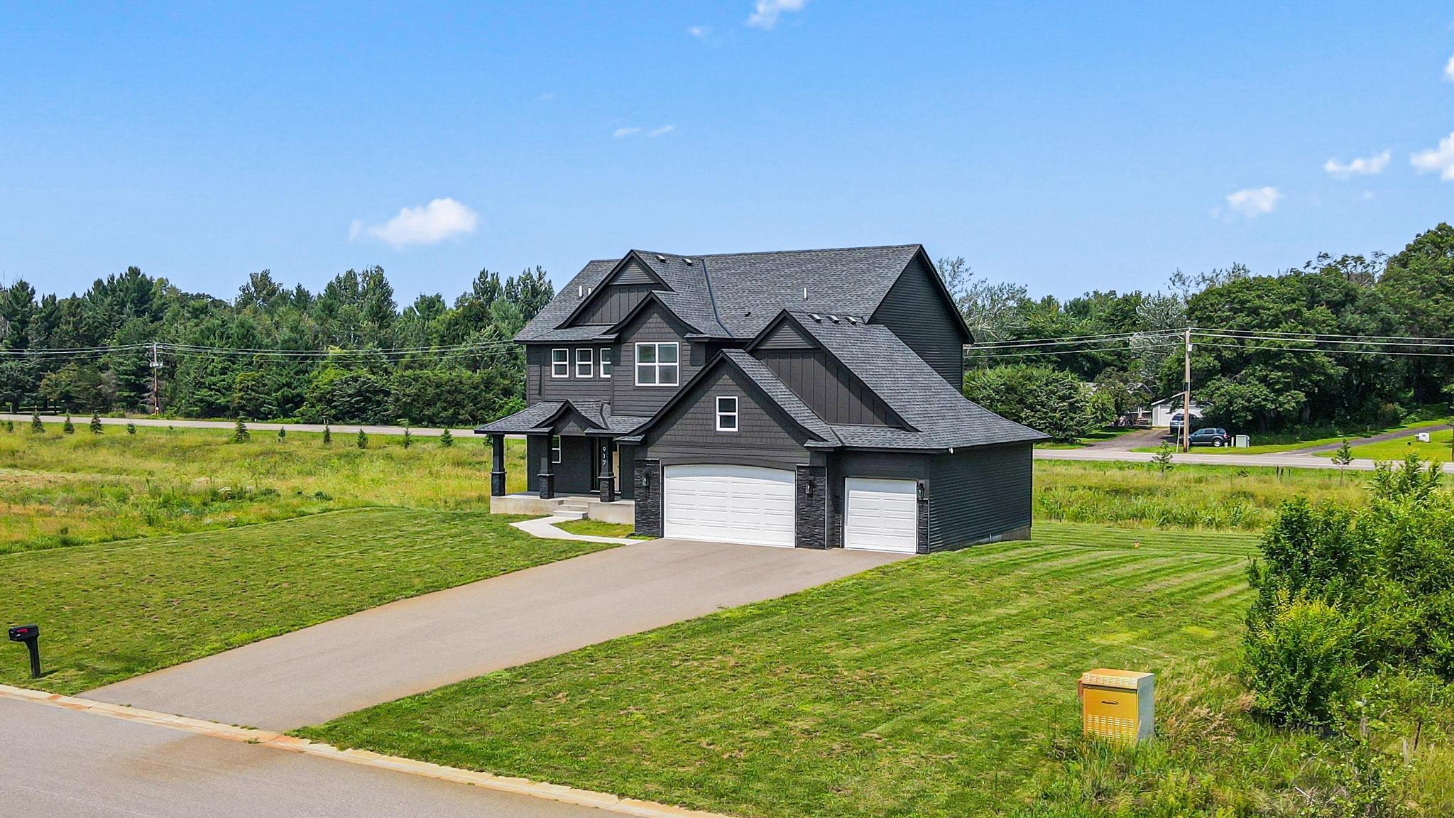 Skip the build and move right in! This barely lived-in Ham Lake two-story offers modern finishes, space, and immediate availability - set on a full acre. The main level features a dramatic vaulted great room filled with natural light and an open-concept layout. The kitchen includes hardwood floors, stainless steel appliances, a walk-in pantry, and oversized island. Attached 3-car, EV-ready garage connects to a spacious mudroom.Upstairs offers three bedrooms on one level, including a private primary suite with walk-in closet and full bath, plus convenient upper-level laundry. Unfinished lower level is ready for your vision. Additional features include in-ground sprinklers, all appliances included, and a yard extending approx. 103 feet west beyond the mowed area. Fast closing available.