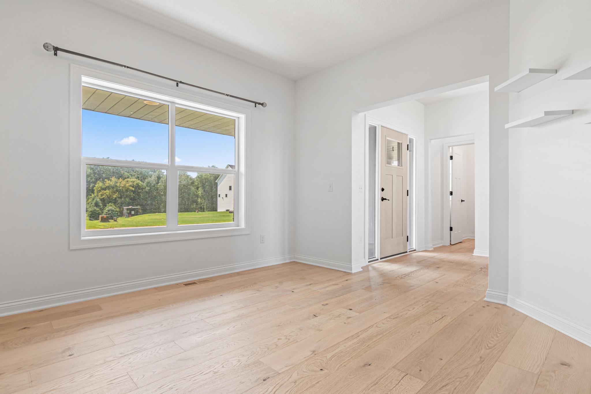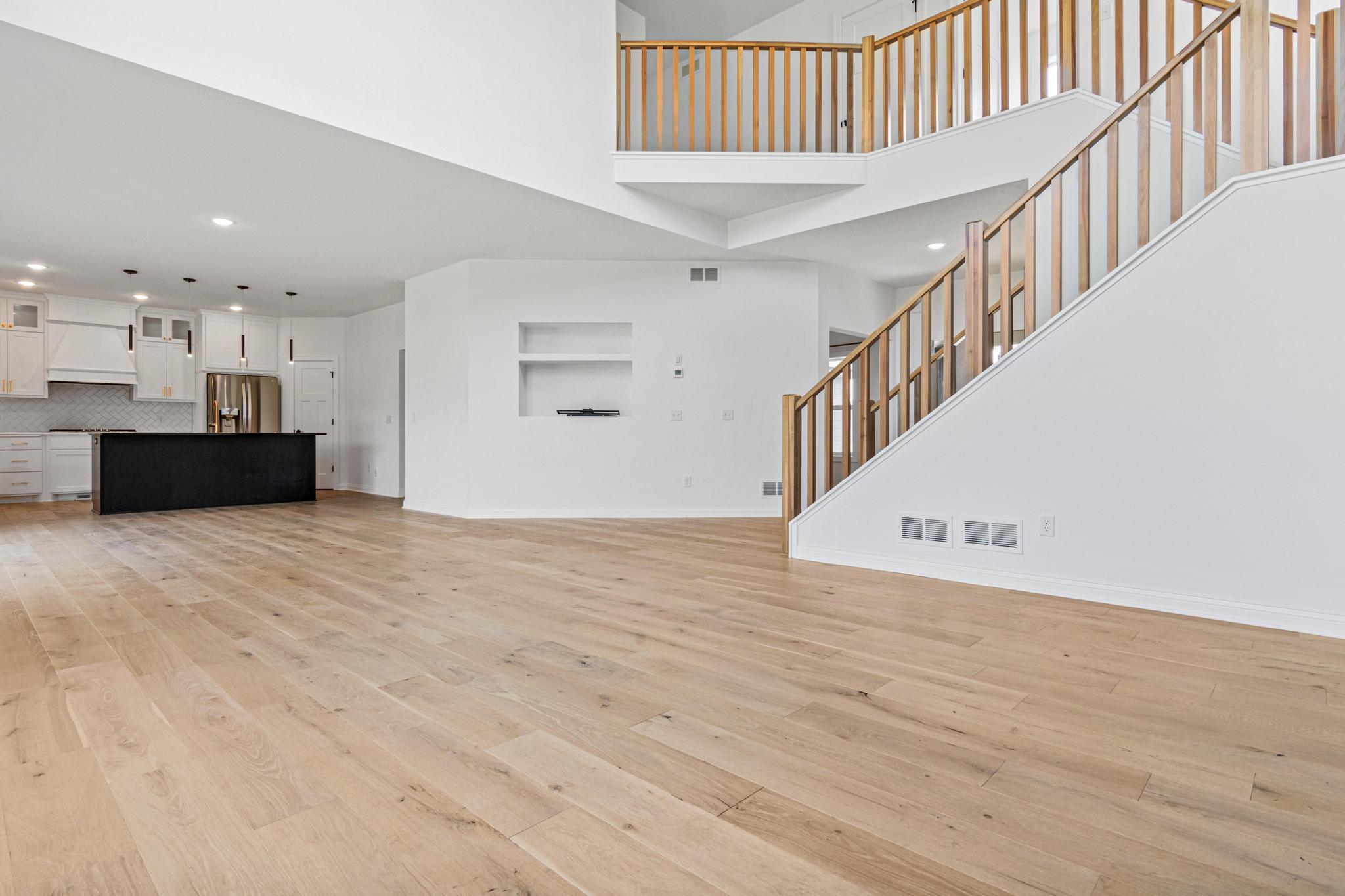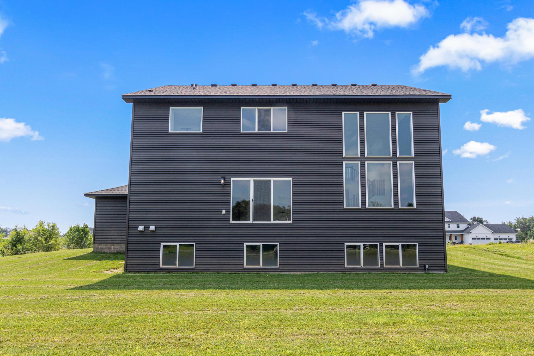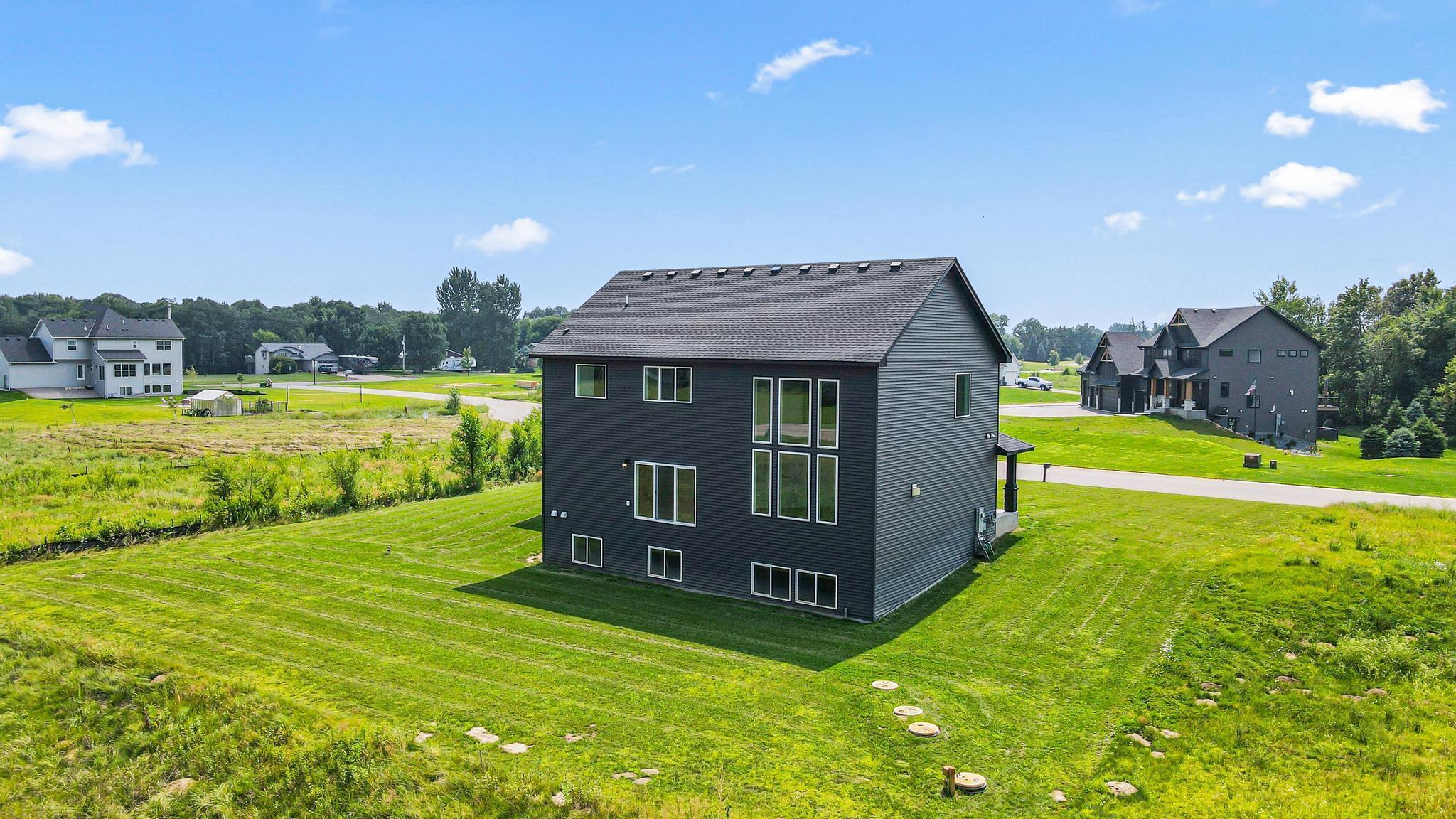 Skip the build and move right in! This barely lived-in Ham Lake two-story offers modern finishes, space, and immediate availability - set on a full acre. The main level features a dramatic vaulted great room filled with natural light and an open-concept layout. The kitchen includes hardwood floors, stainless steel appliances, a walk-in pantry, and oversized island. Attached 3-car, EV-ready garage connects to a spacious mudroom.Upstairs offers three bedrooms on one level, including a private primary suite with walk-in closet and full bath, plus convenient upper-level laundry. Unfinished lower level is ready for your vision. Additional features include in-ground sprinklers, all appliances included, and a yard extending approx. 103 feet west beyond the mowed area. Fast closing available.