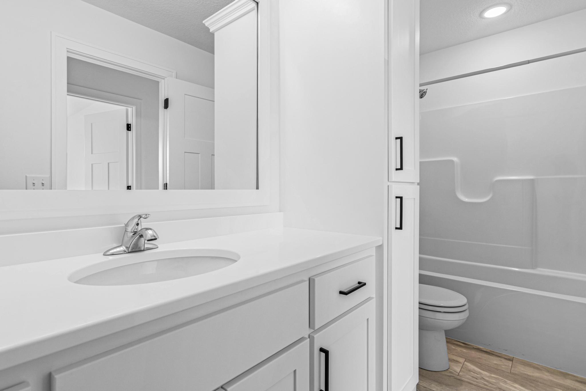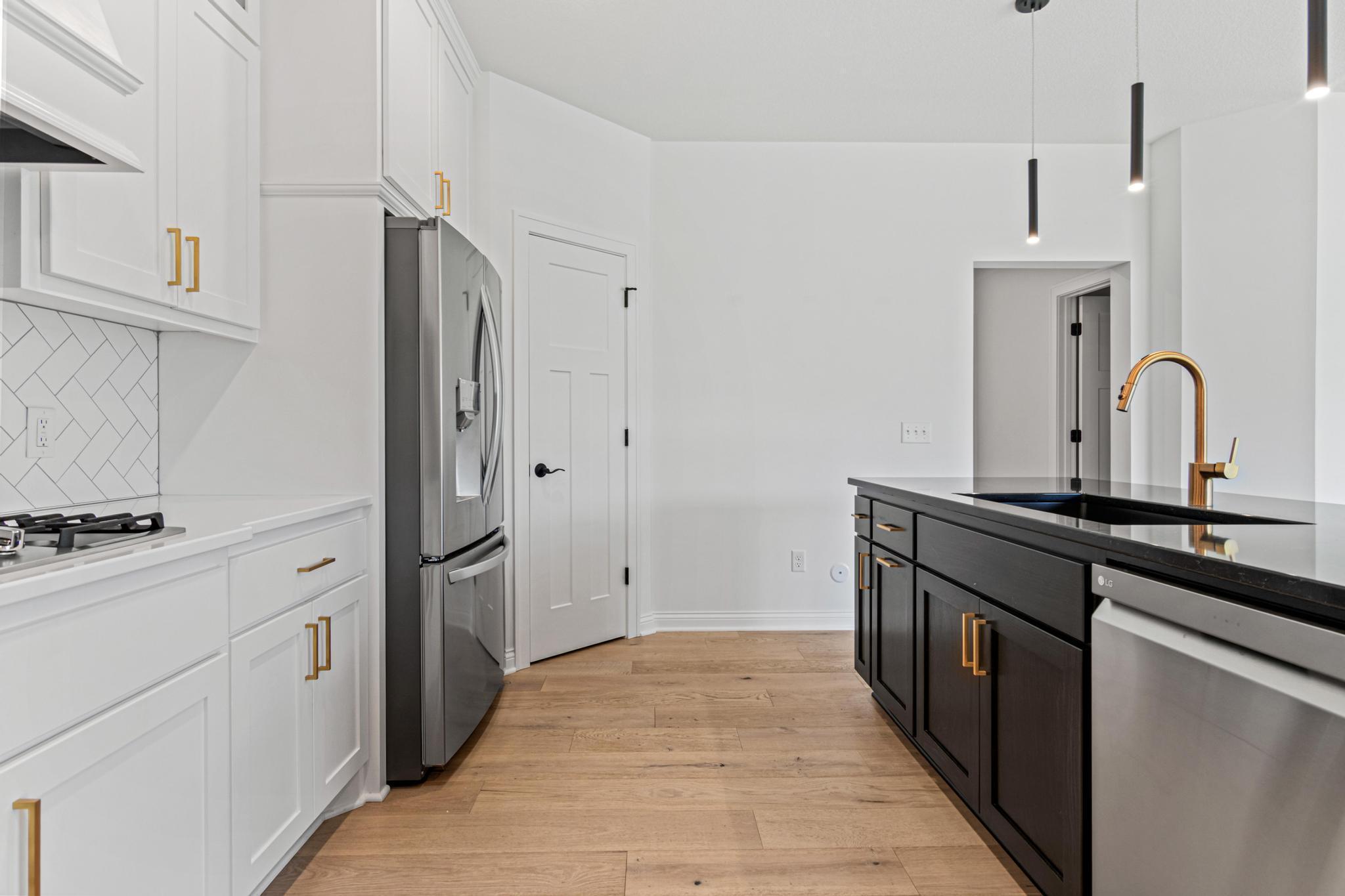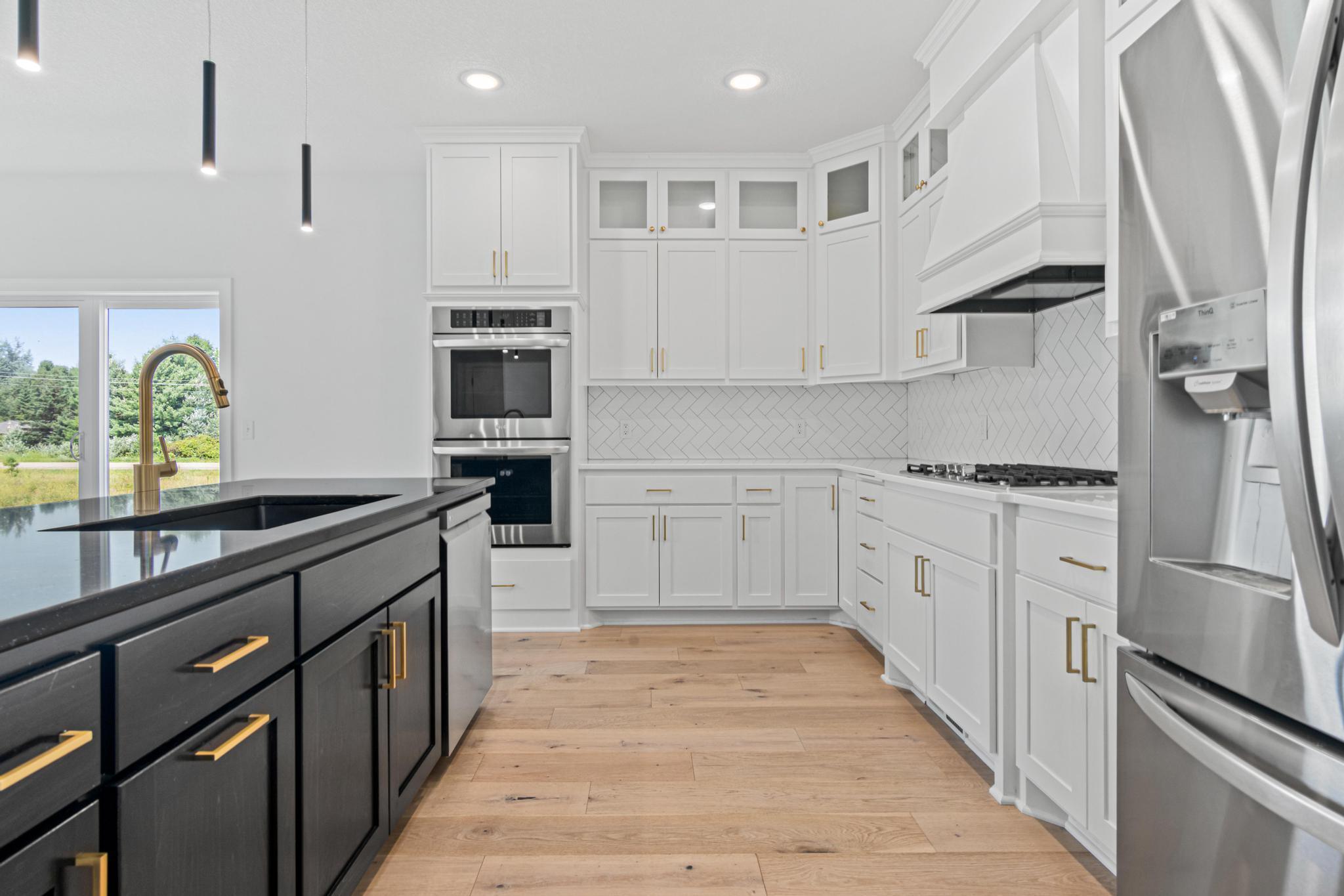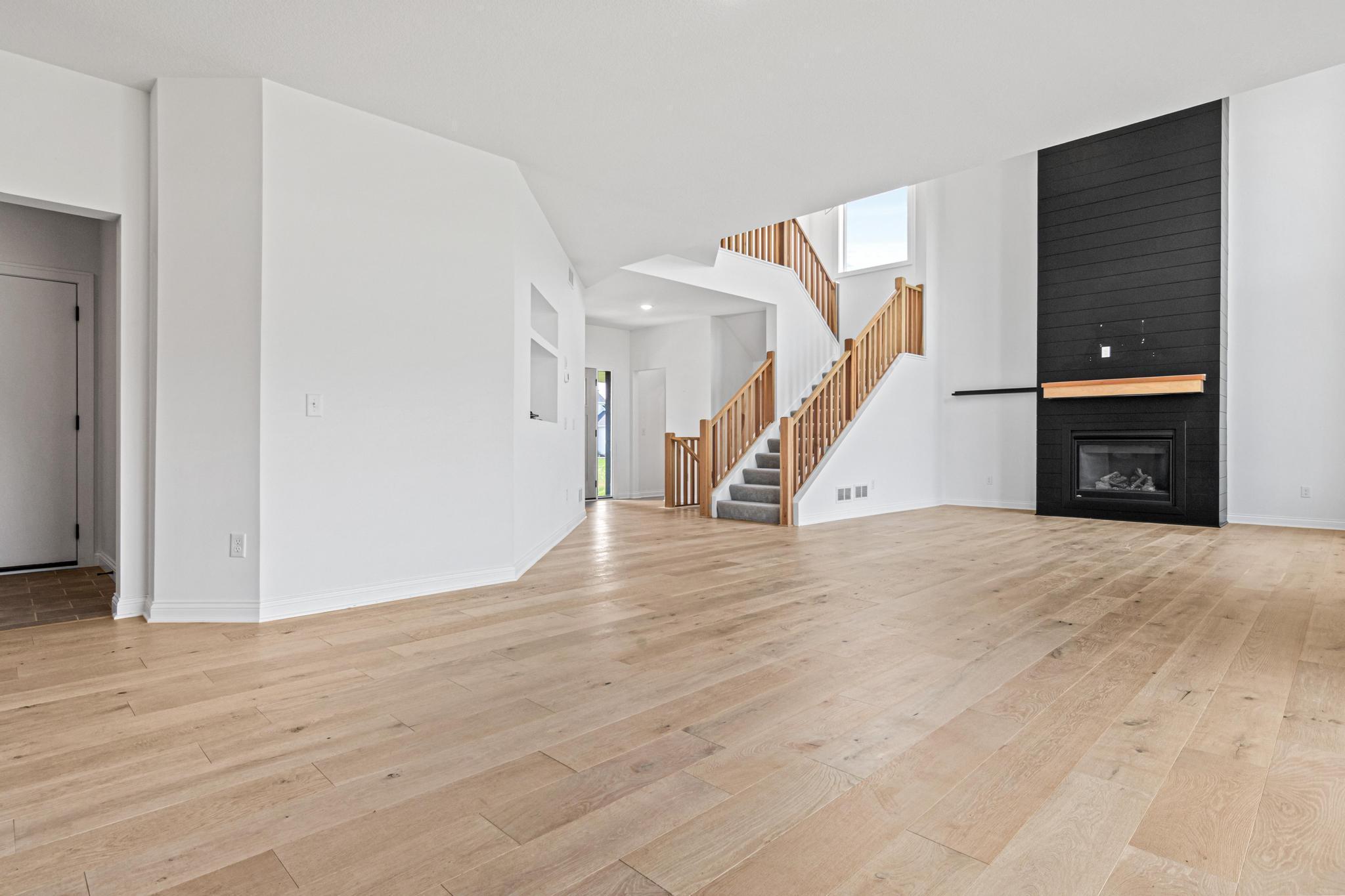Skip the build and move right in! This barely lived-in Ham Lake two-story offers modern finishes, space, and immediate availability - set on a full acre. The main level features a dramatic vaulted great room filled with natural light and an open-concept layout. The kitchen includes hardwood floors, stainless steel appliances, a walk-in pantry, and oversized island. Attached 3-car, EV-ready garage connects to a spacious mudroom.Upstairs offers three bedrooms on one level, including a private primary suite with walk-in closet and full bath, plus convenient upper-level laundry. Unfinished lower level is ready for your vision. Additional features include in-ground sprinklers, all appliances included, and a yard extending approx. 103 feet west beyond the mowed area. Fast closing available.