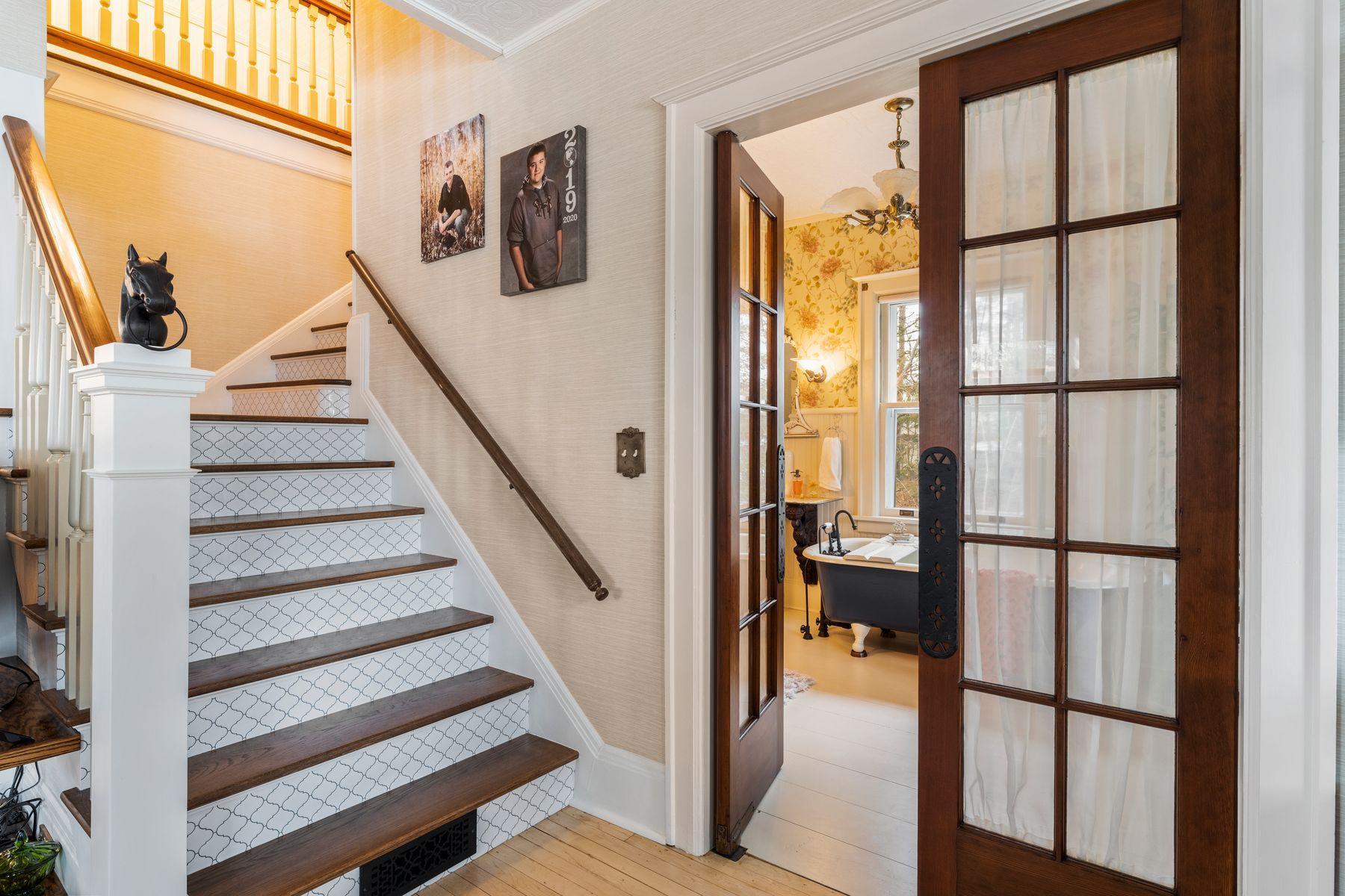 A rare in-town estate offering unparalleled privacy, scale, and versatility, this extraordinary property spans nearly two blocks long and one block deepcompletely tucked away behind a mature, tree-lined perimeter with an automated gate. The elegant main residence features 5 bedrooms and three bathrooms, plus a beautifully finished third-floor bonus room (non-conforming). Two attached studio suites with private patios, currently operated as Airbnb rentals, provide exceptional guest accommodation or effortless income potential. A newly reimagined apartment within the detached garage offers a full kitchen, bedroom, and bathingeniously designed so the space can seamlessly convert back to a functioning garage. The charming carriage house, thoughtfully updated, offers yet another private apartment complete with its own kitchen, full bath, and laundry room. Beyond the residences, the property unfolds into a collection of luxury and lifestyle amenities: a sauna, chicken coop, an enclosed and lighted covered garden with Wi-Fienabled hydroponics, bee hives, raspberry and rhubarb patch, and a fully outfitted heated wood shop. With almost four acres, the estate offers unmatched acreage and flexibility for homesteading, hobby farming, or expansive outdoor entertaining. Perfect for multigenerational living, a high-income investment portfolio, or even an intimate event or retreat venue, this one-of-a-kind sanctuary, surrounded by trees, brings exceptional privacy, breadth, and possibilityright in the heart of town. This home was totally rebuilt and remodeled in 2022.
