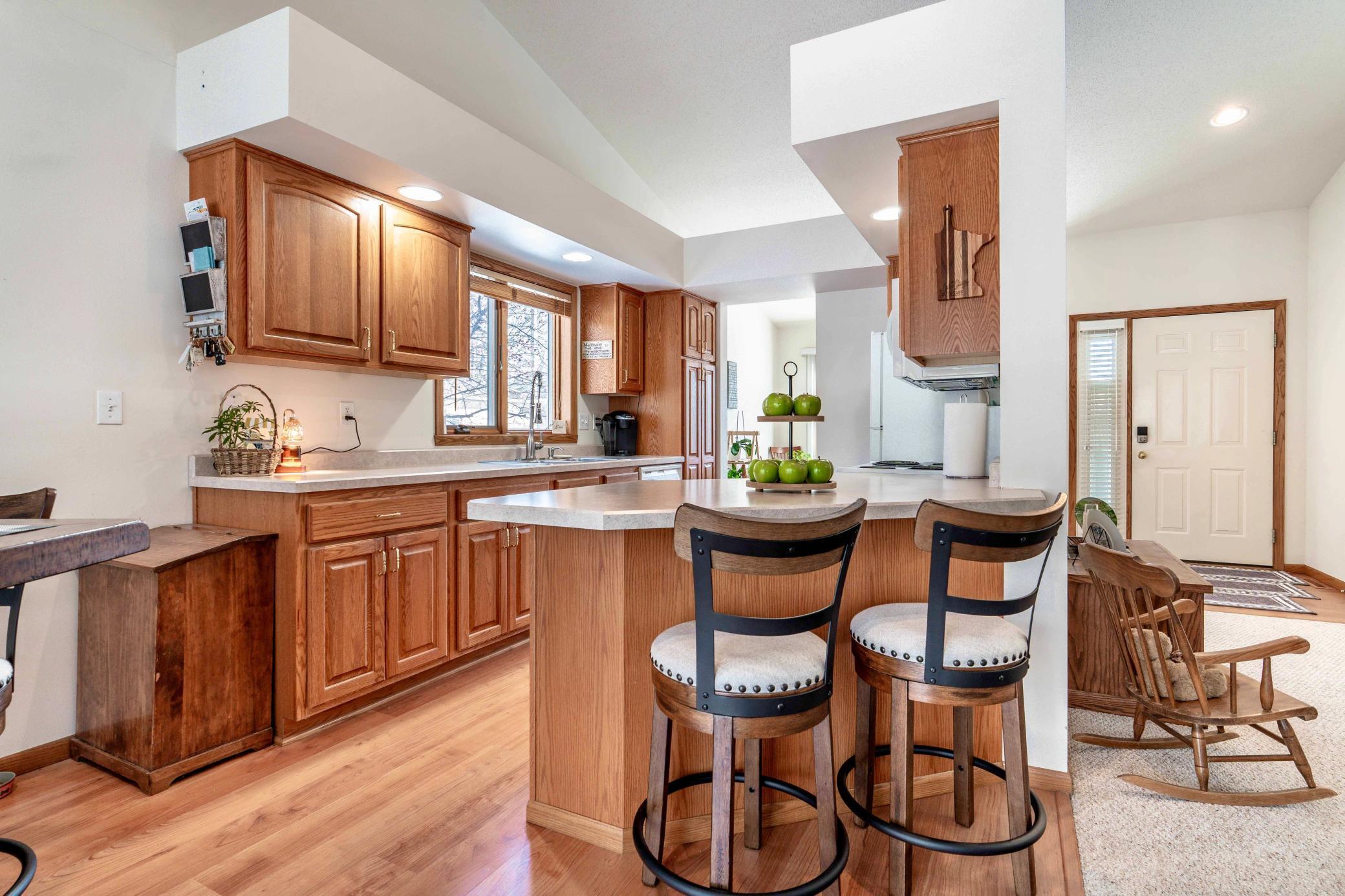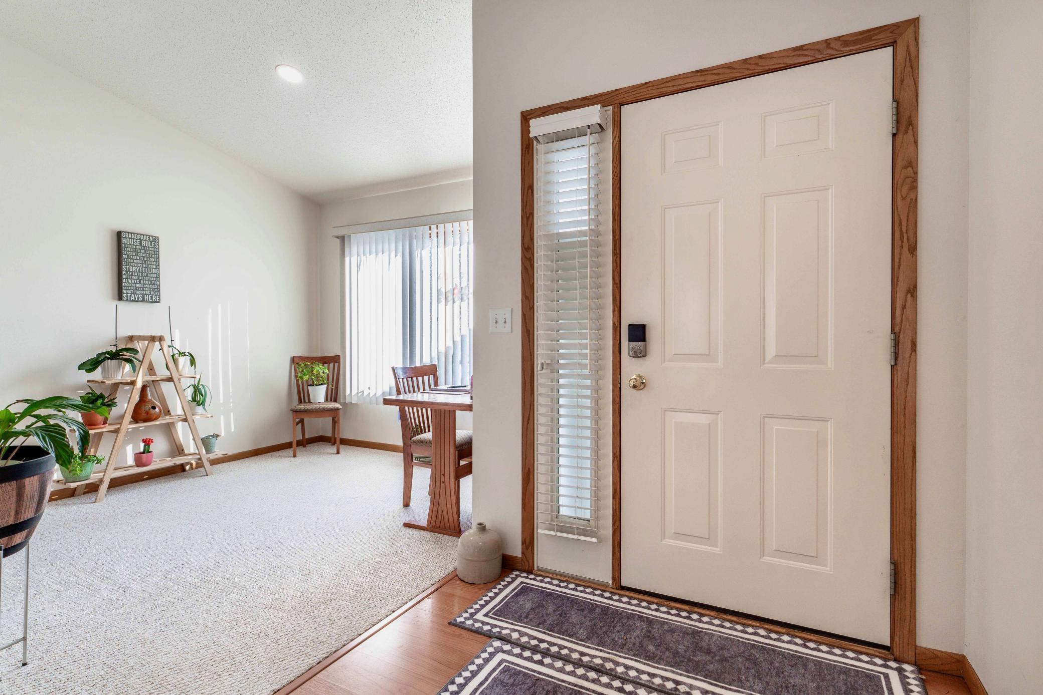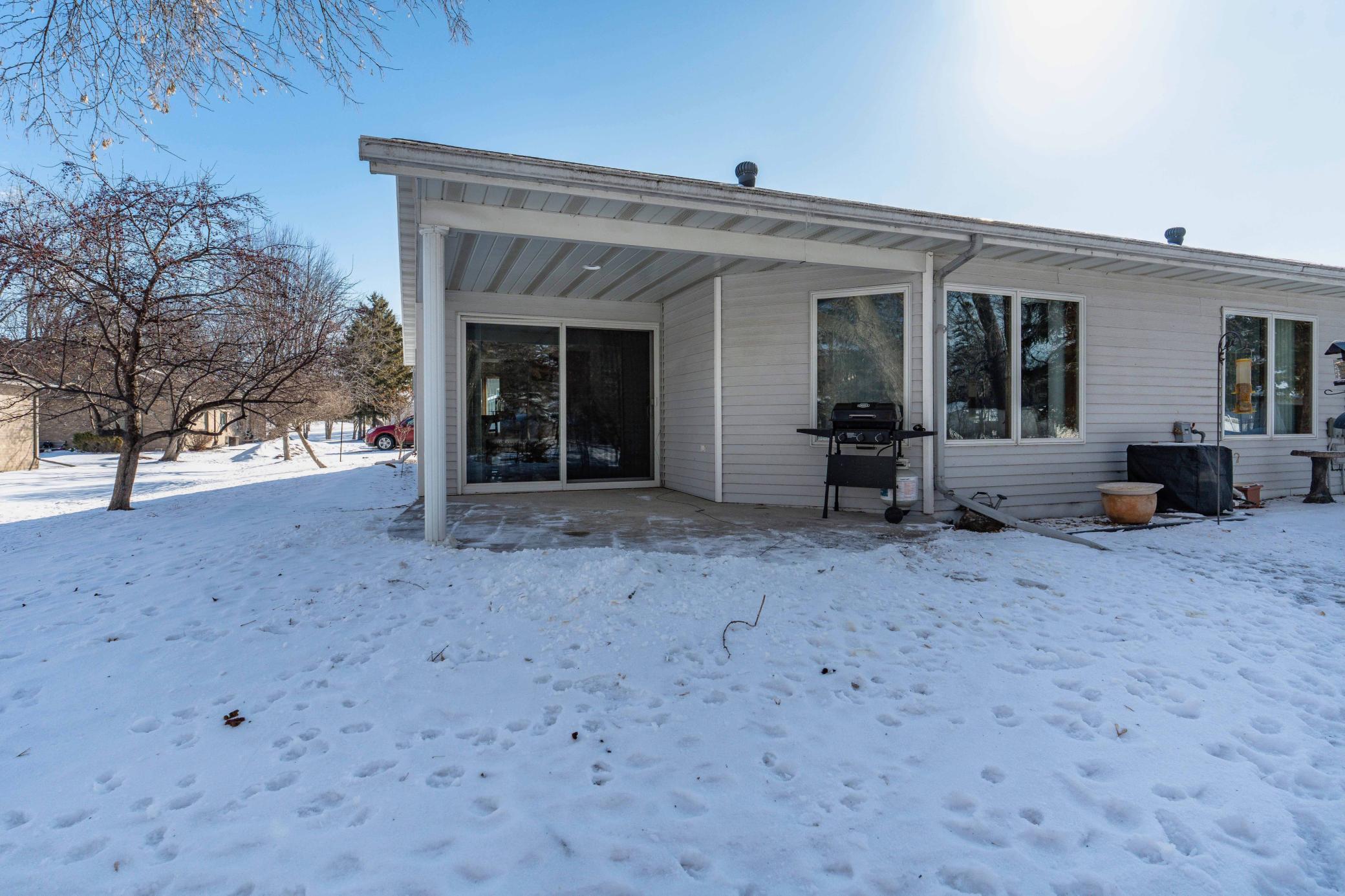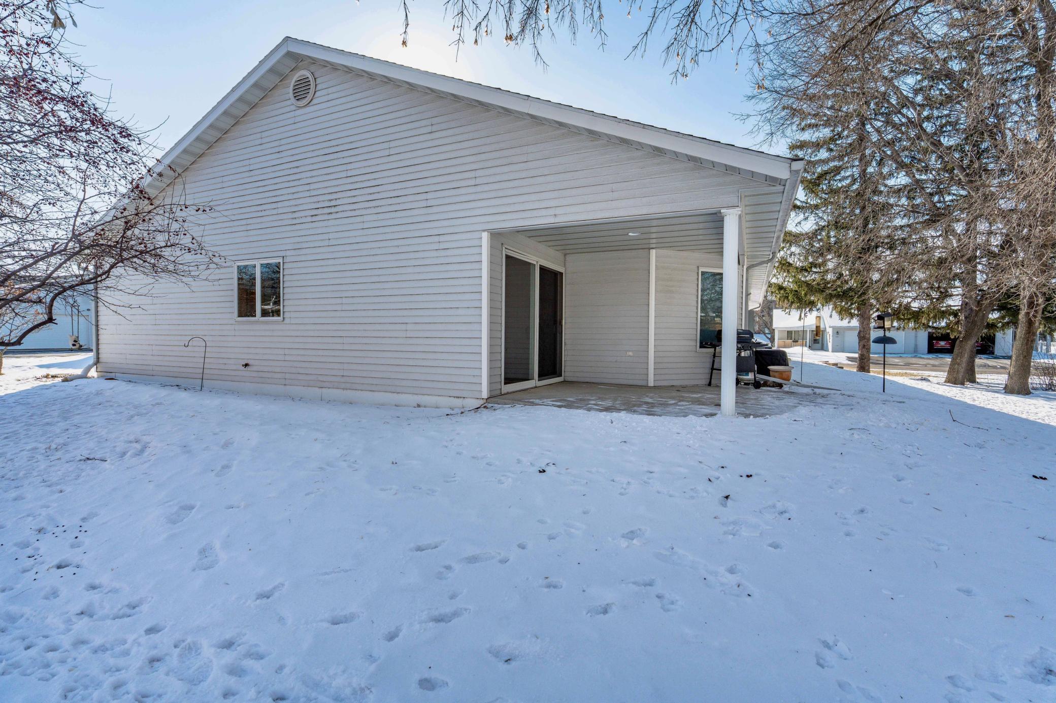 Beautifully maintained 2-bedroom, 2-bath twin home with no association fees! The spacious living room showcases a vaulted ceiling, creating an open and airy feel. Just off the dining area, the kitchen offers efficient workflow and convenient access for everyday meals or entertaining. From the dining area, step out to a patio overlooking a semi-private, shaded backyardan ideal setting to relax and enjoy frequent visits from local deer. Tiled flooring adds durability and style to the main floor full bath, laundry room, and private primary bath. Offering true one-level living with no steps and located at the end of the street, this home combines comfort, privacy, and ease of living.