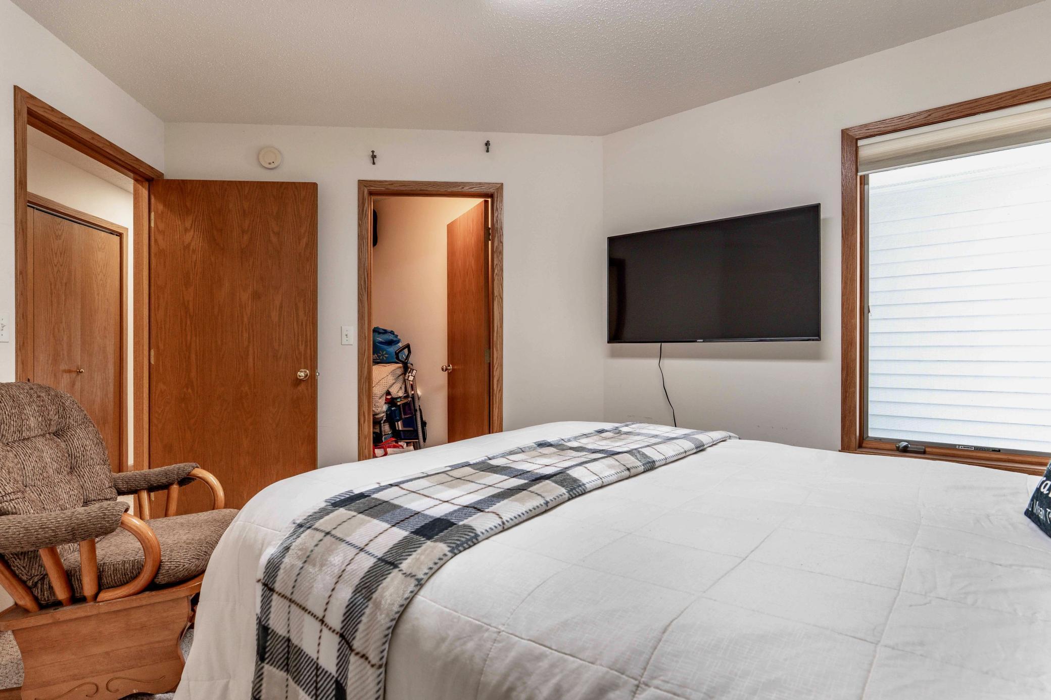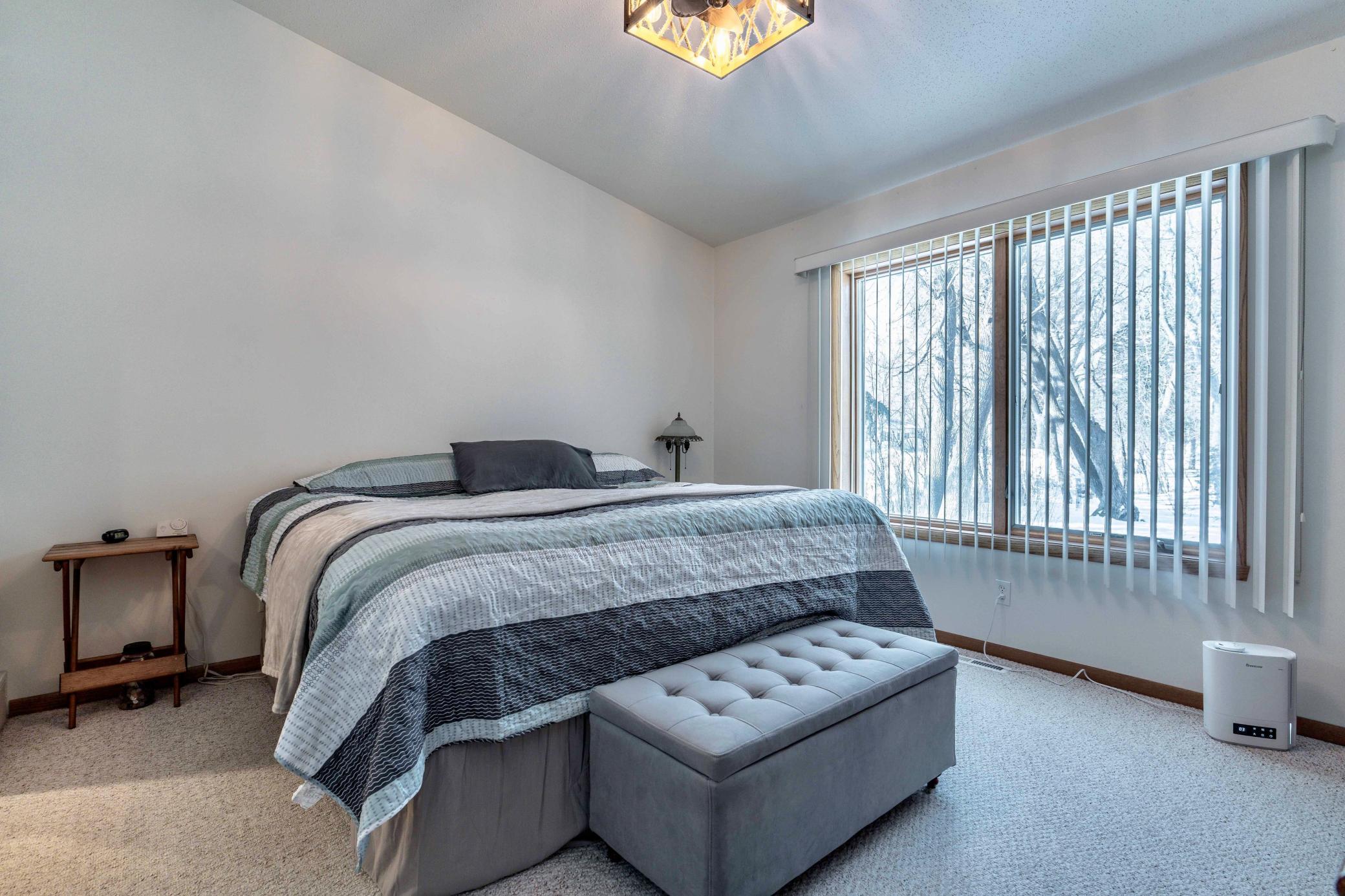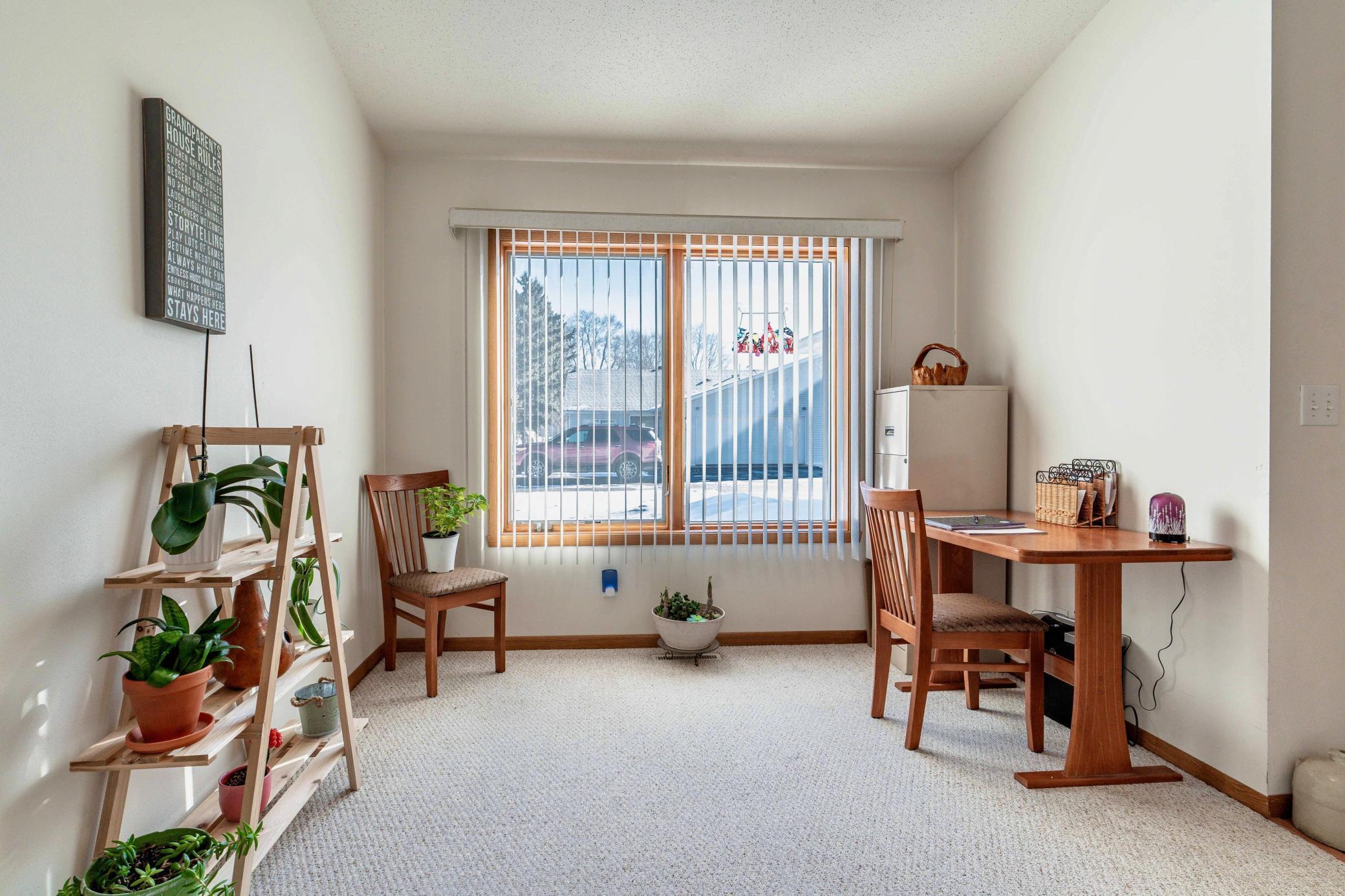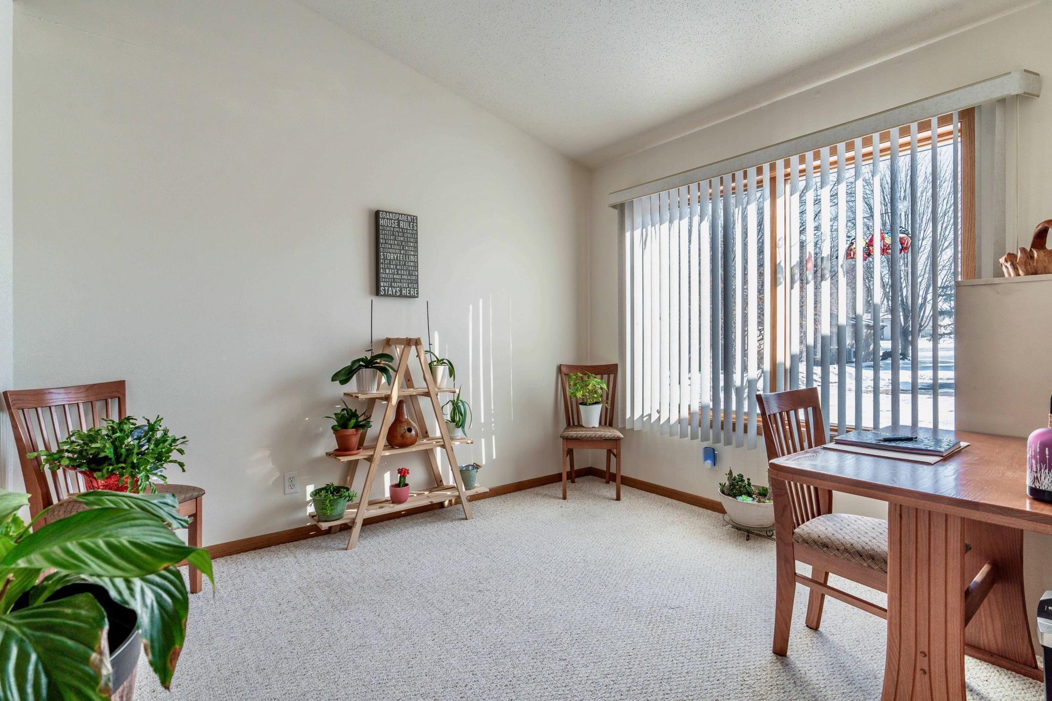 Beautifully maintained 2-bedroom, 2-bath twin home with no association fees! The spacious living room showcases a vaulted ceiling, creating an open and airy feel. Just off the dining area, the kitchen offers efficient workflow and convenient access for everyday meals or entertaining. From the dining area, step out to a patio overlooking a semi-private, shaded backyardan ideal setting to relax and enjoy frequent visits from local deer. Tiled flooring adds durability and style to the main floor full bath, laundry room, and private primary bath. Offering true one-level living with no steps and located at the end of the street, this home combines comfort, privacy, and ease of living.