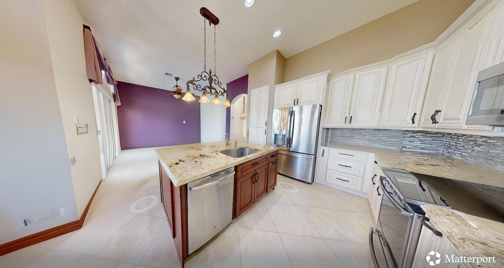Resort at Home 3-bed, 2.5-bath home built in 2004, featuring soaring ceilings w/serene lake views from the spacious & extended screened-in patio. Remodeled kitchen (2017) w/modern cabinetry, upgraded appliances, & elegant finishes. Both baths feature original builder upgrades. Upgraded tile flooring in most living areas. Enjoy an outdoor kitchenperfect for entertaining. Accordion hurricane shutters throughout, AC (2015), and water heater (2018) provide peace of mind. Experience resort-style living in Bellaggio, a premier 55+ gated community with a grand clubhouse, indoor pool, caf, fitness center, resort pool, tennis, pickleball, & a vibrant social calendar. 3rd Bed used as Den. All measurements are approx. & should be verified by buyer. Info deemed reliable but not guaranteed.