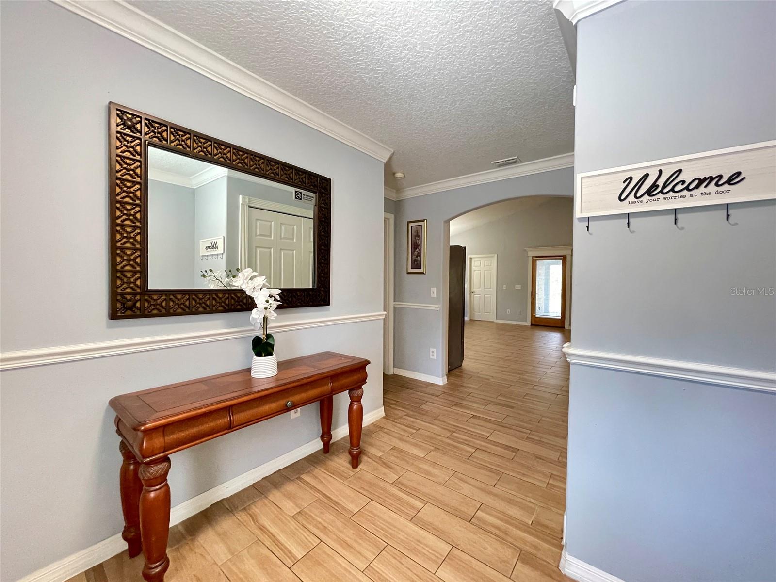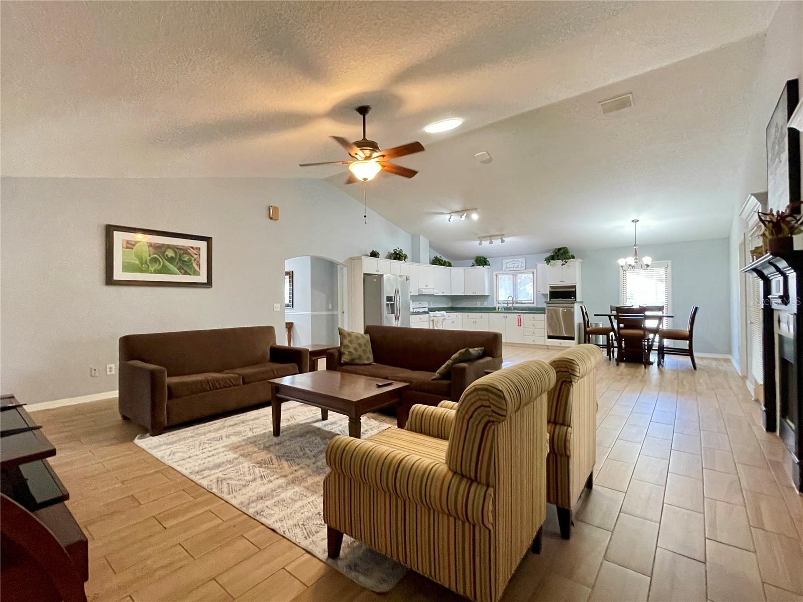 This spacious 4-bedroom, 2-bathroom home with attached 2-car garage available for lease in Port Orange offers 2,489 square feet of comfortable living space. Inside, a bright foyer with crown molding and tile flooring opens to a wide, open-concept layout designed for both relaxing and entertaining. The living room features a cozy fireplace with decorative surround, creating a warm focal point for gatherings. The kitchen offers abundant white cabinetry, stainless steel appliances, generous counter space and clear sightlines across the main gathering areas. The primary suite provides a relaxing retreat with luxury vinyl flooring, natural light, a large walk-in closet, and direct access to the en-suite bath. The private bath showcases a modern vanity and a tiled walk-in shower. Three additional bedrooms also feature luxury vinyl flooring, and neutral finishes, offering flexibility for guests, work-from-home needs, or additional living space. A dedicated laundry room with upper cabinetry, a utility sink, and space for full-size appliances adds everyday convenience. Sliding glass doors lead to an expansive covered patio, creating a shaded outdoor living area overlooking the wide backyard - ideal for relaxing or entertaining. The home is available fully furnished for an additional $500 per month, offering a convenient turnkey option. Fantastic location close to the intracoastal, beaches and an array of dining, shopping and entertainment options. First and last month's rent and security deposit required. Criminal background check and credit check required, $40 per adult. All information recorded in the MLS is intended to be accurate but cannot be guaranteed.