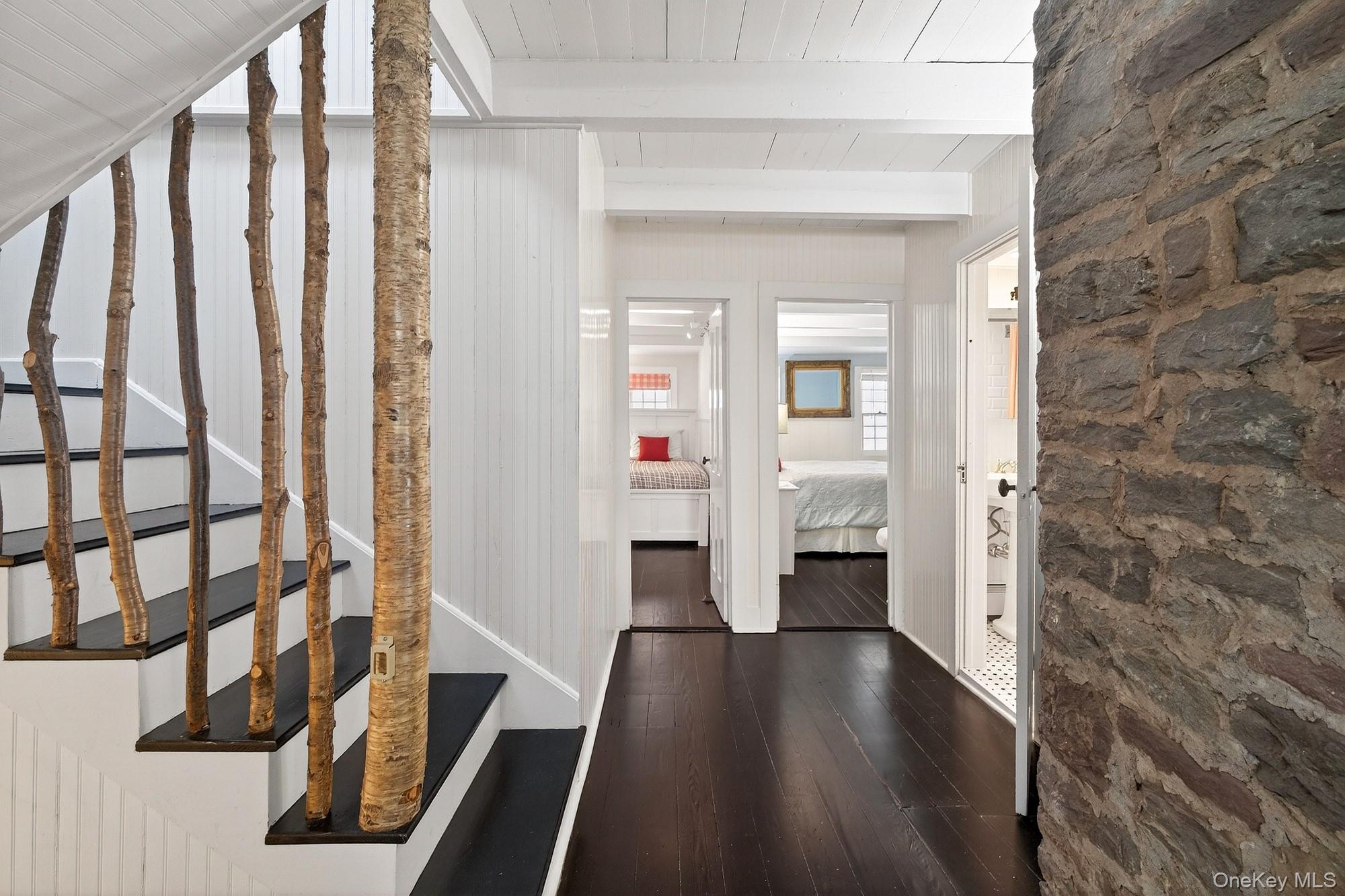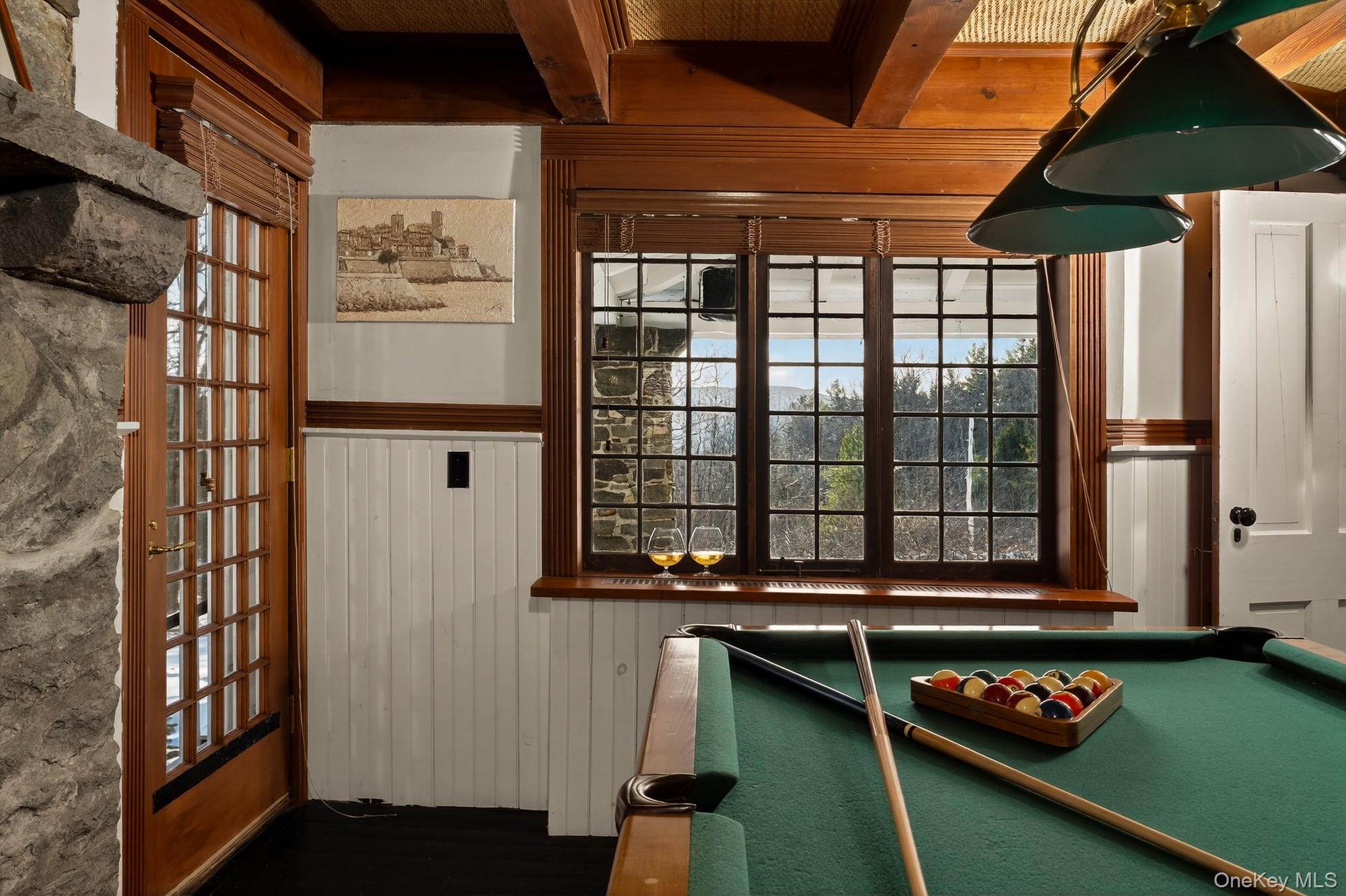 One of just twenty homes built by Onteora Club founding member George Agnew Reid, this 1904 Arts & Crafts cottage occupies a quietly extraordinary position between the Mountain Top Arboretum and thousands of acres of forever-wild land. Set on parklike grounds amid natural splendor, the sense of place feels enduring, with turn-of-the-century craftsmanship thoughtfully balanced by modern updates.A wraparound porch leads to the original Dutch door, opening into a double-height great room with soaring ceilings, a grand fieldstone fireplace, and a minstrel's gallery adorned with Hudson River School murals, a hallmark of Reid's cottages. Equally suited to large gatherings or quiet evenings by the fire, it is the architectural and social anchor of the cottage. From here, the formal dining room connects to an eat-in kitchen with ample cabinetry and a central island, opening directly to the stone patio for effortless al fresco dining.The floor plan is roomy yet intimate; a gentle, meandering configuration that creates warmth and privacy. Upstairs, two ensuite primary bedrooms sit at opposite ends of the great room. Two additional bedrooms and a shared full bath occupy the western wing. A finished attic level adds a bedroom, den, and ¾ bath.Original millwork, exposed timbers, divided-light windows, birch banisters, and characteristic Onteora masonry express the home's distinct lineage. These details, in concert with four stately fireplaces and south-facing views of the Catskill Mountains, evoke an elemental harmony in dialogue with the surrounding landscape. That harmony is affirmed and carried outward in the subtly staggered, trapezoidal roofline, seemingly an echo of the mountains beyond.Amenities include a naturally cooled wine cellar, a first-floor gym with steam shower adjoining the patio, a fire pit, and a wood-paneled billiards room. Recent improvements add a new eight-zone propane heating system, a new septic system, refinished hardwood floors, and extensive masonry repointing throughout. The property benefits from a Kohler standby generator and buried electric service from the road. The cottage's two exquisite acres are dotted with mature hardwoods and fronted by a circular drive, sixteen apple trees, and a dry-laid stone wall. Connecting the meticulous hardscaping, a stone walkway runs from the porch to a front patio graced by mountain views, and onward to the secluded rear patio with a bespoke stone table.Across the road, land owned by the Mountain Top Arboretum preserves open views. To the rear, the property abuts thousands of acres of forever-wild land extending north toward Colgate Lake and the Windham-Blackhead Range Wilderness. Deer Mountain Inn and the historic Onteora Club are just minutes away, offering golf, tennis, swimming, and dining within a storied mountain setting. The next steward of the property will have the opportunity to apply for Club membership.This is a rare offering for those seeking an upstate escape with architectural provenance, protected views, and proximity to the cultural and natural amenities of the Catskills5 minutes to bustling Tannersville, 10 minutes to Hunter, 15 minutes to Windham, and just over 2 hours from the GWB.