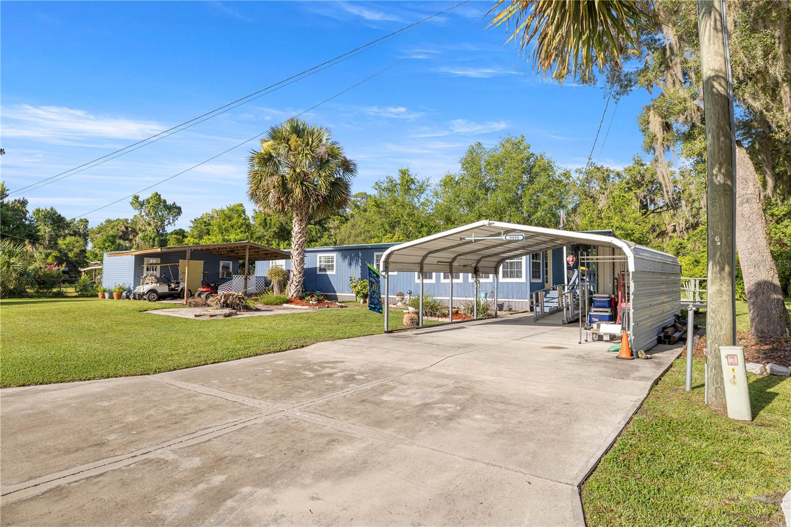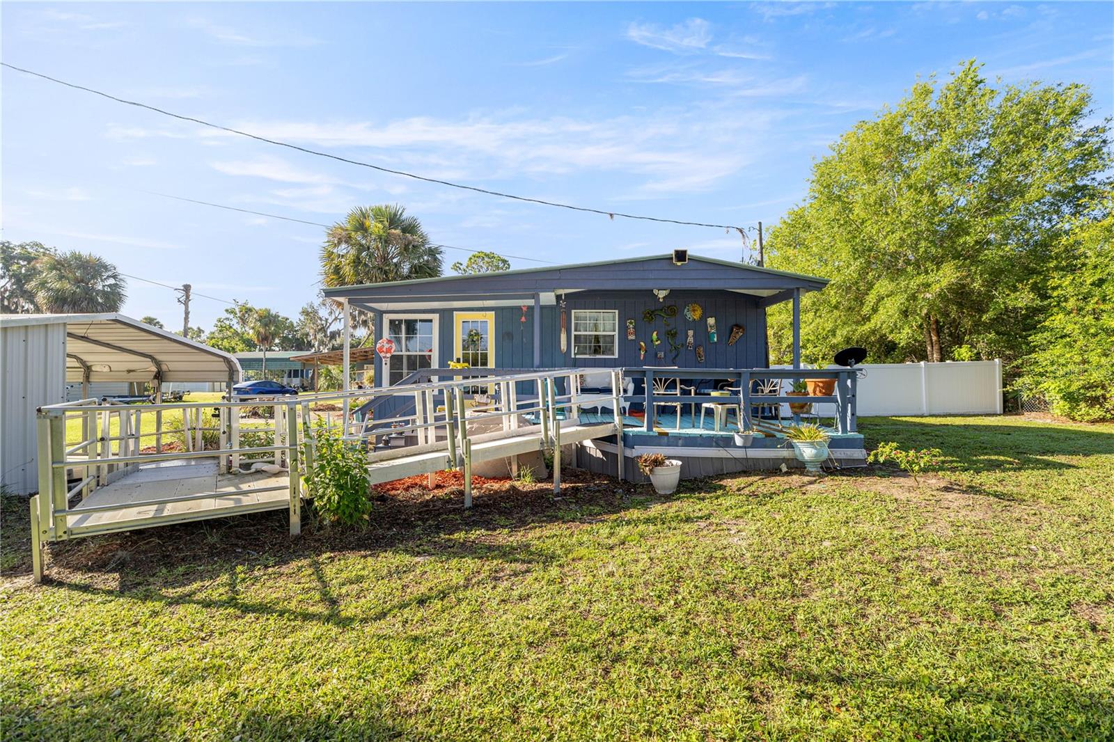 Welcome to Your Slice of Paradise in Salt Springs! Nestled in the heart of the Ocala National Forest, this beautifully upgraded and expanded home offers the perfect blend of comfort, functionality and Florida charm. Dont be fooled by its single-wide beginningsthis property has been thoughtfully remodeled and transformed into a spacious and inviting retreat. Step through the covered two-car carport and galvanized ramp into a cozy den, ideal for a home office, TV room, or relaxing hideaway. From there, enjoy a bright and open living and dining area that flows seamlessly into an oversized chefs kitchenfully renovated in 2023 with brand-new cabinets, countertops, appliances, and abundant storage and prep space. Gorgeous solid oak flooring adds warmth and character throughout. The bathroom was tastefully updated in 2021, and essential systems have been upgraded for peace of mind, including a new HVAC system (2021), water heater (2021), and durable metal roof for long-term protection. Step out back to your private, vinyl-fenced porchperfect for sipping morning coffee or unwinding in the evening. The property also features an 16x20 powered workshop/storage shed with a covered overhang, ideal for hobbies, tools, or extra storage. Set on beautifully landscaped grounds, this home is located just one block from the community boat rampproviding access to stunning Lake George, Floridas second-largest lakefor only $100/year. Enjoy days filled with boating, fishing, swimming, or exploring nearby trails and springs. Conveniently close to the Salt Springs Marina, shops, restaurants, and more. Whether you're seeking a weekend getaway or a peaceful full-time residence, this well-maintained gem has it all. Motivated sellerschedule your private tour today!
