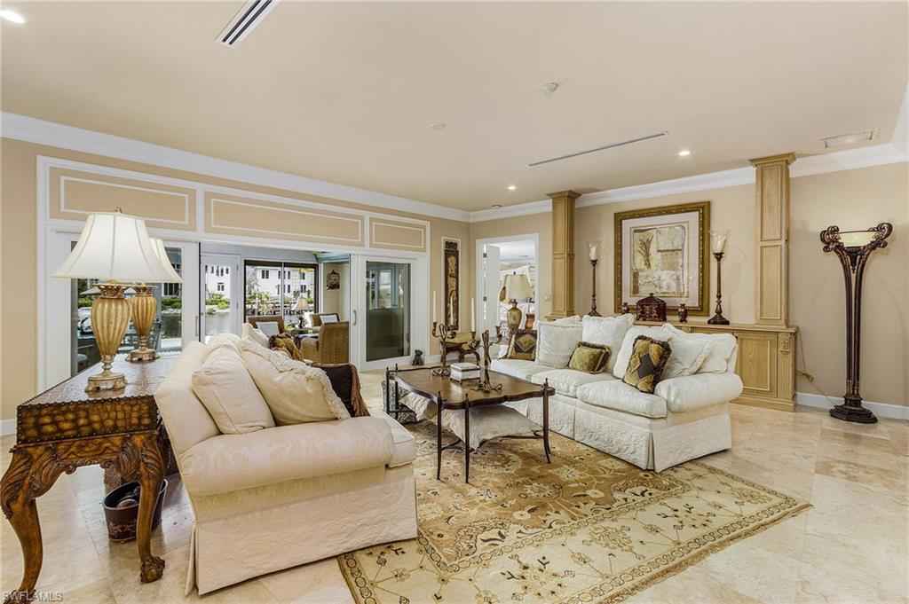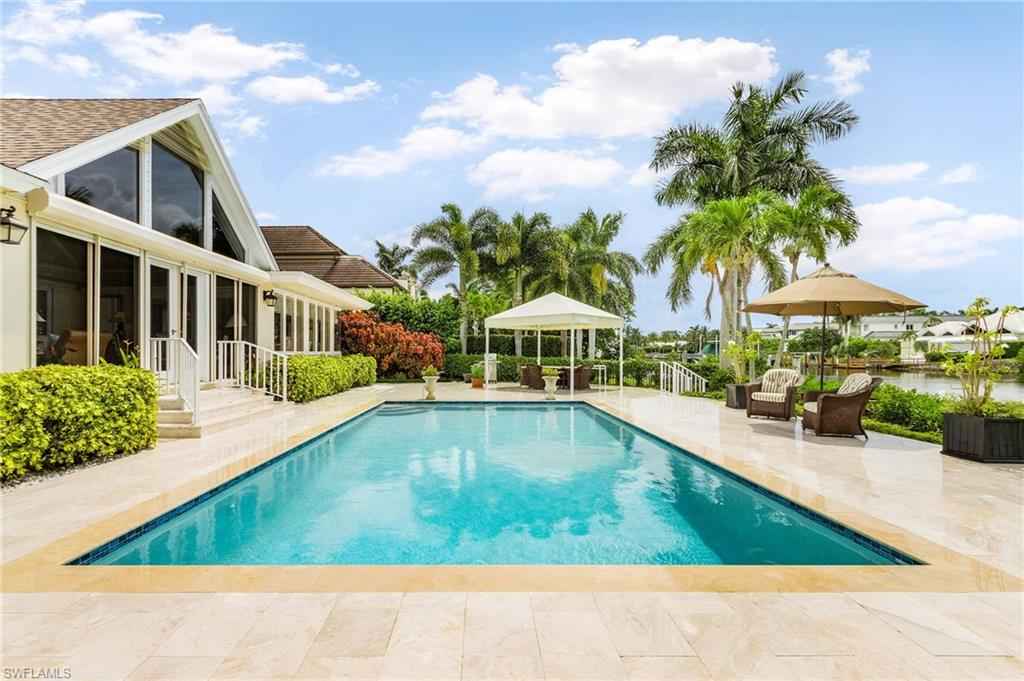 Available from April to the end of November, not available during the season. Exquisite Port Royal estate pool home, nestled along the highly sought-after Galleon Drive, offering incredible wide water Western sunset views, and unobstructed access to the Gulf. Available starting in April until December. Can accommodate a 55 ft boat, 1000 yards to the beach. Bright and sunny interior showcasing exceptional "old world" architectural detailing with classic and comfortable furnishings. Gourmet kitchen, stainless steel appliances, granite countertops, marble and wood flooring, and bedrooms have carpet. A new pool and pool deck have just been installed. Easy walk or bike to the beach or 3rd St. Experience boutiques and top-tier restaurants along the coveted 5th Ave and 3rd St. S., and Naples' pristine, white sandy beaches, just moments away.