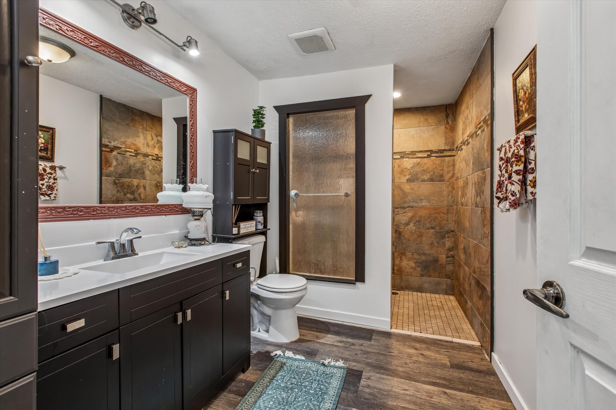 Welcome home to this absolutely adorable home where you can enjoy sunset views of Forest Lake, right from your kitchen window! This thoughtfully maintained home offers comfortable main-level living with an inviting open-concept layout connecting the kitchen, dining area, and living roomperfect for everyday living and entertaining alike.The kitchen has a farmhouse feel, featuring a farmhouse sink, stainless steel appliances, and barnwood look flooring. The beautifully updated bathroom boasts a custom-tiled walk-in shower with a luxurious waterfall showerhead, creating a spa-like experience at home.The primary bedroom offers a spacious walk-in closet and serene wooded views of the backyard. Youll also love the convenience of a main-level laundry room, making single-level living easy and efficient.Step outside to enjoy the expansive patioperfect for summer BBQs, relaxing evenings, and taking in the peaceful wooded backdrop filled with wildlife. The backyard provides privacy and a true nature-lovers setting, all while being just moments from Forest Lake. Bring your kayaks and water toystheres even a convenient storage/basement area with walk-around access, ideal for storing outdoor gear, creating an exercise space, or additional storage.Major updates provide peace of mind, including a new furnace and A/C, new roof, new septic system, and new well (2021), plus newer carpet and paint throughout.With lake proximity, wooded views, modern updates, and move-in-ready conditionthis home is ready for you to enjoy. Move in before summer begins!