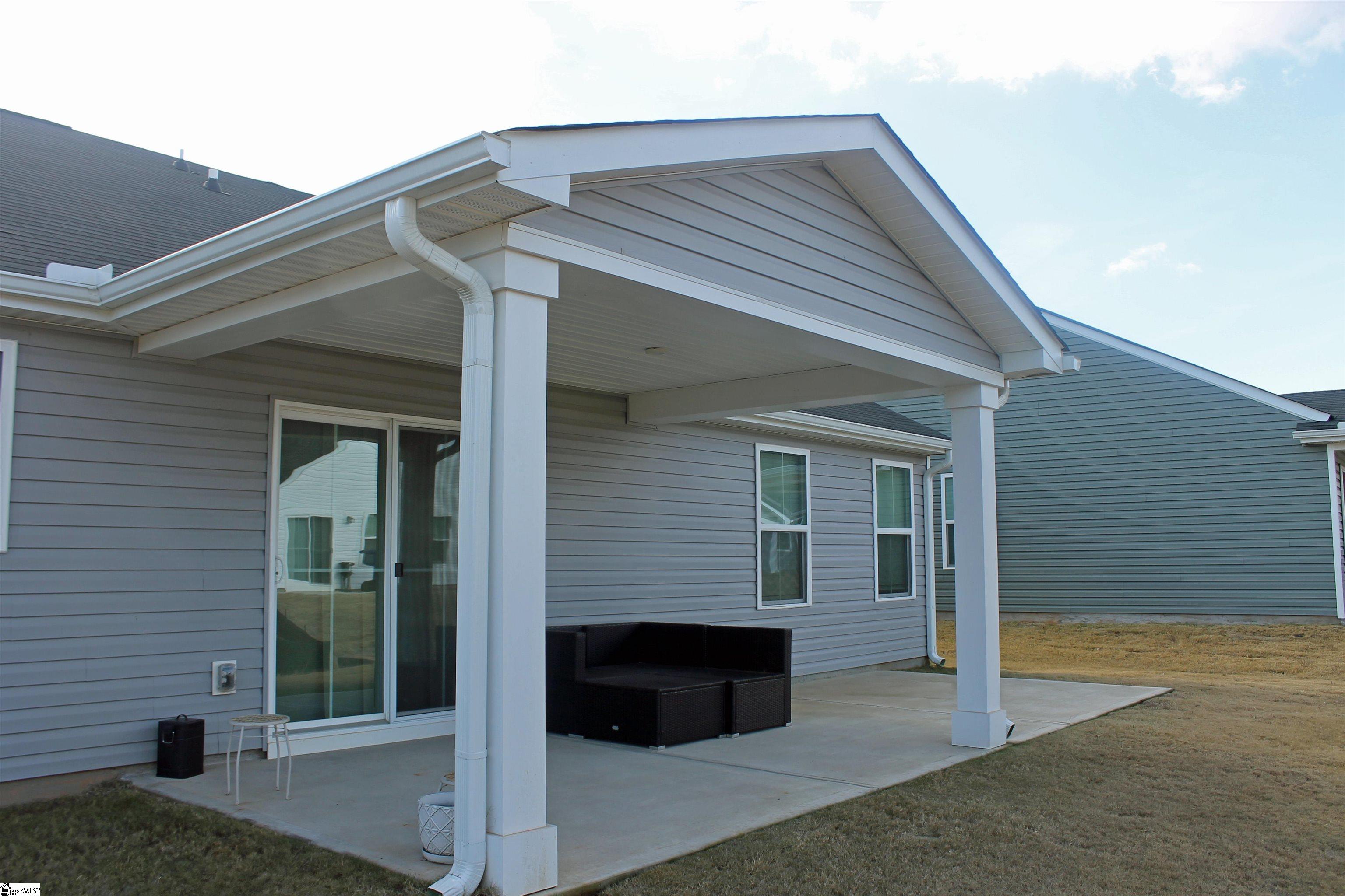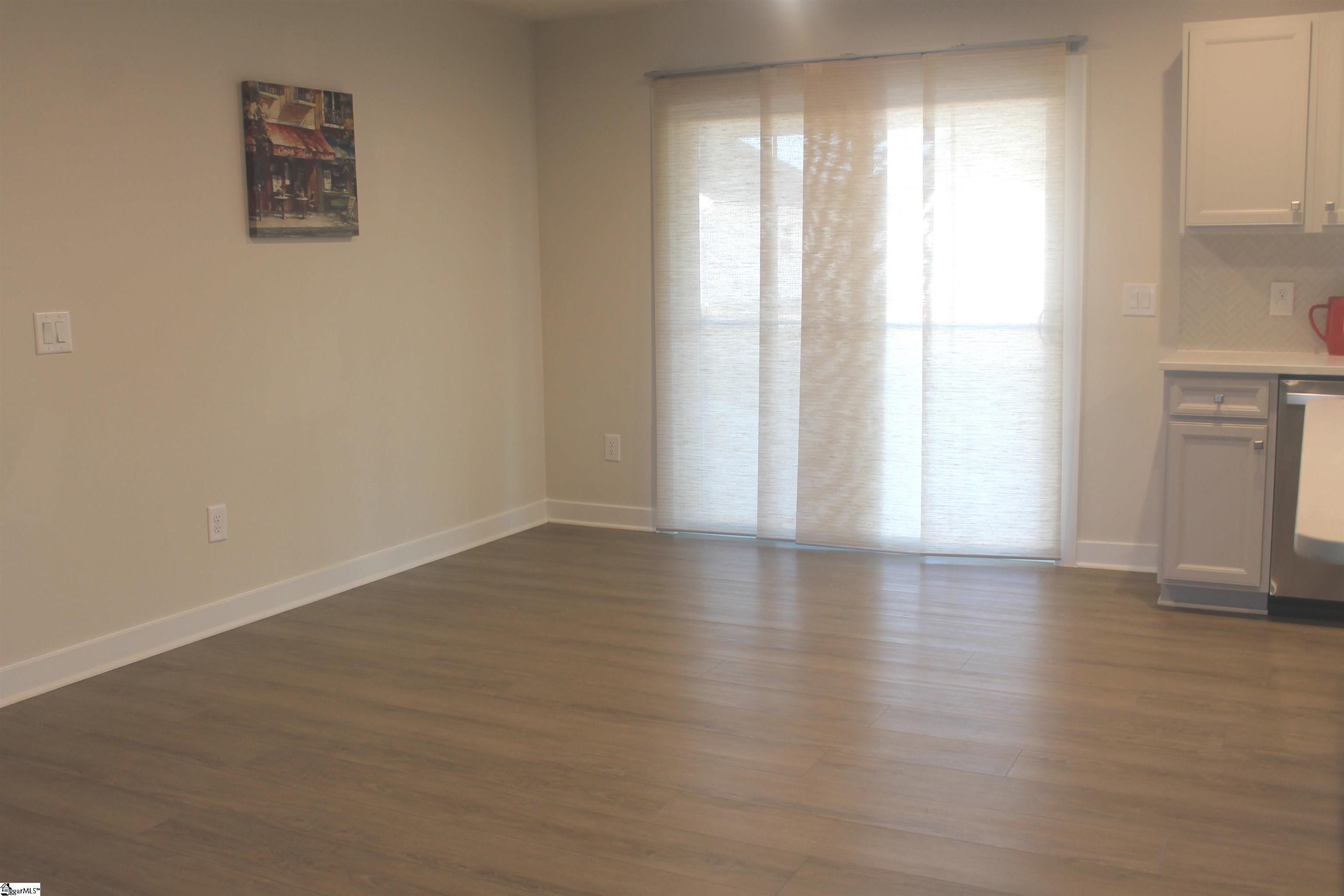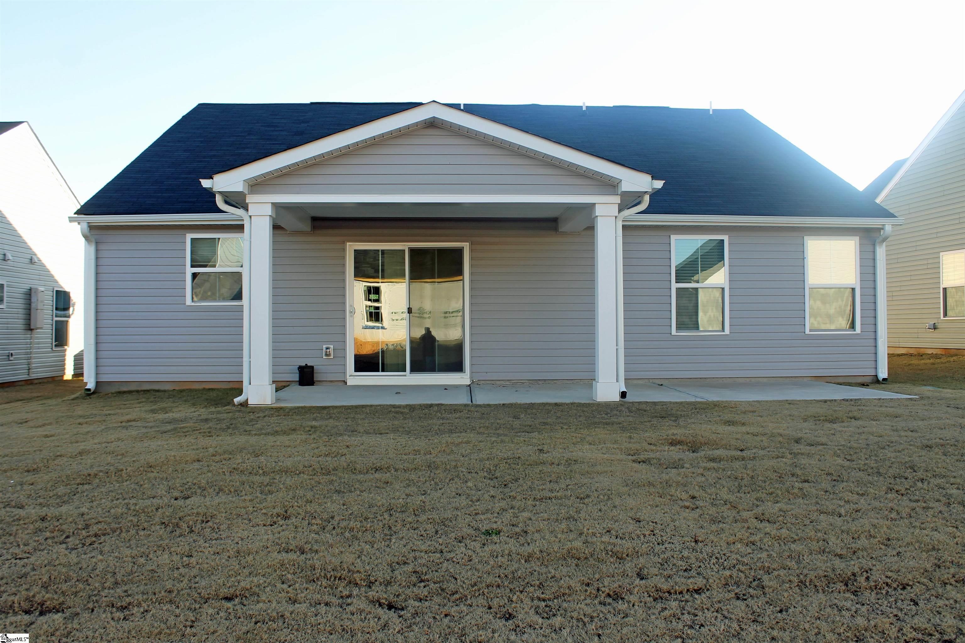This house is available with many builder upgrades including Luxury Vinyl Plank flooring throughout the house including all bedrooms. Additional upgrades include kitchen tile backsplash, a tiled primary shower, an extra large patio and tankless hot water heater. The Great room is an extra large seventeen feet by sixteen feet and is open to the kitchen and breakfast area. The kitchen has granite countertops a deep stainless steel sink with window overlooking the back yard and plenty of cabinets. The appliances include the refrigerator, built in microwave, dishwasher and smooth top stove. The kitchen also includes a large kitchen island and tile backsplash. The primary bedroom features a walk in closet and a full bathroom with double vanities and ceramic tiled flooring. With the extra large and spacious tiled shower every morning will feel like a spa day. Additional features include two inch blinds, a tankless water heater, a laundry room sink and a large two car garage with one side being 23 feet deep. This community is very walkable with extremely wide sidewalks. Lawncare is included, centrally located between Greenville and Spartanburg in a community with premier amenities and walkable to the future Town Center per the builder. Conveniently located between Spartanburg and Greenville, youll be minutes away from I-85, Hwy 101, and Hwy 290, giving you easy access to all areas of the Upstate. Medical care is only 13 minutes away at Pelham Medical Center, featuring a world-class cancer center! Looking to head out of town? Youll be a quick 10 minute drive to GSP International Airport.