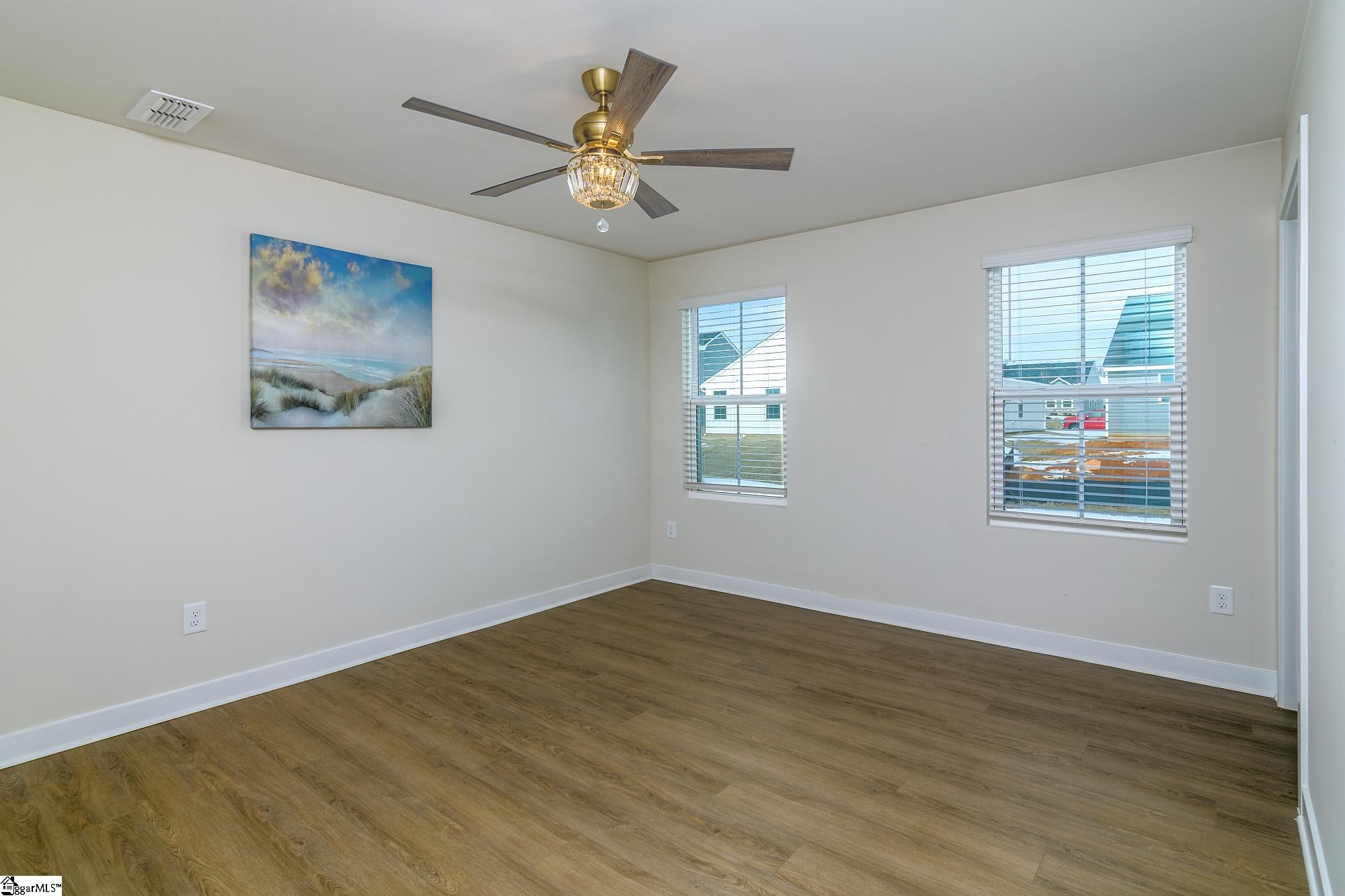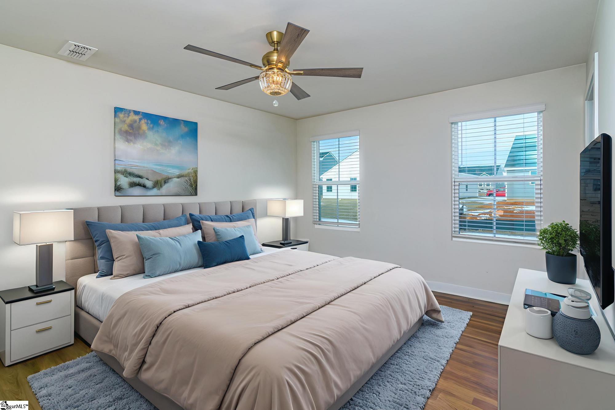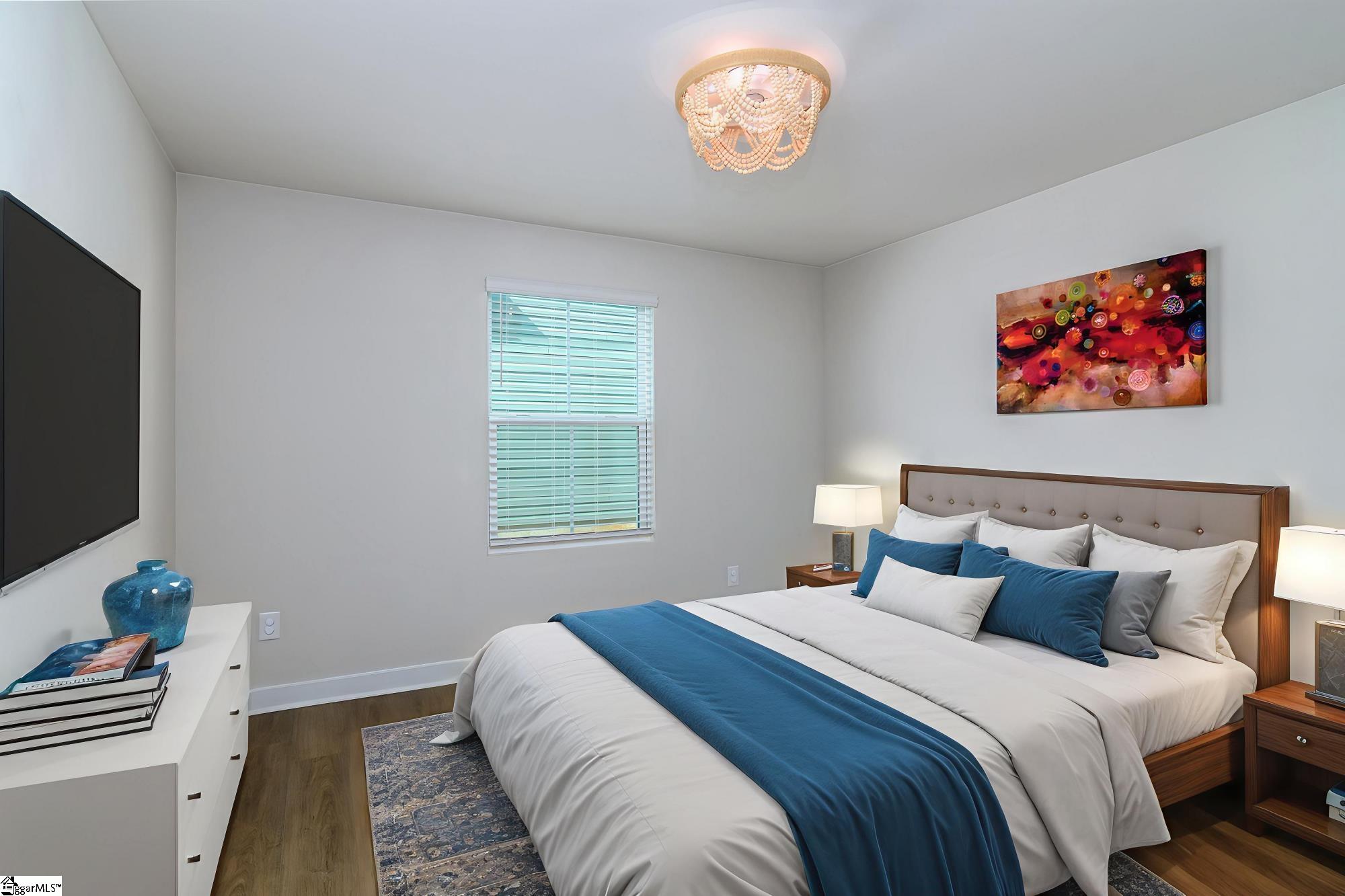 This house is available with many builder upgrades including Luxury Vinyl Plank flooring throughout the house including all bedrooms. Additional upgrades include kitchen tile backsplash, a tiled primary shower, an extra large patio and tankless hot water heater. The Great room is an extra large seventeen feet by sixteen feet and is open to the kitchen and breakfast area. The kitchen has granite countertops a deep stainless steel sink with window overlooking the back yard and plenty of cabinets. The appliances include the refrigerator, built in microwave, dishwasher and smooth top stove. The kitchen also includes a large kitchen island and tile backsplash. The primary bedroom features a walk in closet and a full bathroom with double vanities and ceramic tiled flooring. With the extra large and spacious tiled shower every morning will feel like a spa day. Additional features include two inch blinds, a tankless water heater, a laundry room sink and a large two car garage with one side being 23 feet deep. This community is very walkable with extremely wide sidewalks. Lawncare is included, centrally located between Greenville and Spartanburg in a community with premier amenities and walkable to the future Town Center per the builder. Conveniently located between Spartanburg and Greenville, youll be minutes away from I-85, Hwy 101, and Hwy 290, giving you easy access to all areas of the Upstate. Medical care is only 13 minutes away at Pelham Medical Center, featuring a world-class cancer center! Looking to head out of town? Youll be a quick 10 minute drive to GSP International Airport.