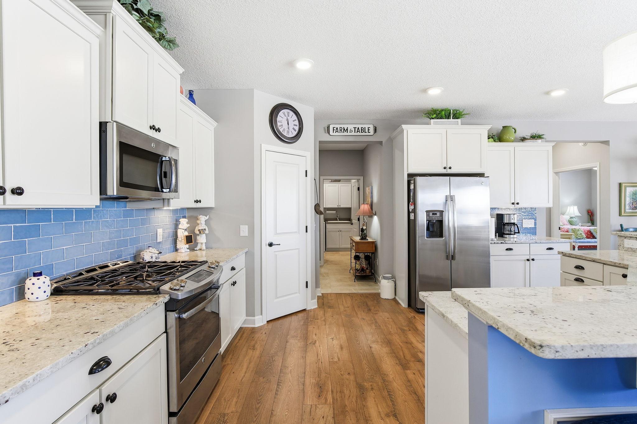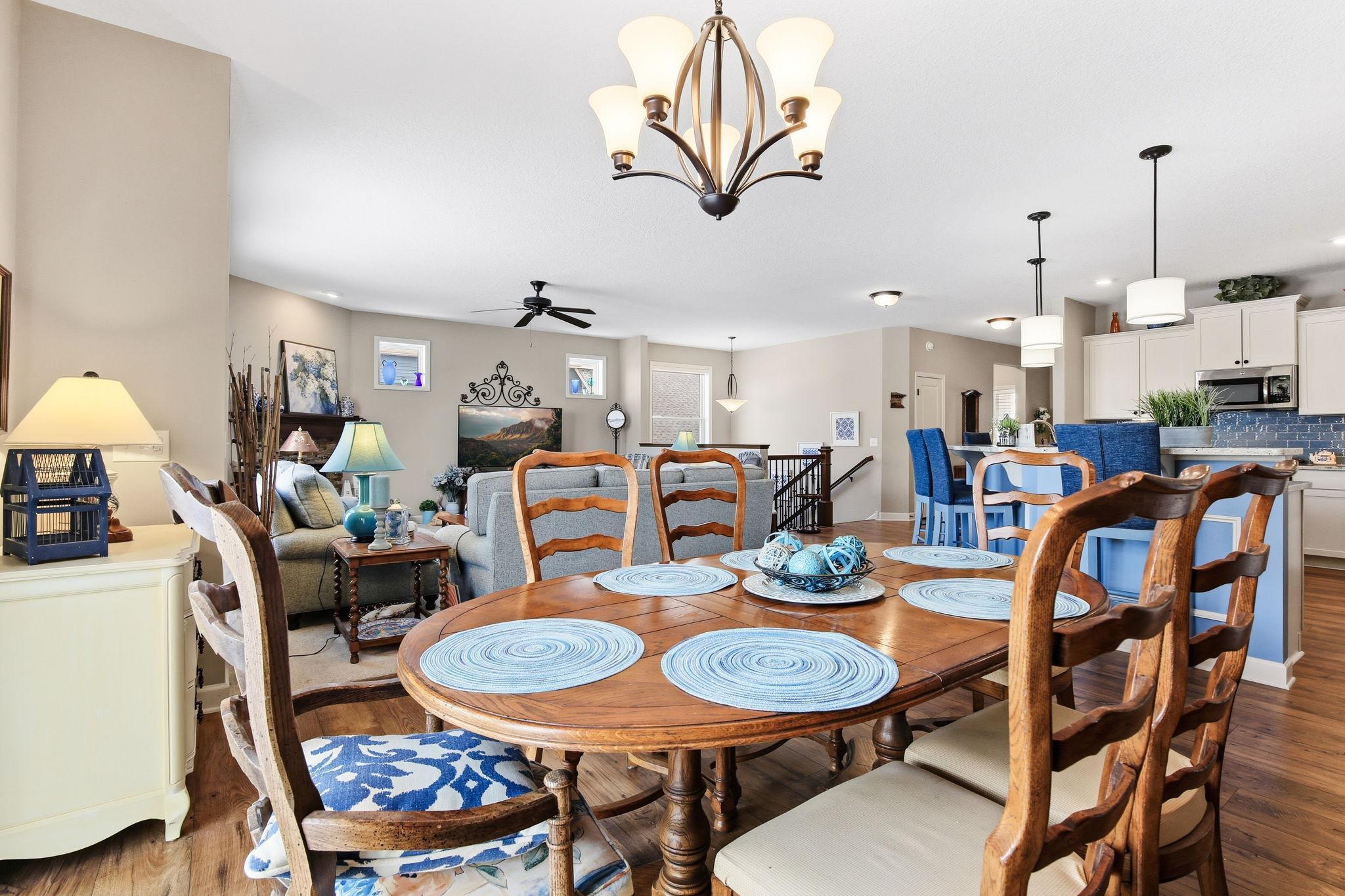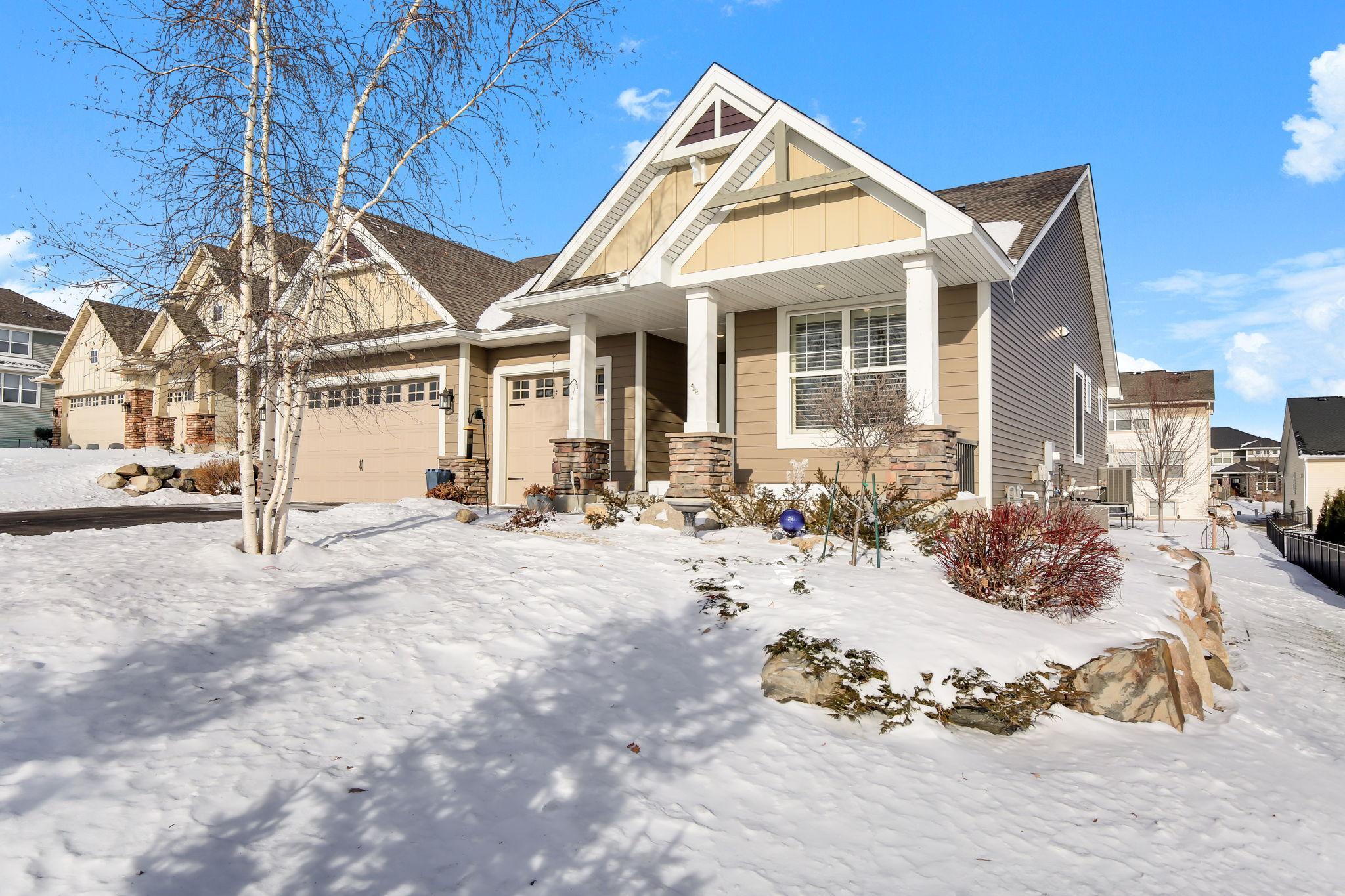 Welcome to this stately executive one-story home in the highly sought-after Savona neighborhood of Lake Elmo. Set on a generous lot, this home offers both elegance and functionality.An inviting foyer welcomes you into a grand, open-concept floor plan ideal for everyday living and entertaining. The impressive great room serves as the heart of the home, showcasing a gas stacked-stone fireplace and a large, sun-filled picture window that bathes the space in natural light. The spacious, informal dining area flows seamlessly from the kitchen and provides direct access to the maintenance-free deck, conveniently perfect for effortless indoor-outdoor living.The kitchen is thoughtfully designed with high-end finishes throughout, including stainless steel appliances, white enamel cabinetry, quartz countertops, a glass tile backsplash, a large center island, and a walk-in pantry offering abundant storage. The main level features a generous primary suite with plantation blinds, a walk-in closet, and a private full bath complete with a custom tiled dual-head shower and dual-sink vanity. A second bedroom, laundry with loads of storage and an additional full bath round out the main floor. The expansive lower level is unfinished and ready for your vision, offering endless potential for future living space. A three-stall garage completes the home, featuring built-in work cabinets that remain, ideal for a workshop or extra storage.A rare opportunity to own an exceptional one-story home in one of Lake Elmos most desirable neighborhoods.