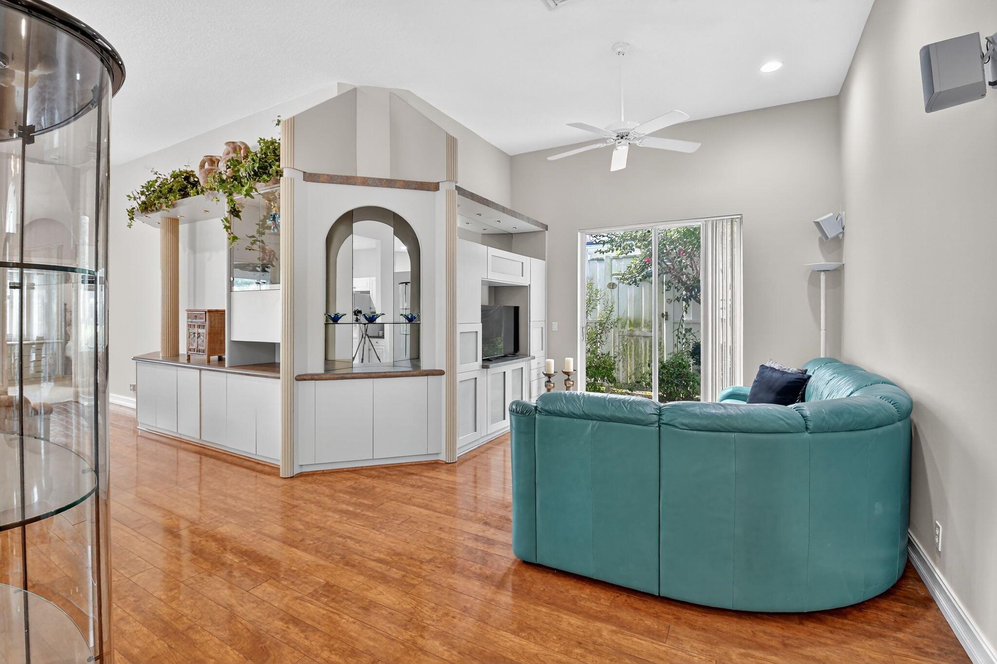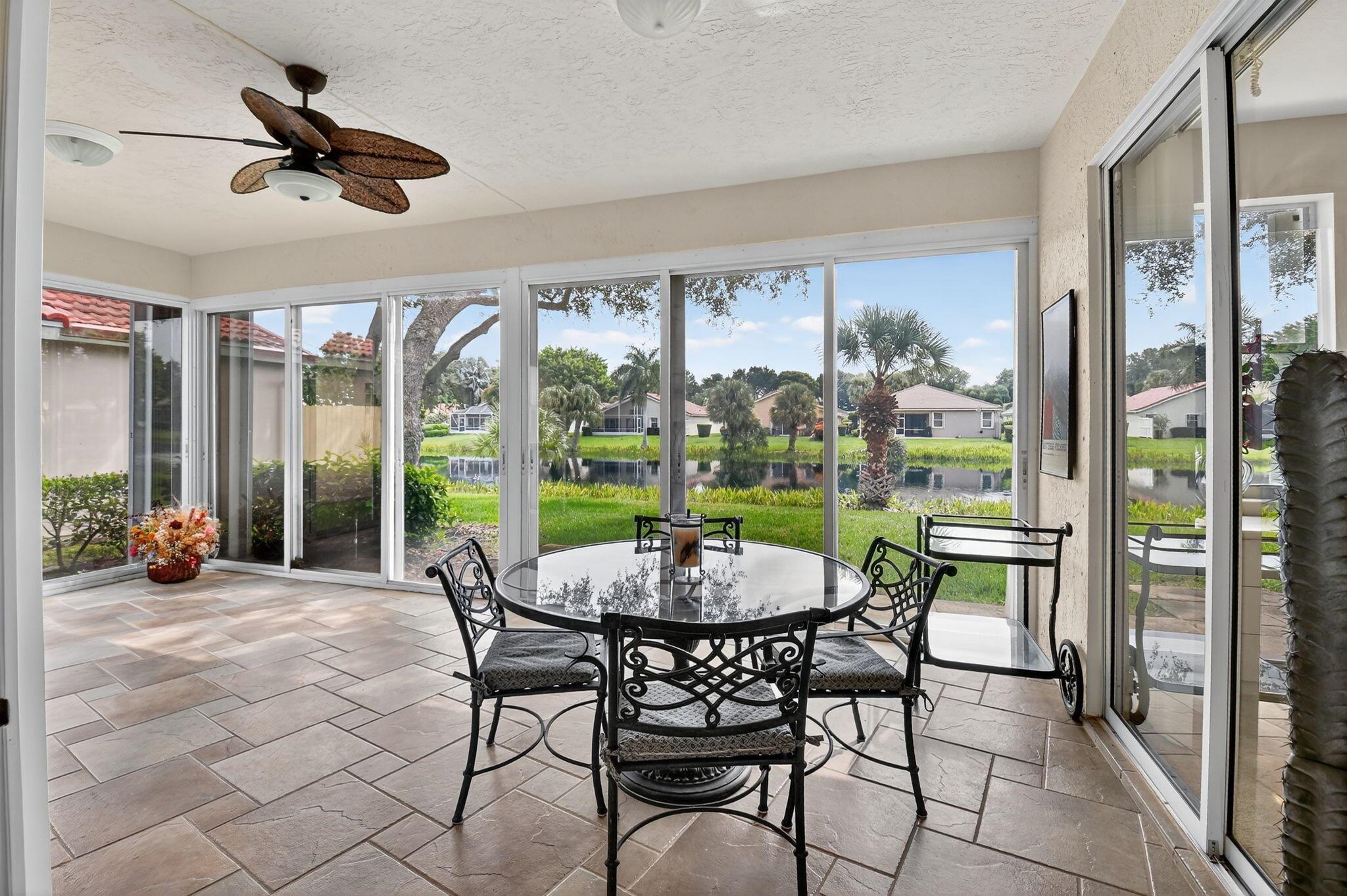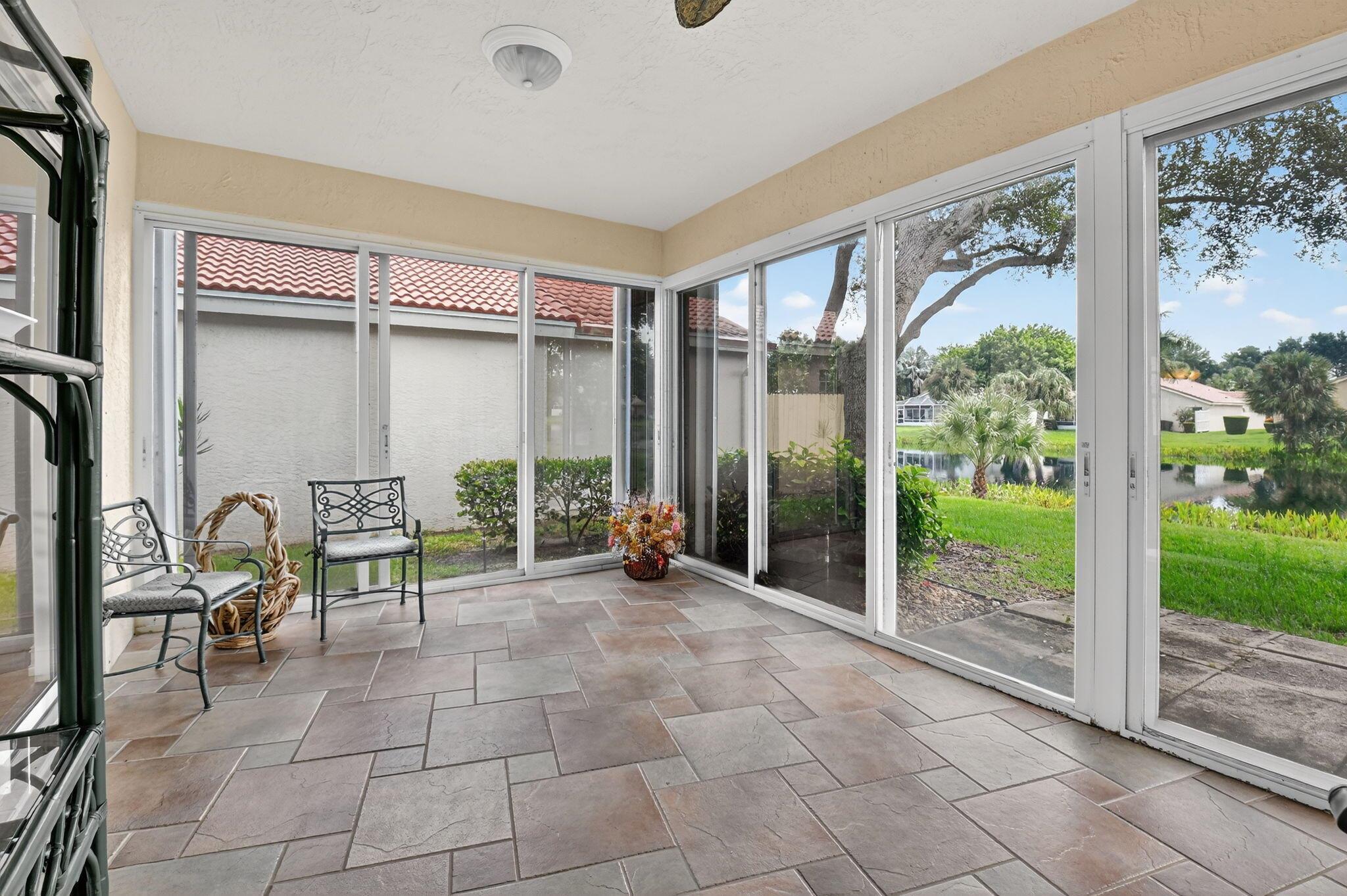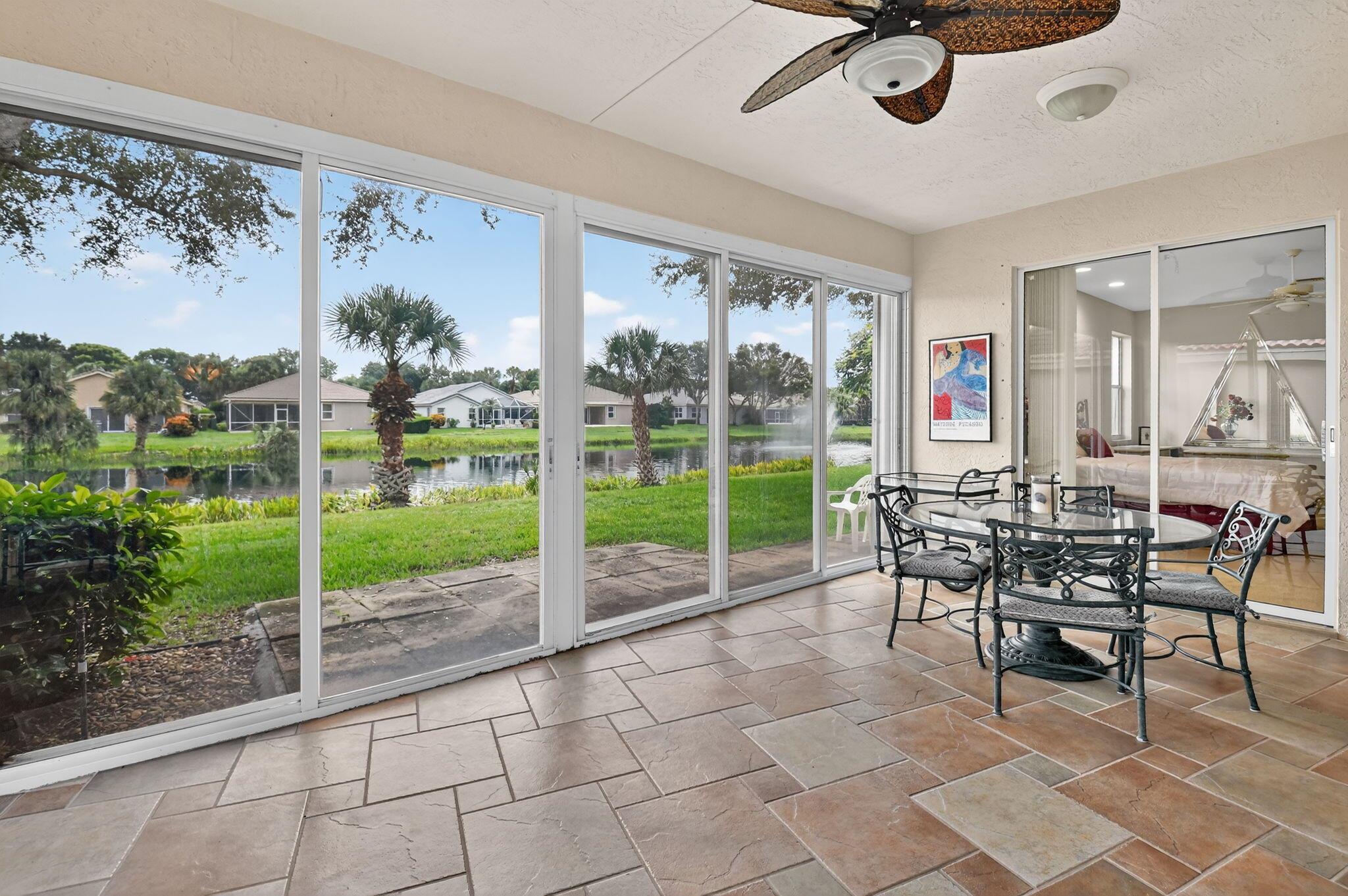 Welcome to this expansive 3 bedroom, 2 bathroom home, featuring a bright and open split floor plan. Vaulted ceilings enhance the airy feel of the largest model in Palm Isles. The open kitchen is complete with white cabinetry, granite countertops and a functional layout perfect for both everyday cooking and entertaining. Arbor View is move-in ready with modern updates throughout, including a new roof (2022), brand-new interior paint, and laminate flooring. The spacious primary suite overlooking the water offers a peaceful retreat with an oversized walk-in closet and a custom upgraded bathroom. Enjoy the Florida lifestyle outdoors with a custom extended patio ideal for relaxing and entertaining!