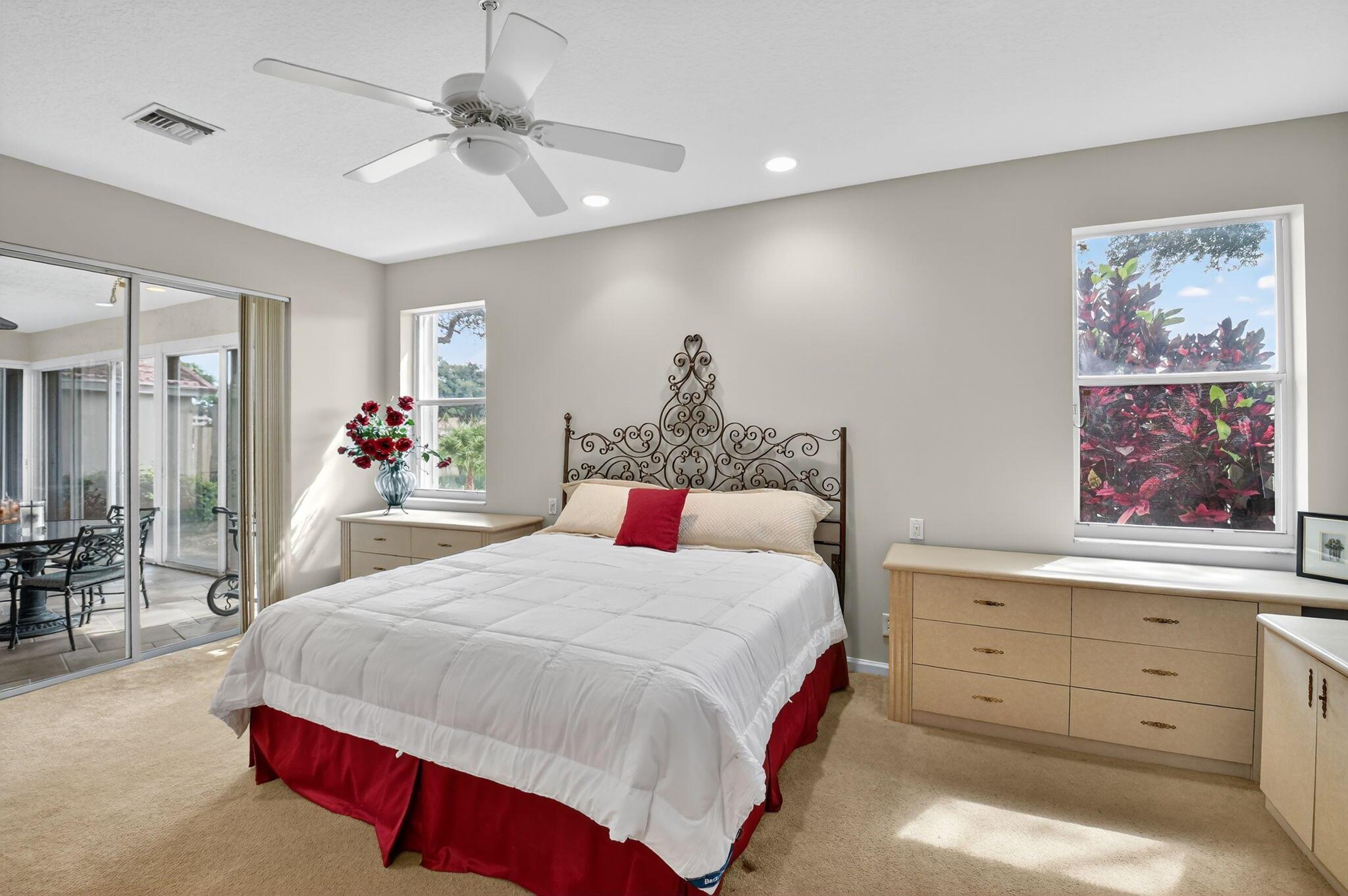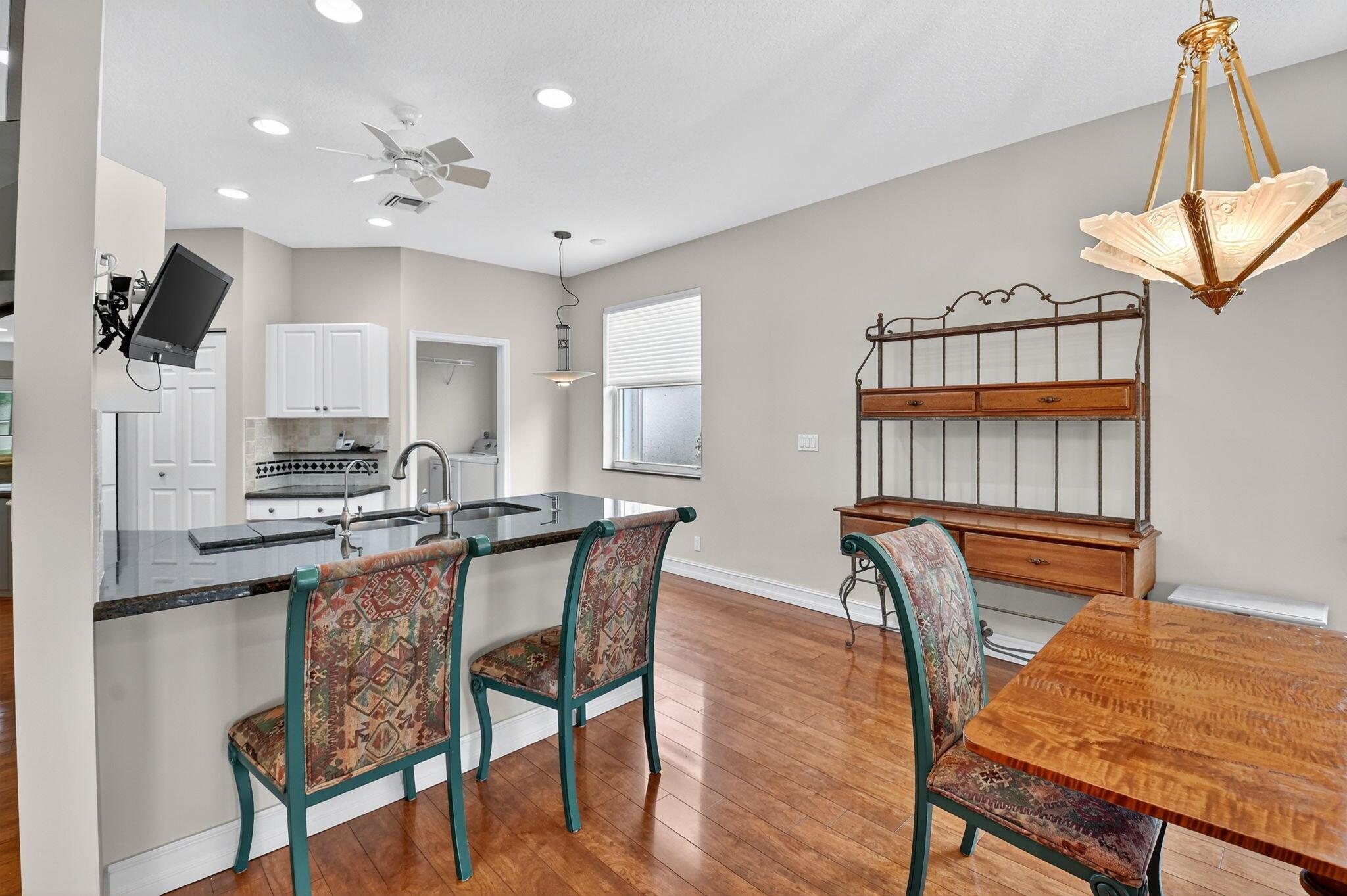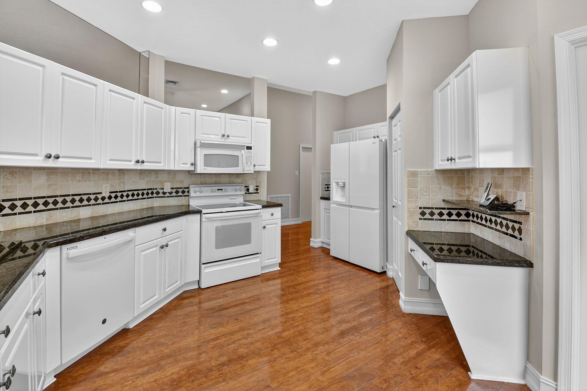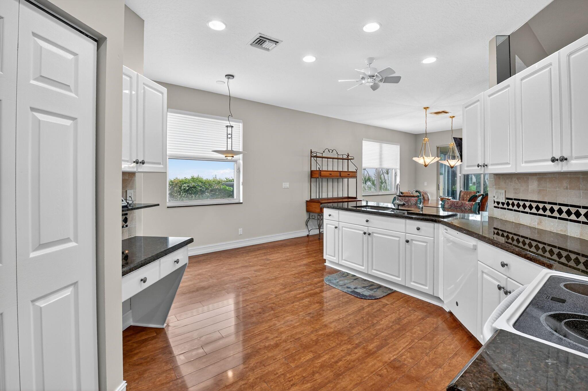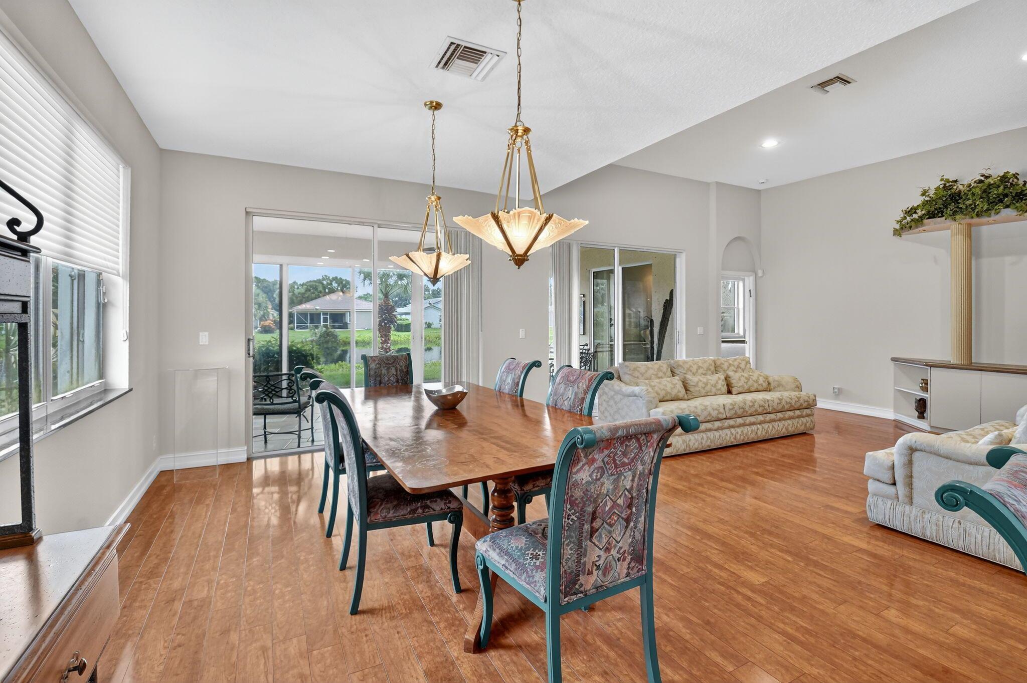Welcome to this expansive 3 bedroom, 2 bathroom home, featuring a bright and open split floor plan. Vaulted ceilings enhance the airy feel of the largest model in Palm Isles. The open kitchen is complete with white cabinetry, granite countertops and a functional layout perfect for both everyday cooking and entertaining. Arbor View is move-in ready with modern updates throughout, including a new roof (2022), brand-new interior paint, and laminate flooring. The spacious primary suite overlooking the water offers a peaceful retreat with an oversized walk-in closet and a custom upgraded bathroom. Enjoy the Florida lifestyle outdoors with a custom extended patio ideal for relaxing and entertaining!