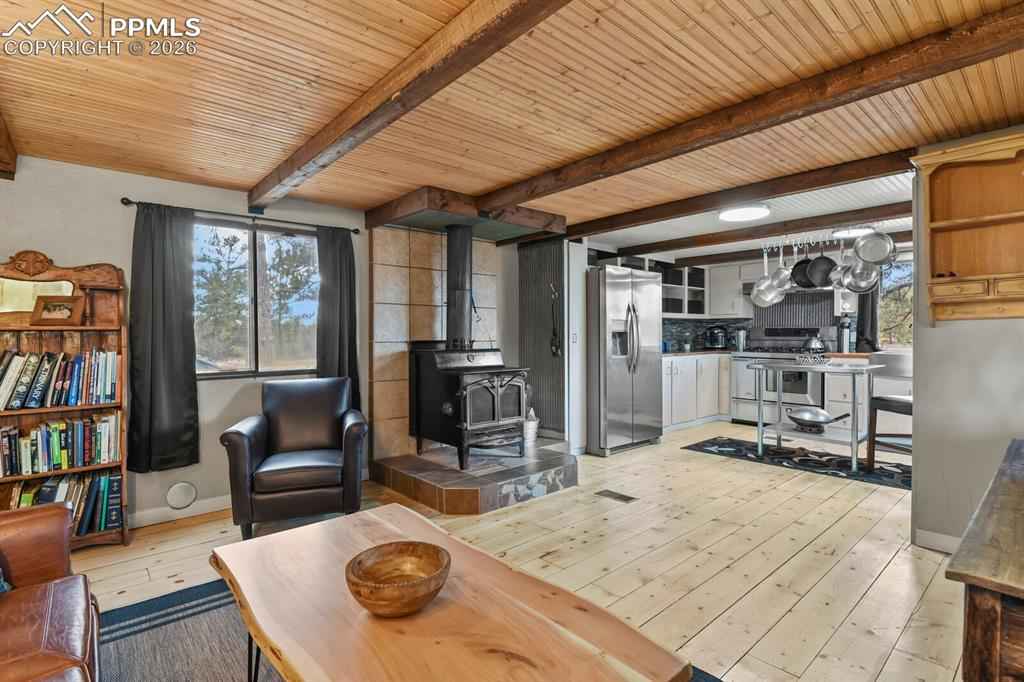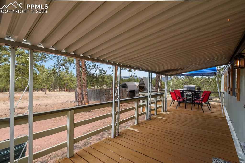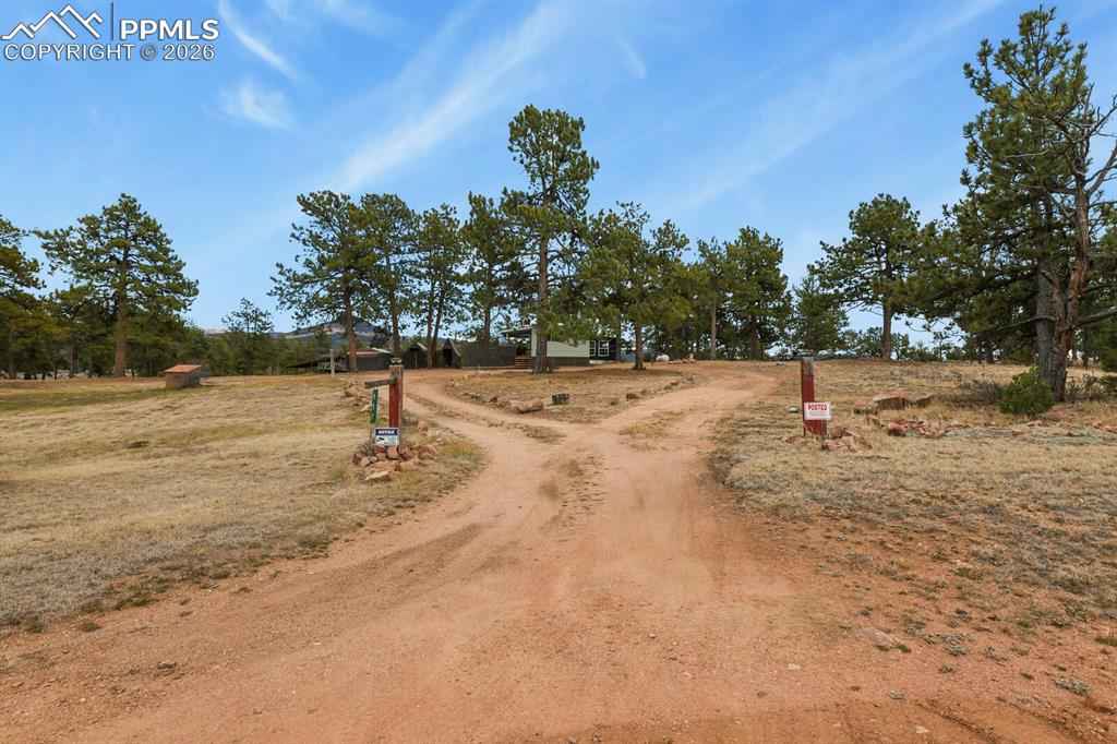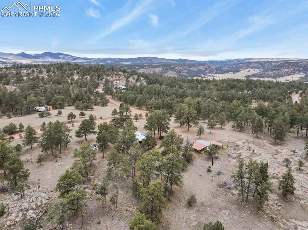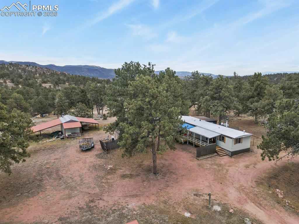 Your Colorado mountain retreat awaits! Nestled on two beautiful acres with a gentle mountain backdrop (and a Pikes Peak view!), natural rock outcroppings, and peaceful surroundings, this inviting home blends updated comfort with a true sense of simplicity and ease. The home has been mostly updated and comes with some furnishings and housewares so you can move right in and start enjoying mountain life. The kitchen offers stainless steel appliances, refreshed cabinets and countertops, and a kitchen island with a pot rack. The wood burning stove for chilly mountain evenings comes with wood to get you started. There are two bedrooms and one full bath, wood floors, as well as a top-notch whole-house water softener and filtration system. Outdoors, relax on the covered deck, take in the fresh mountain air, or explore your two acres of peaceful land accented by trees and rock outcroppings. Youx2019;ll love the three carports, storage sheds, and circular driveway with easy access and plenty of parking. No HOA means the freedom to create your mountain lifestyle your wayx2014;whether full-time living, a weekend getaway, or a furnished rental opportunity. Come see the view, feel the peace, and make this mountain gem your own.