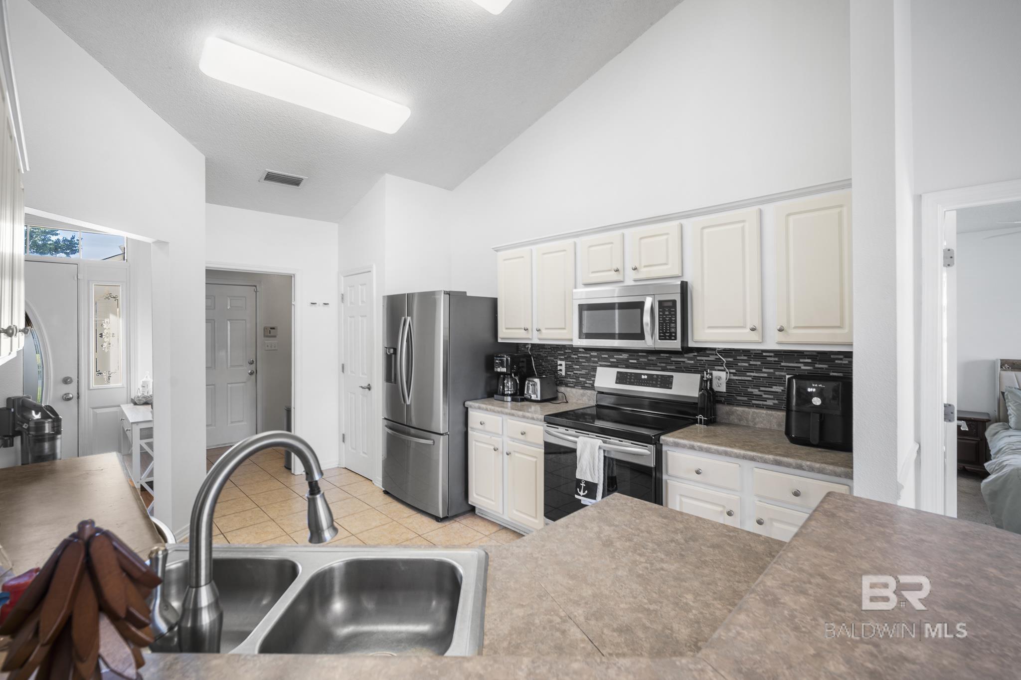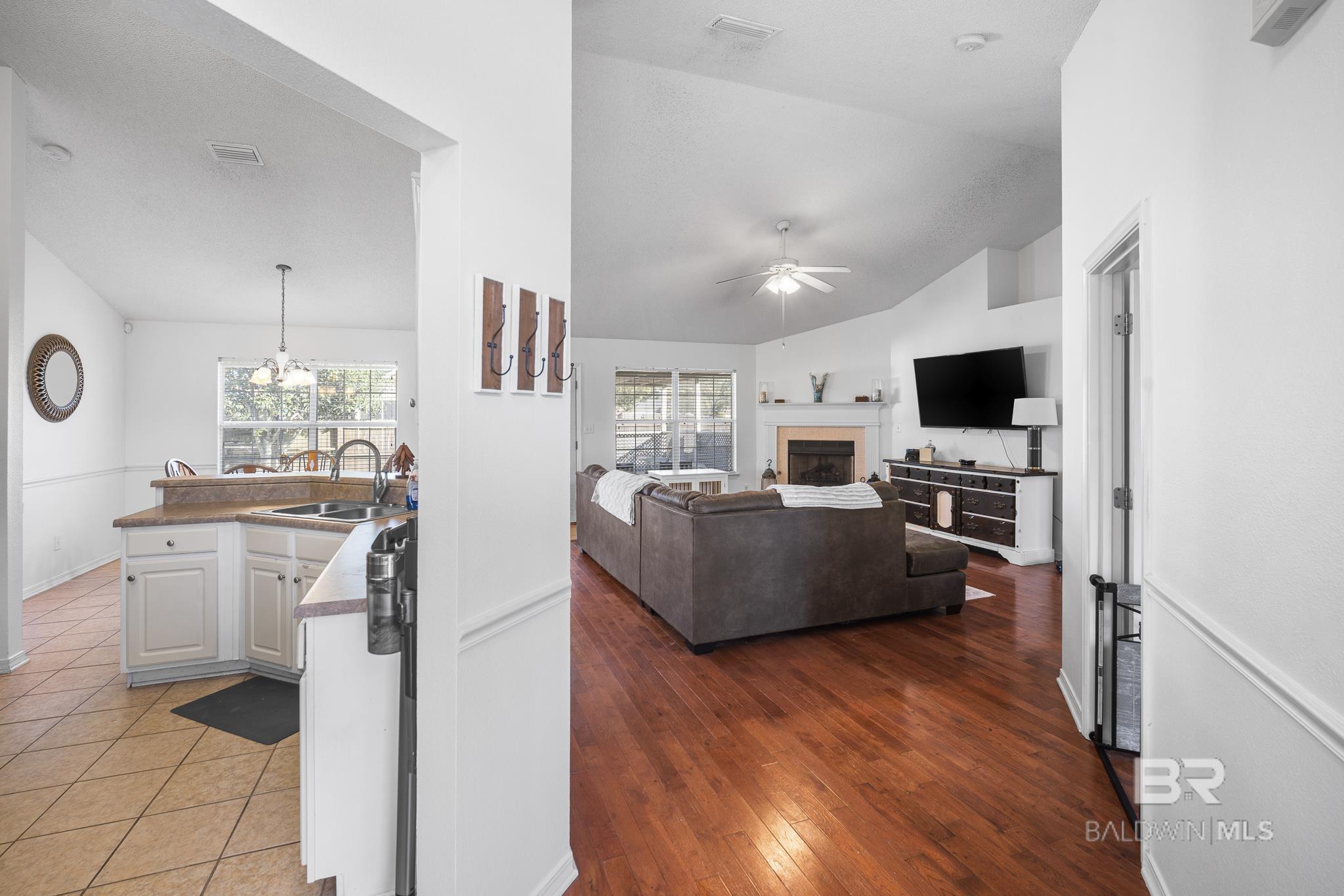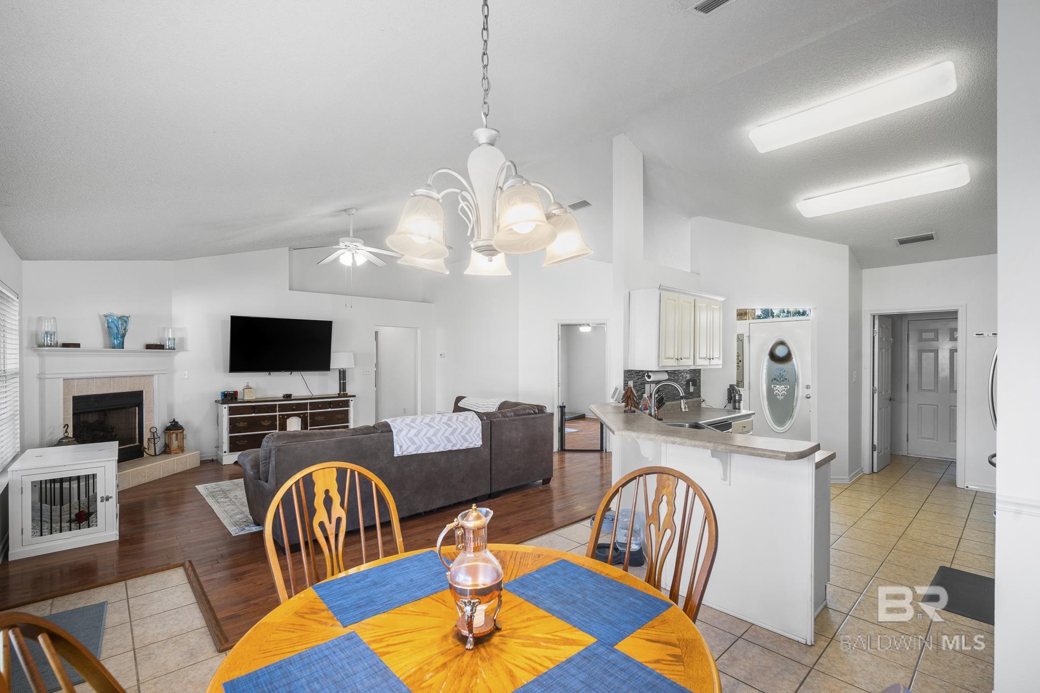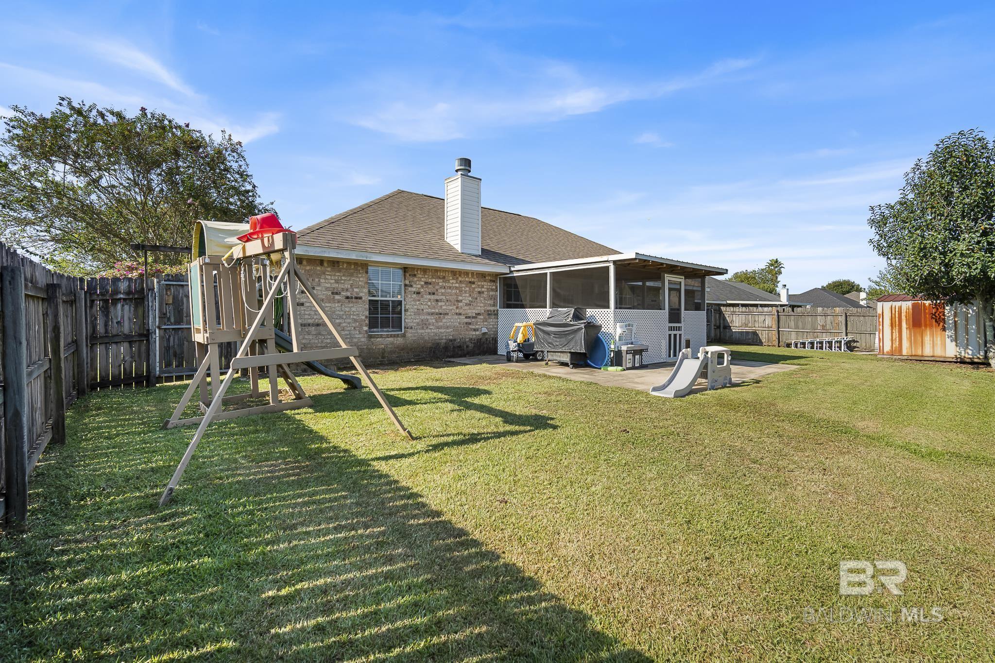 This charming brick house sitting on a large corner lot in Miller's Crossing offers 1762 SQ FT with 4 bedrooms and 2 bathrooms. Living Room has vaulted ceiling, engineered wood floors, gas fireplace. Kitchen has tile floors, freshly painted white cabinets, stainless steel appliances--dishwasher (2024), induction cooktop range (2021), disposal, microwave. Primary bedroom suite has a walk-in closet, double sinks, garden tub, shower, separate toilet area. Split bedroom plan. Hall bathroom services the 3 guest bedrooms. Laundry room has a shelf and hanging rack. Screened patio with an extended concrete patio. Double garage. Fenced backyard. Storage shed in backyard. Swing set does not convey. Roof 2021. Ring doorbell. HOA is $25/month. Downtown Fairhope is ~10 minutes from Miller's Crossing. Easy access to J Larry Newton from neighborhood. All information deemed reliable and accurate. Buyer to verify all information during due diligence period. Buyer to verify all information during due diligence.