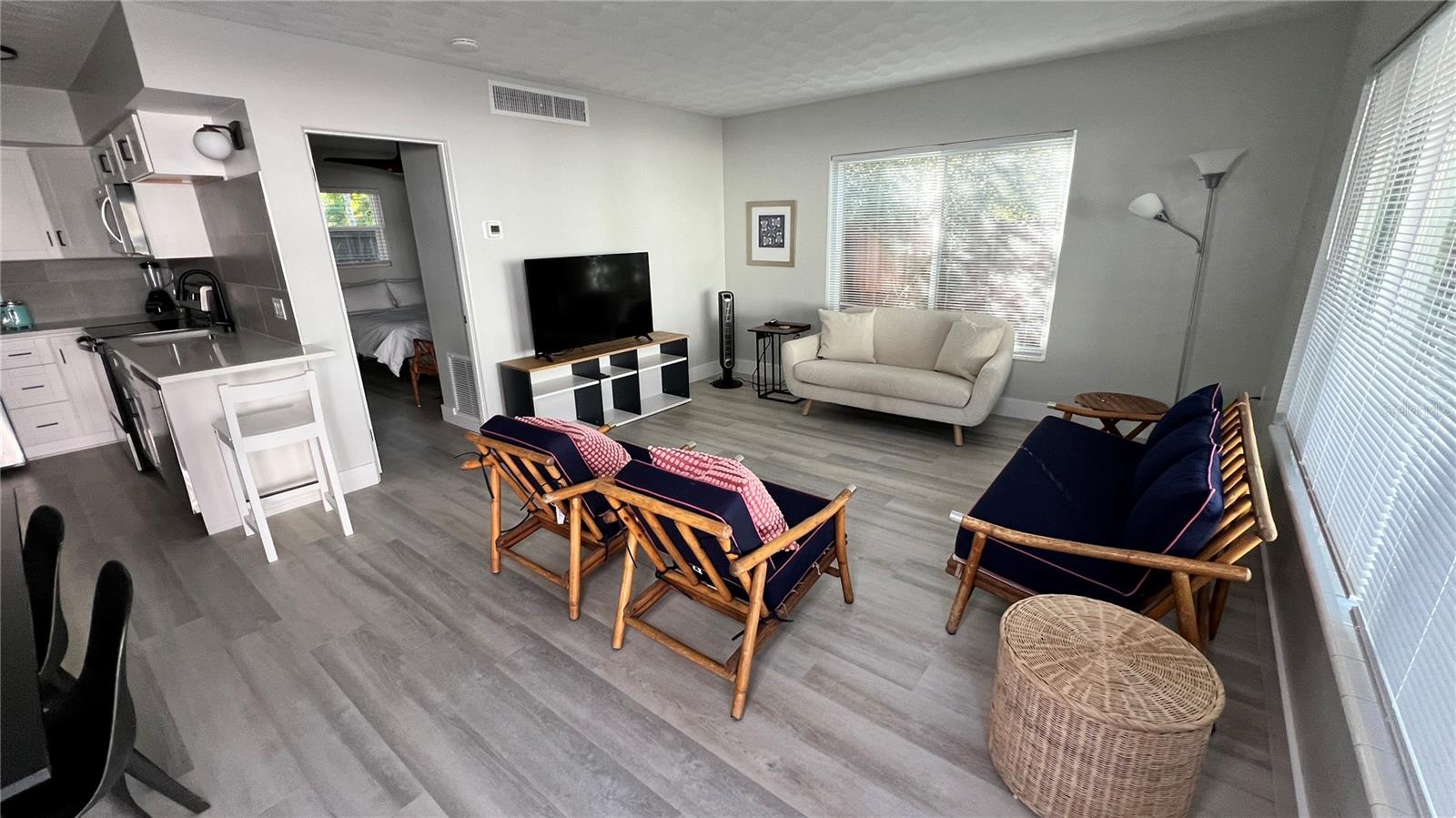 West of N Tamiami Trail and the bay (US-41) in a private and quiet neighborhood.- Walk 2 blocks to watch the sunsets on the bay or exercise or stroll through the beautiful neighborhood on the Sarasota Recreational Trail. Duplex in Ind. Beach/Sapphire Shores neighborhood. Fully remodeled unit with new roof, impact windows, updated plumbing/electrical, and central cooling/heating. Updated kitchen with shaker cabinets, quartz counter tops, and stainless steel appliances. Beautiful bathroom with modern plumbing fixtures. Shared covered laundry. 1-1/2 miles to downtown Sarasota, 4 miles to St. Armands Circle and Lido Key, and 6 miles to Siesta Key. 2 blocks to Ringling College excellent for student housing. Enjoy single family home living in this tree lined street close to everything with much privacy and security. Parking on premises. NO FLOOD/EVACUATION ZONE ** Unit can be rented furnished or unfurnished **