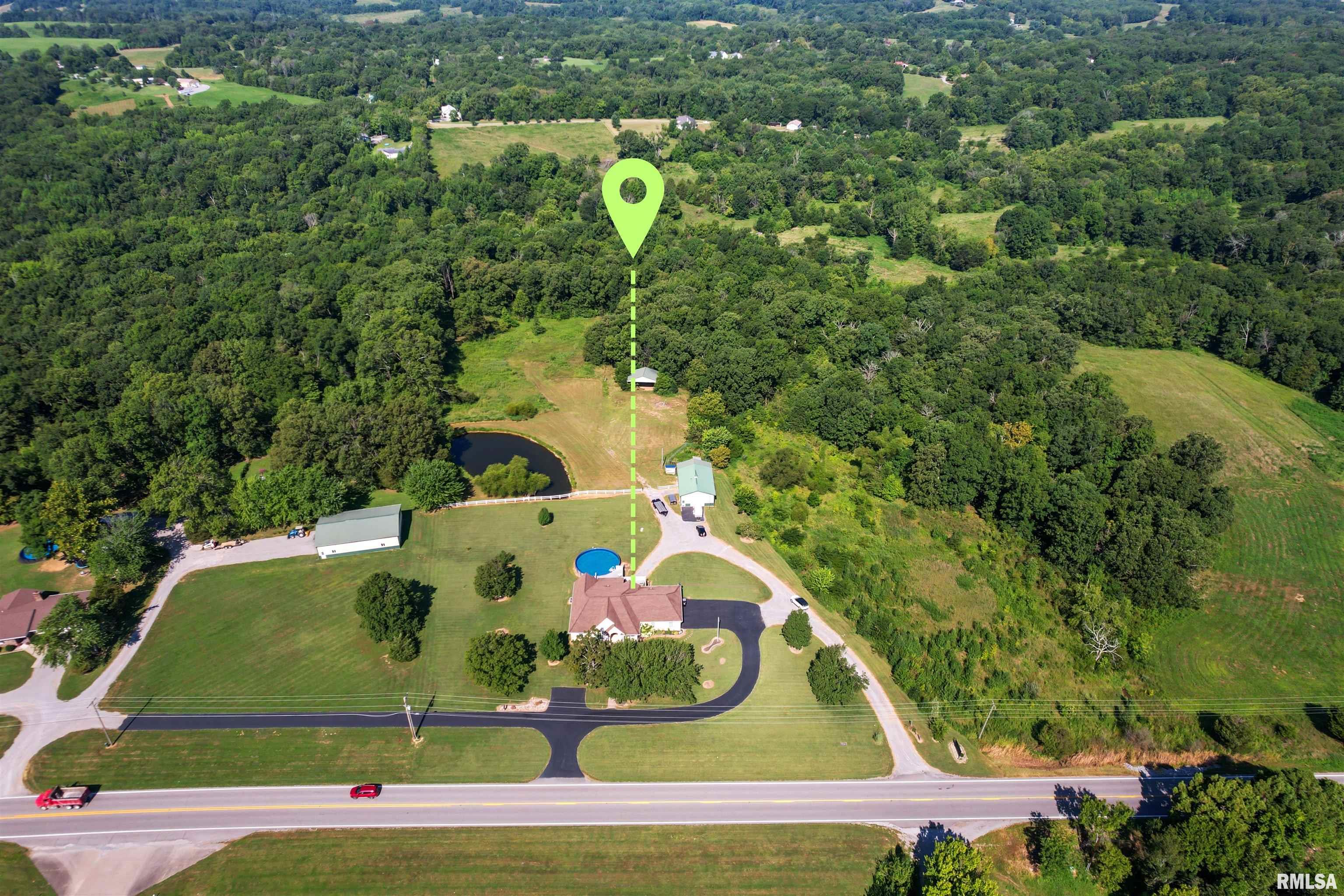 Country estate with modern luxuries. If you choose to enjoy the privacy of your own 12 acres or you choose to entertain frequently, this is a must-see! This 4-bed/4-bath home has been updated by the current owners and is ready for you to move in!! Situated just at the edge of town, you will appreciate the convenience to Goreville, Marion, and access to the interstate. Chef's kitchen, magnificent master suite, two additional bedrooms, high ceilings, wood floors, stone fireplace, formal and informal dining, sunroom, and very spacious mud room/laundry comprise the main level. The walk-out basement has been partially finished with a family room, kitchenette, full bath and a bedroom....making it perfect for extended-stay guests or a family member who prefers their own living space. The back of the home hosts a maintenance-free deck leading to the salt-water pool and provides the most amazing view of sunsets. There is a pond for fishing, a 3-sided hay barn, and a 30x40 pole barn with concrete floor, oversized door, 220 amp service, and lean-to. This property can be utilized in so many ways. Bring your dreams and start living them!