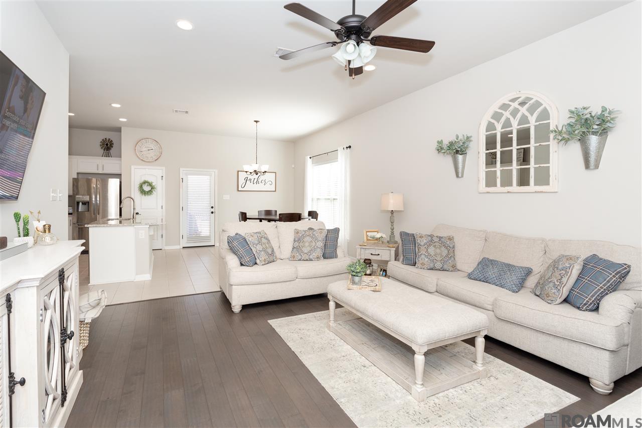 Well maintained 3 bedroom, 2 bath home for lease in Prairieville. Beautiful kitchen with slab granite, custom cabinets and gas range. Living room features hand-scraped wood floors and is open to the dining room and kitchen. Master bedroom offers a soaker tub and separate shower, along with a large walk in closet. Spacious laundry room leads you to the double garage. Fenced in back yard and rear patio.