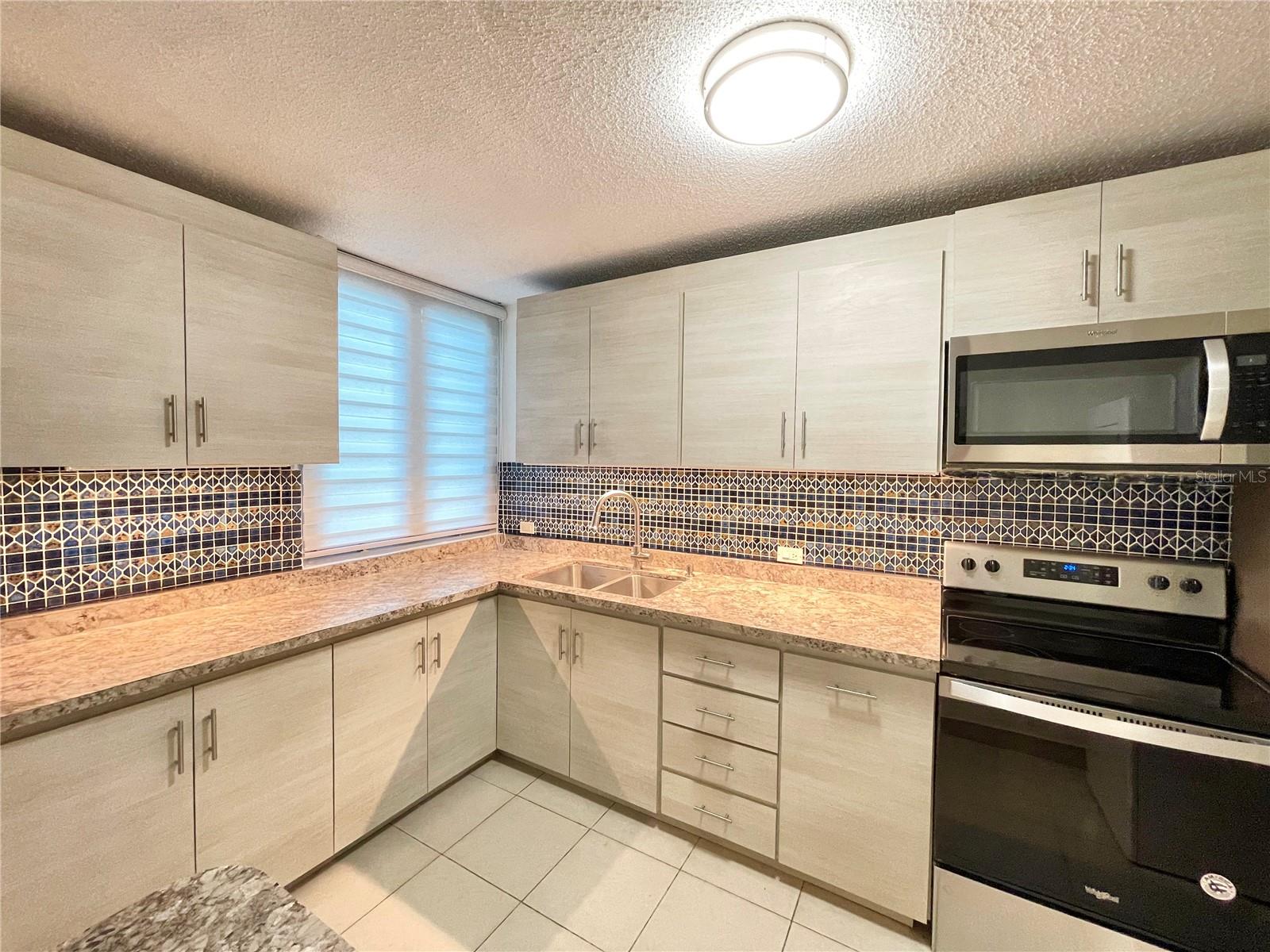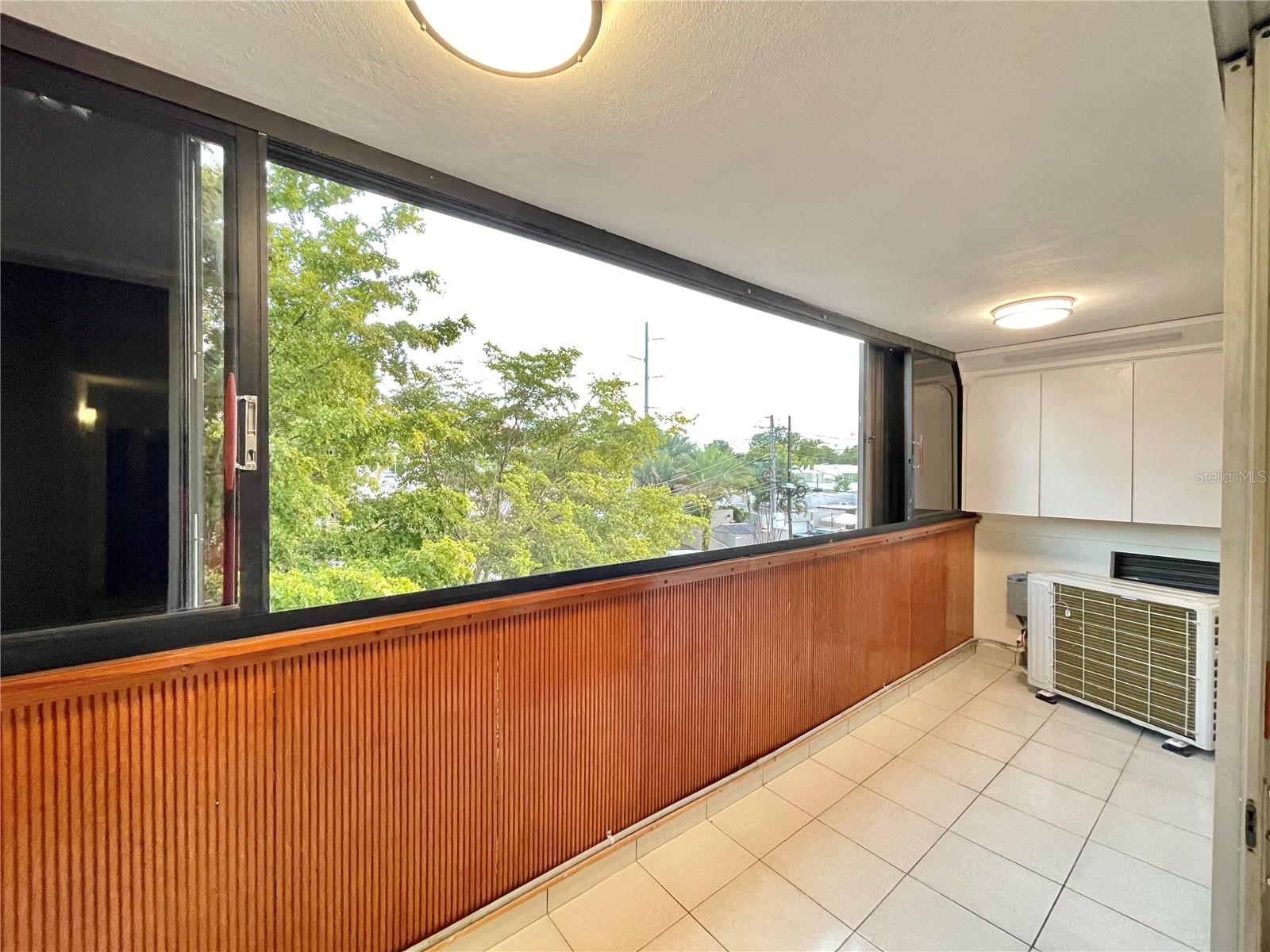 Spectacular corner apartment on the 2nd floor of the Cond. El Generalife. Enjoy plenty of natural light and a balcony overlooking the trees on Caoba Street. It consists of 2 bedrooms, remodeled kitchen, large living room, 2 remodeled full bathrooms, balcony and 1 parking space. Includes appliances such as refrigerator, microwave, stove with oven, washer dryer combo and inverter air conditioning units in the living room and all bedrooms. Centrally located on Ave. San Patricio close to restaurants, banks, recreational parks, among other things and with quick access to expressways and main roads.