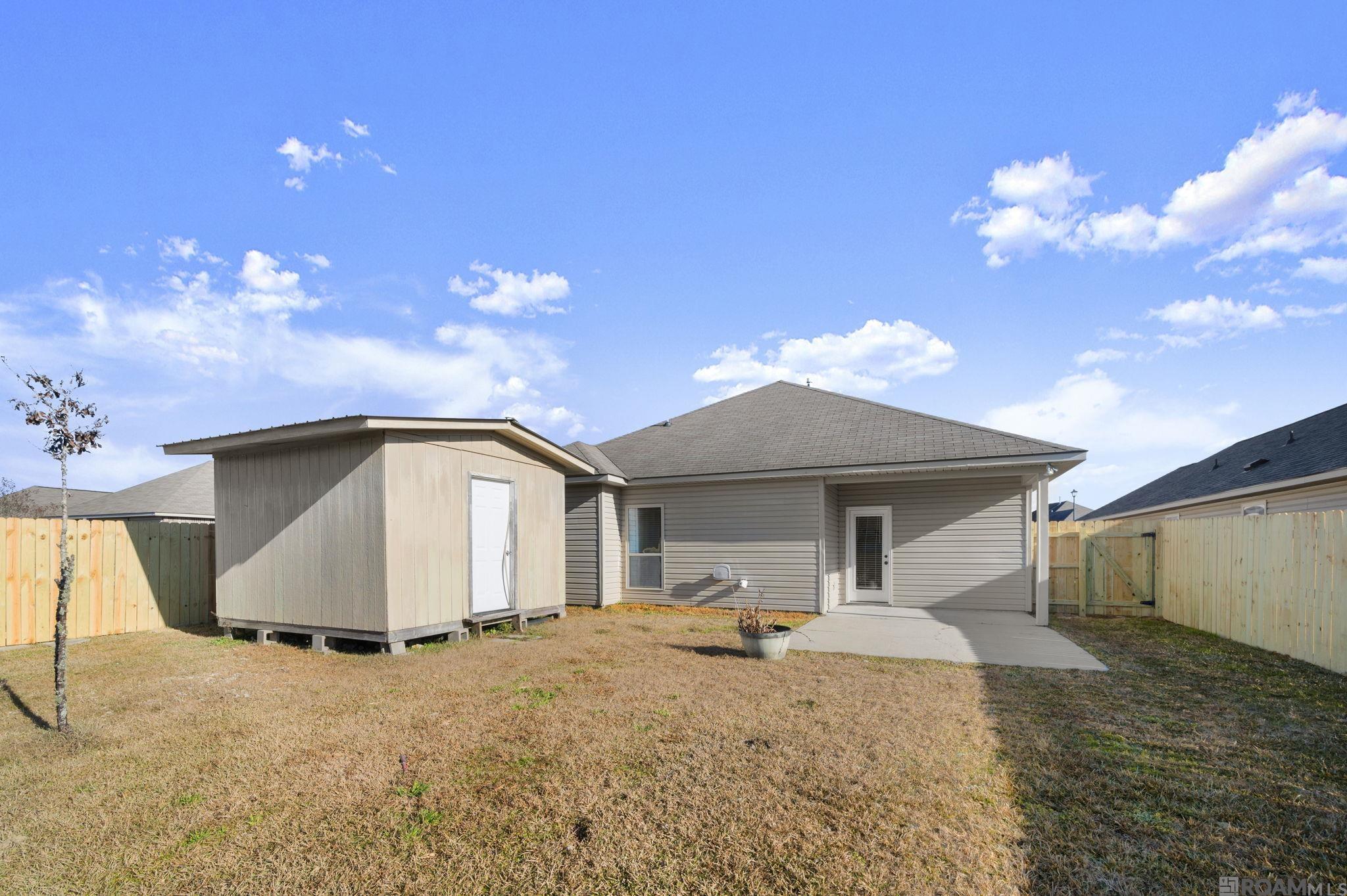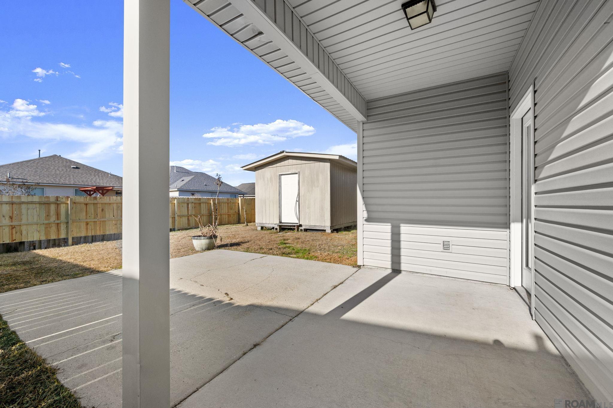 Move-in ready! 3BD/2BA home features a kitchen with newly installed slab granite countertops and plenty of cabinets for storage. Dining room and kitchen are open to the family room. Fresh paint throughout the home. Slab granite countertops are also in bathrooms, ceramic tile floors in all "wet" areas, vinyl plank flooring in bedrooms. Primary bathroom has a tub/shower combo, double vanities and a large walk-in closet. Fully fenced back yard has a 12 x 12 storage building and 12 x 12 extra slab making a wonderful patio space for your outdoor entertaining.