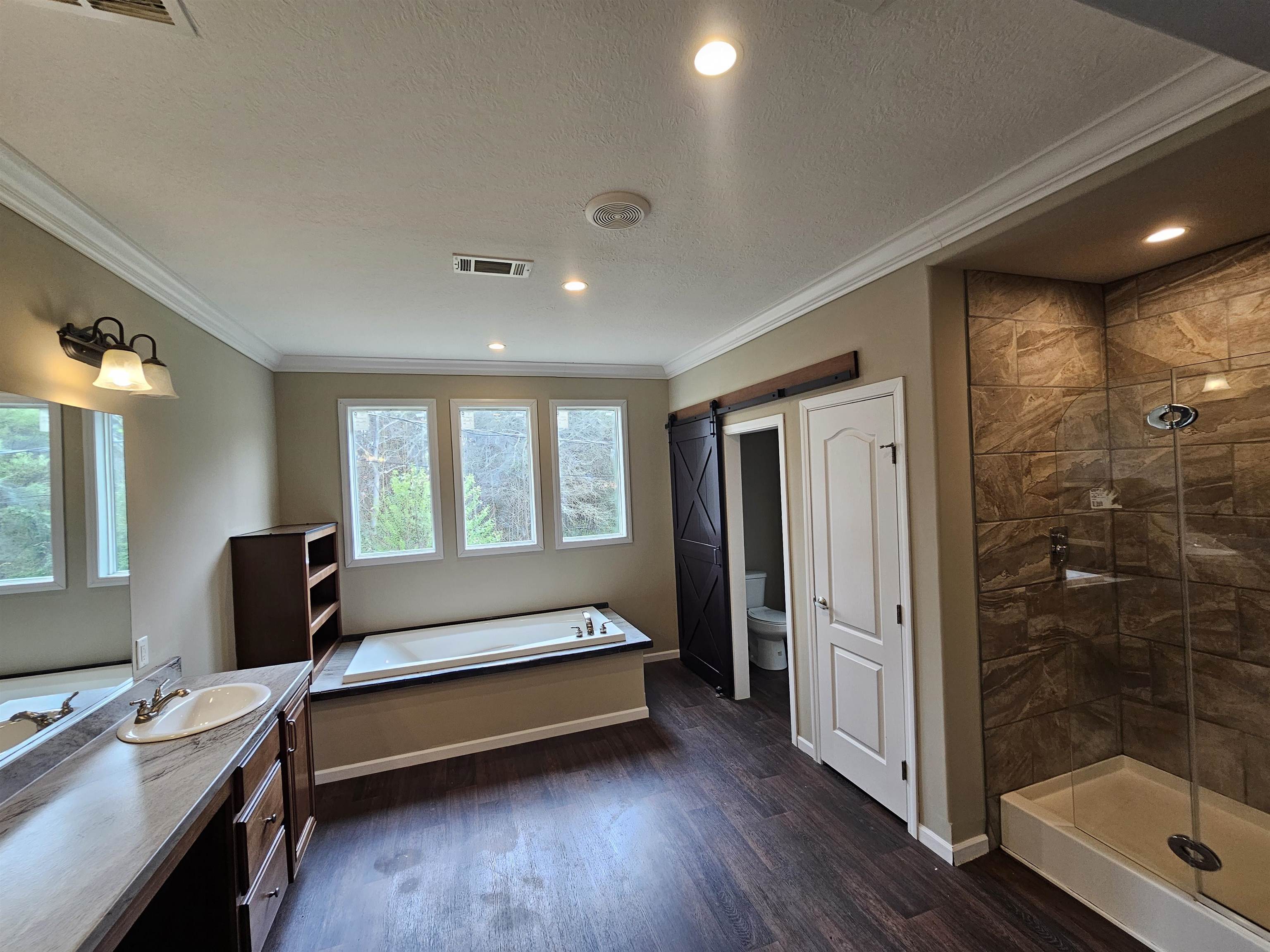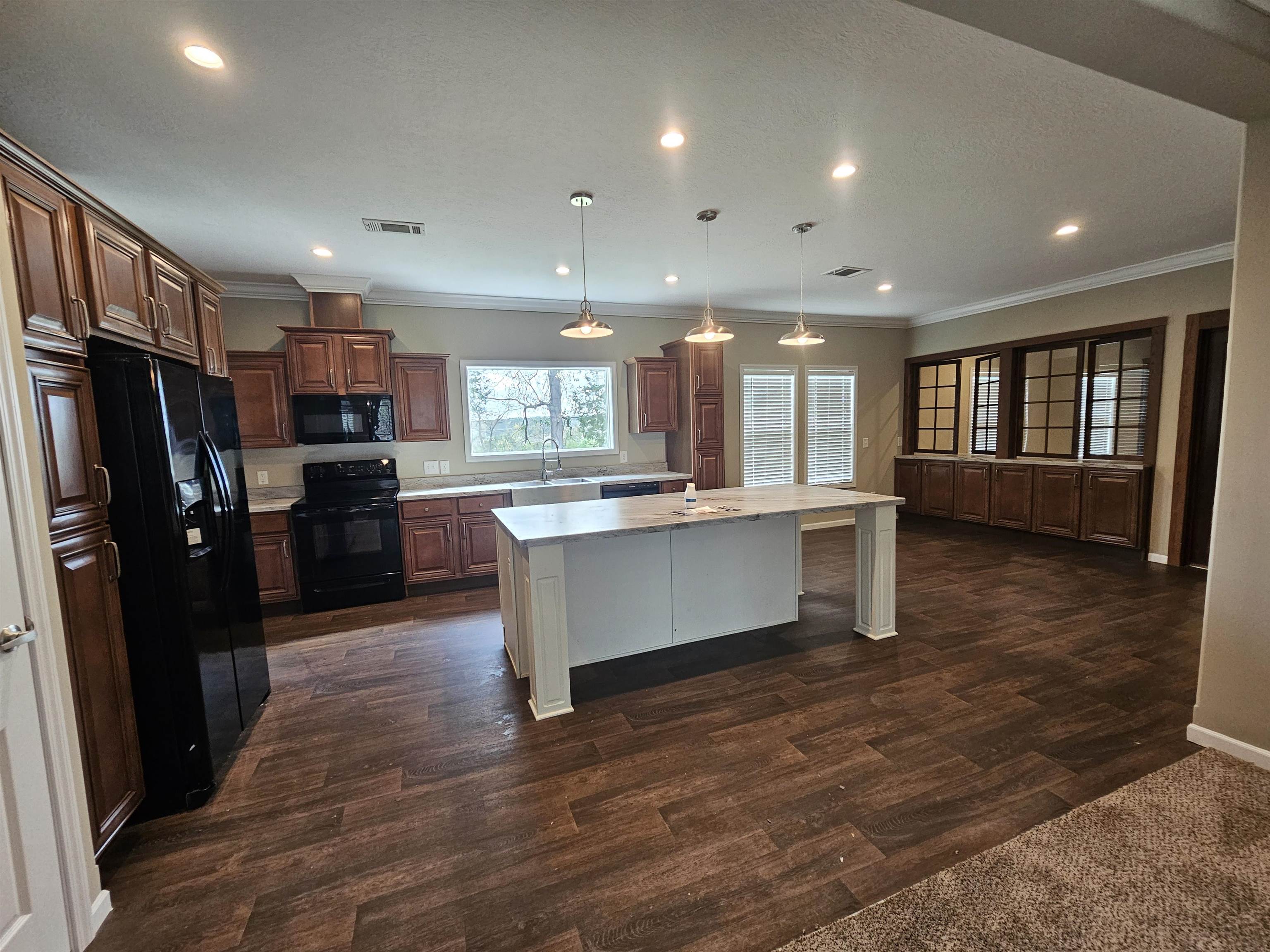 Gorgeous upgraded Southern Energy Manufactured home on 1.83 acres in the Daingerfield ISD. (Currently under remodel) This home features four bedrooms, two baths, two living areas, 2280 sqft, tape & textured walls, AC vents in ceiling, 9ft walls, huge kitchen island, pantry, farm house sink, upgraded kitchen cabinets, can lights, stem lights, thick crown molding, separate soaker tub & walk-in tile shower with rain head, dual vanities in both baths, barn doors, and lots of windows!! New pics when remodel is complete.