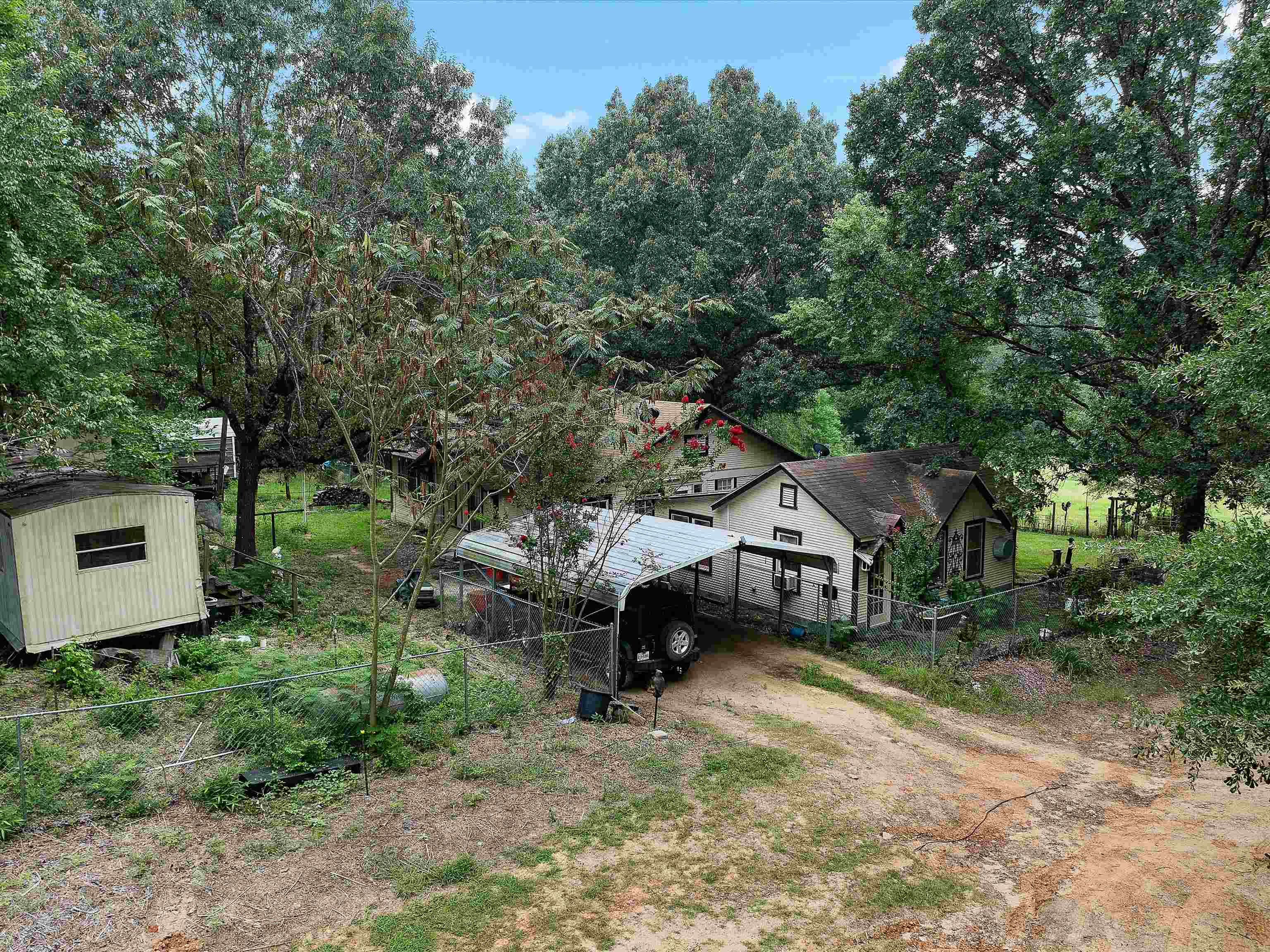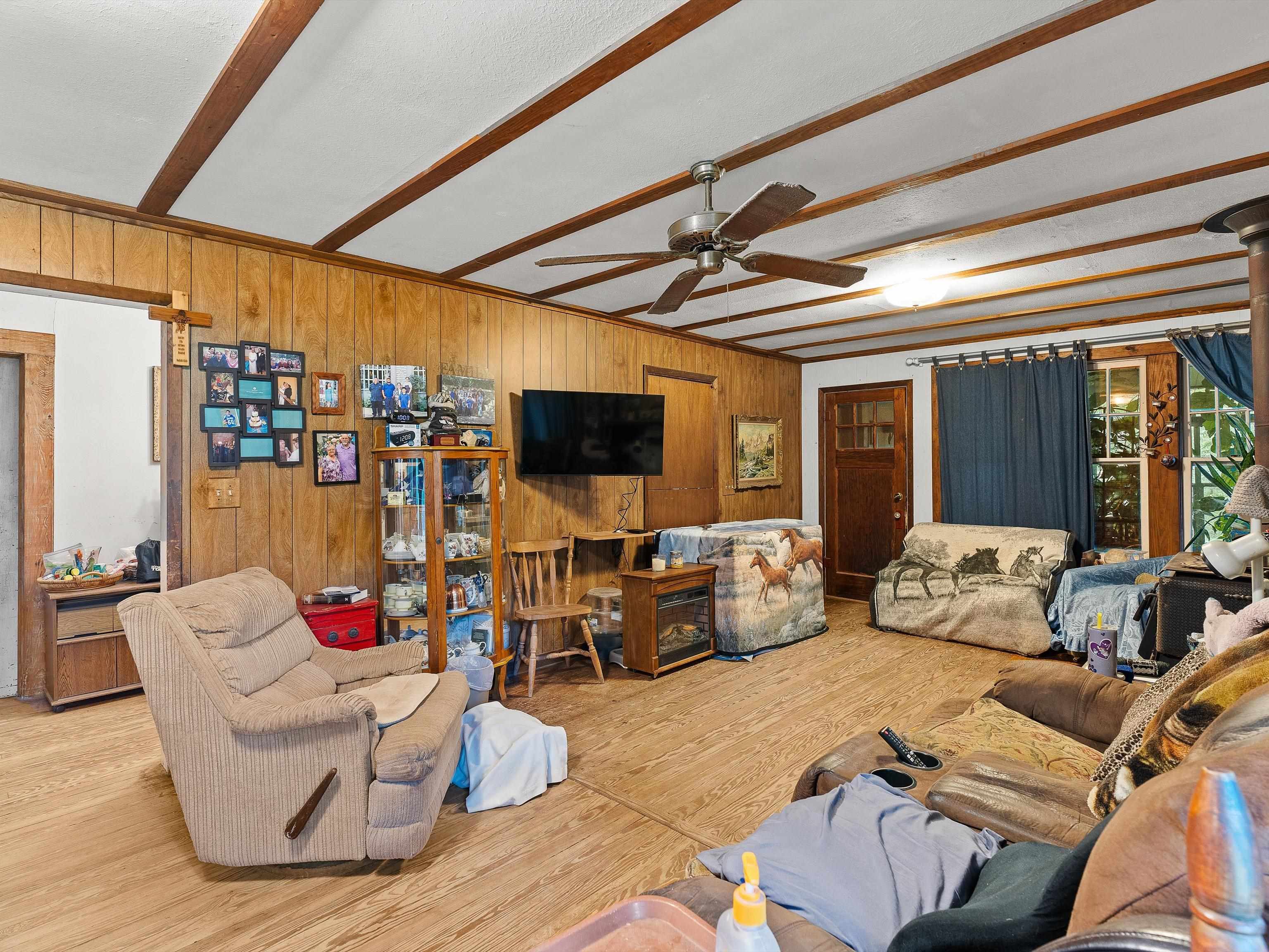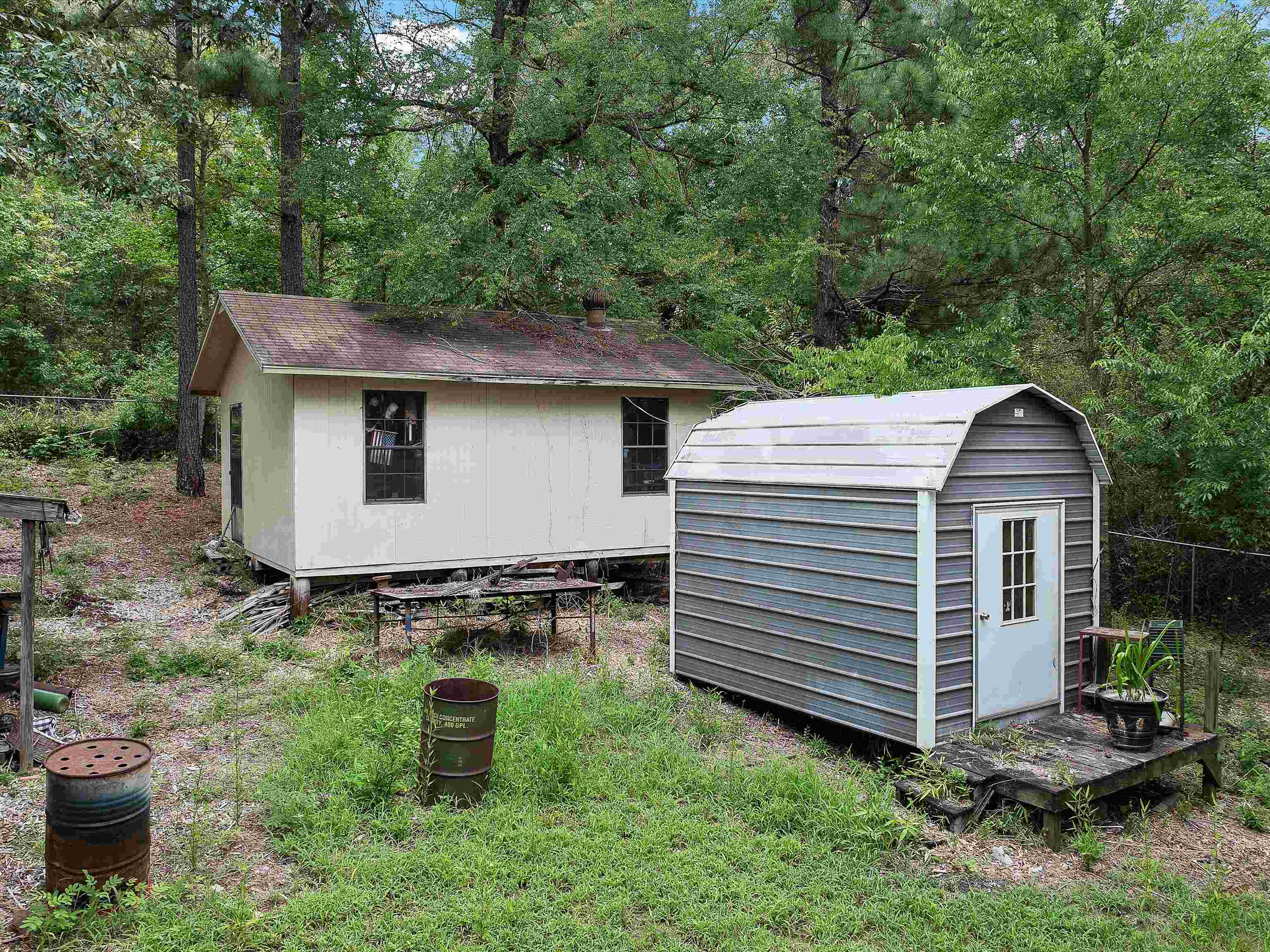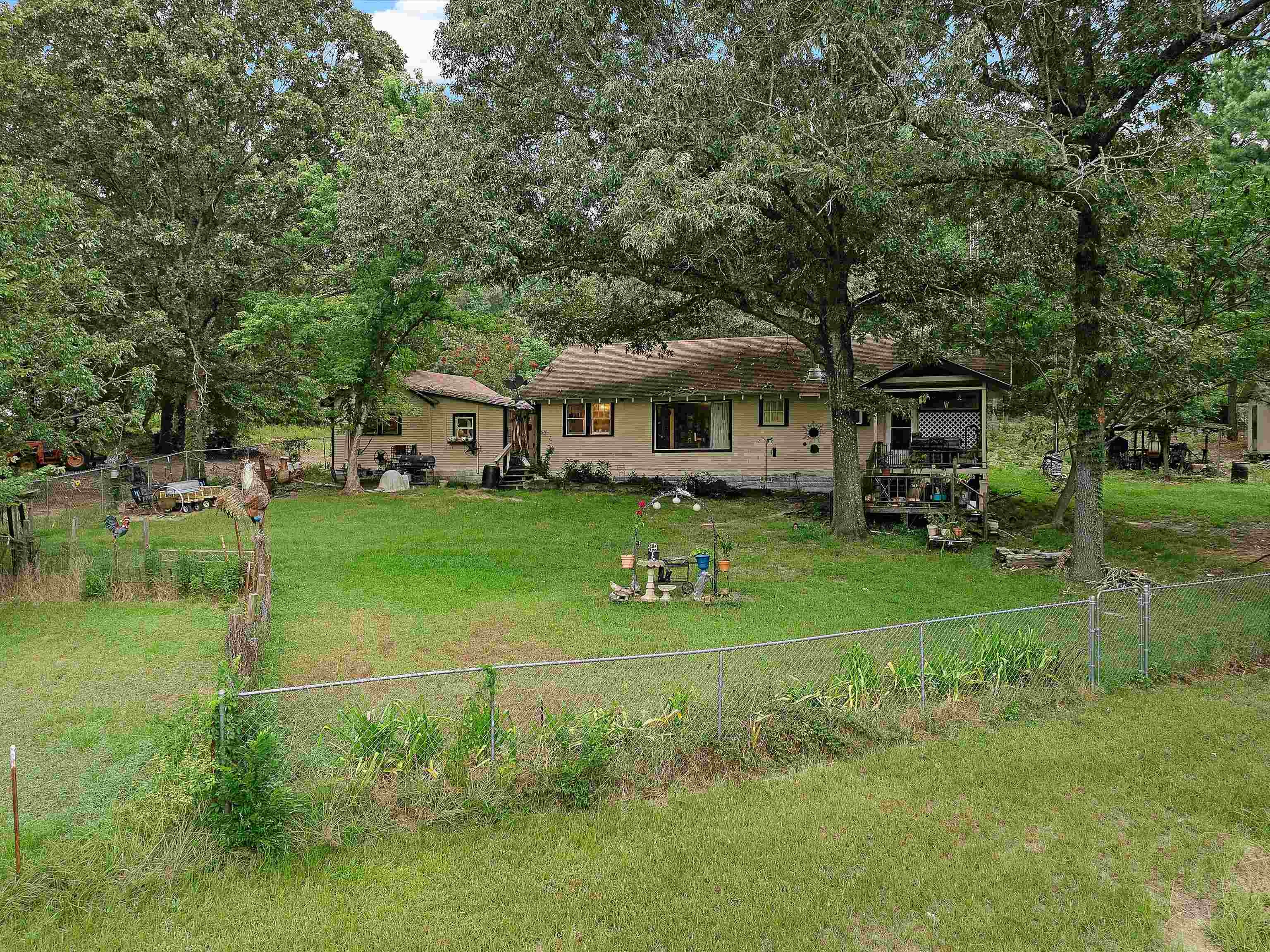 For Sale: 19.6 Acres Fenced Property with 2 Homes, Pond, Barns, and Outbuildings! Property Highlights: Total Acreage: 19.6 acres fully fenced Fenced Area: 1.5 acres secured with chain-link fencing Pond: Spring-fed pond with 5 natural springs and a 15x15 pond house Water Source: Private well Internet: Fiber optic available Timber & Land Use: Approximately 80% timber, 20% cleared (hay and yard) Pastures: 4 small fenced pastures suitable for horses Main House: Approx. 1,500 sq ft facing the pond 2 Bedrooms, 1 Full Bath Oak hardwood floors throughout Large wood-burning stove in living room Attic fan, utility room on back porch Double-walled construction Second House (Guest or Rental Potential): Approx. 1,000 sq ft 1 Bedroom, 1 Full Bath Oak hardwood floors and attic fan Faces the driveway, located in front of the main house Kitchen is plumbed and can easily be converted back Outbuildings & Extras: Storage trailer with bathroom setup (toilet needs to be installed) 20x20 workshop 2 Storage buildings (one with solar electric) Greenhouse with metal frame (needs some repairs) 3-stall barn in rear of property Old barn at front of property (needs demolition) Additional Notes: Property is being sold AS IS Yard art and original porch swing are not included (replacement swing will be provided) This property is ideal for those seeking privacy, self-sufficiency, and rural living with room for livestock or homesteading. Schedule a tour today!
