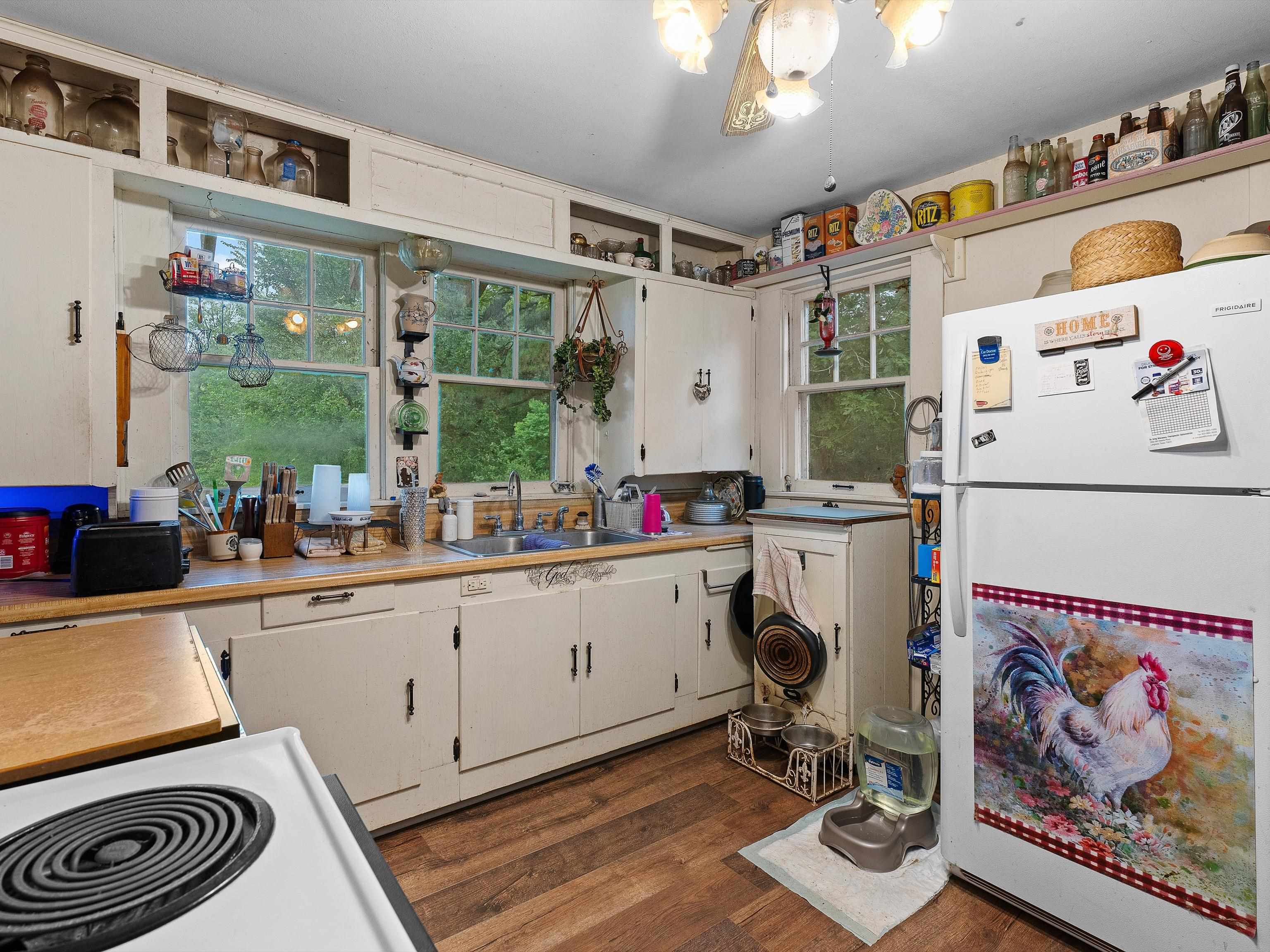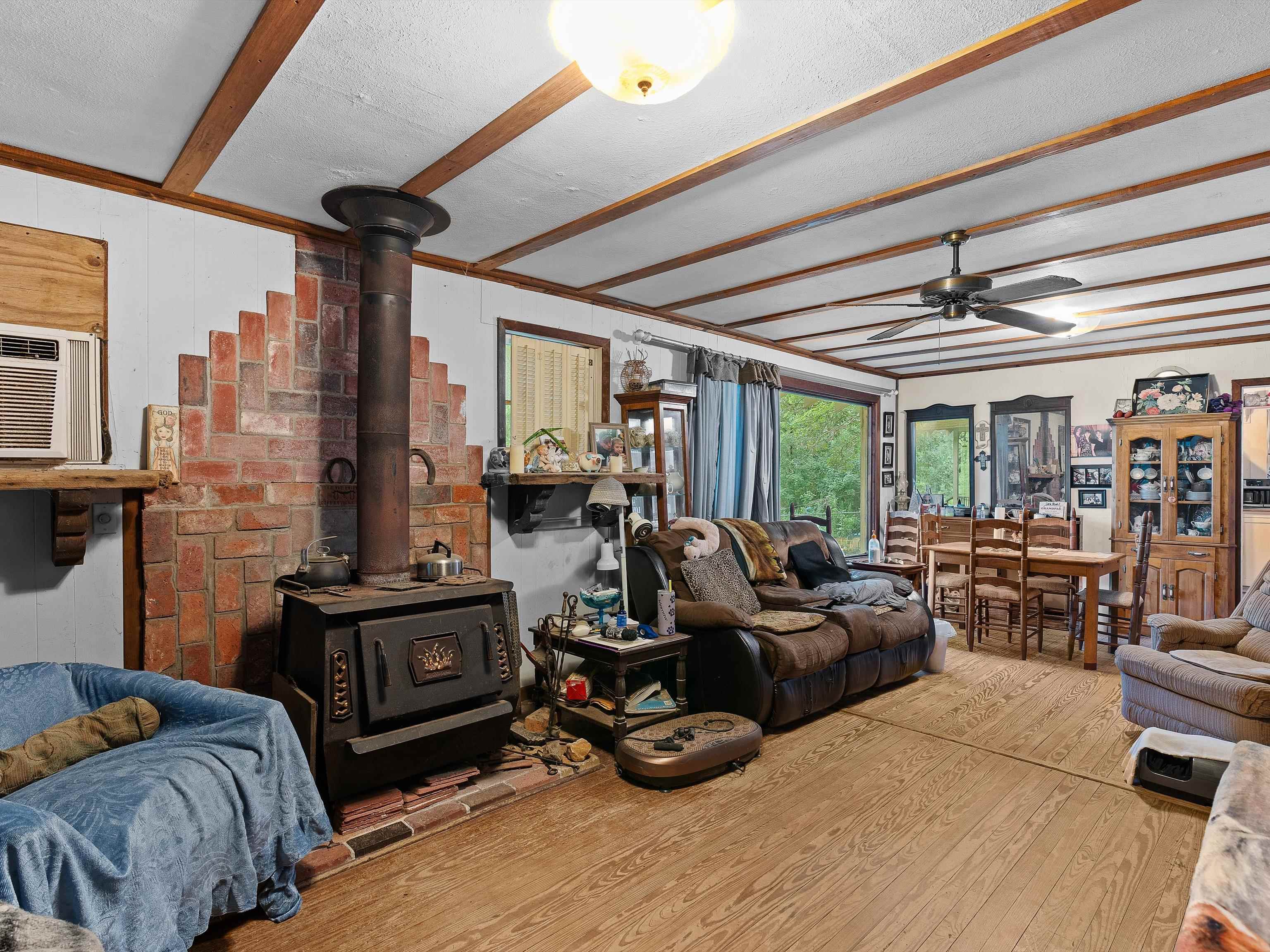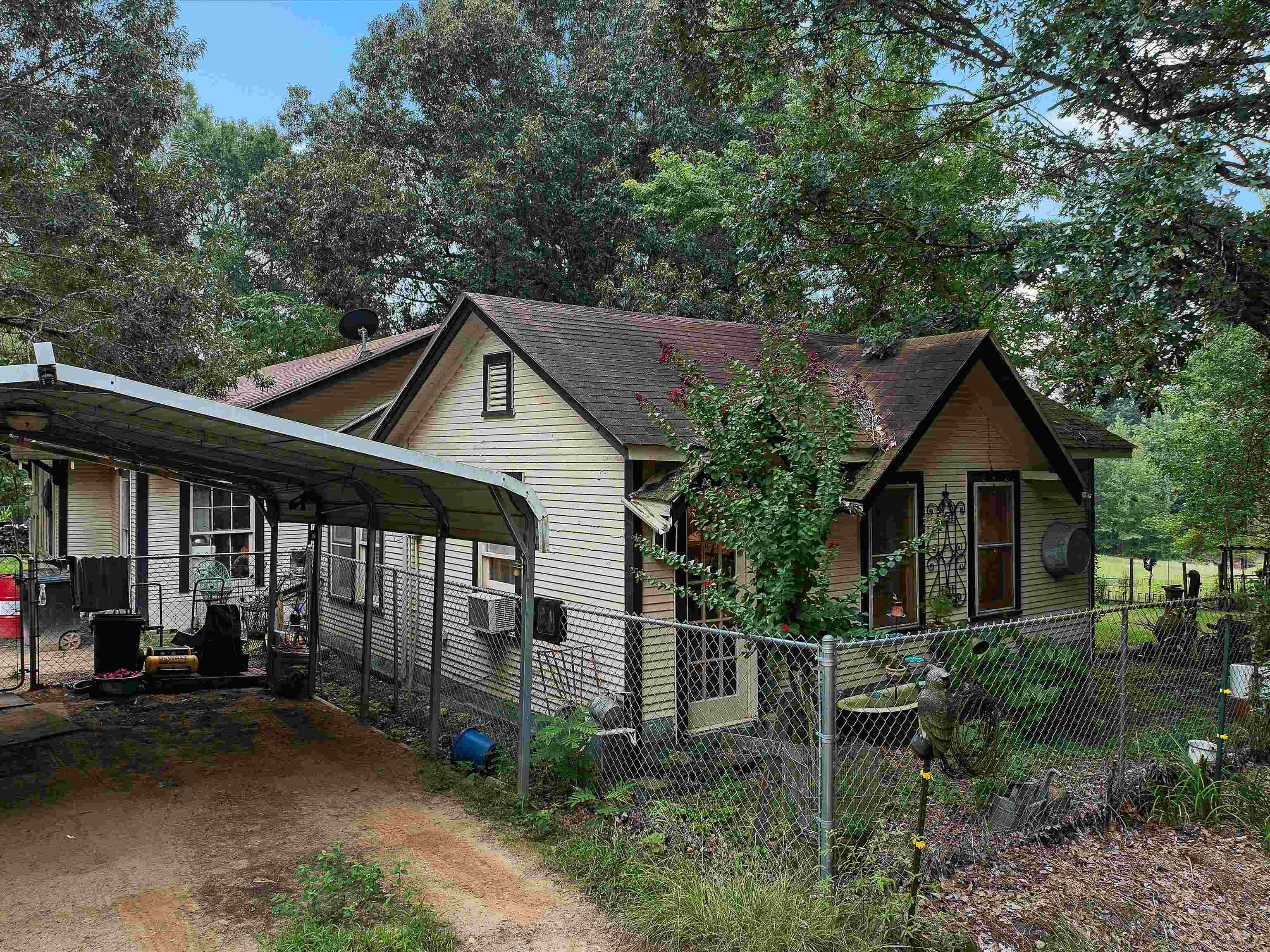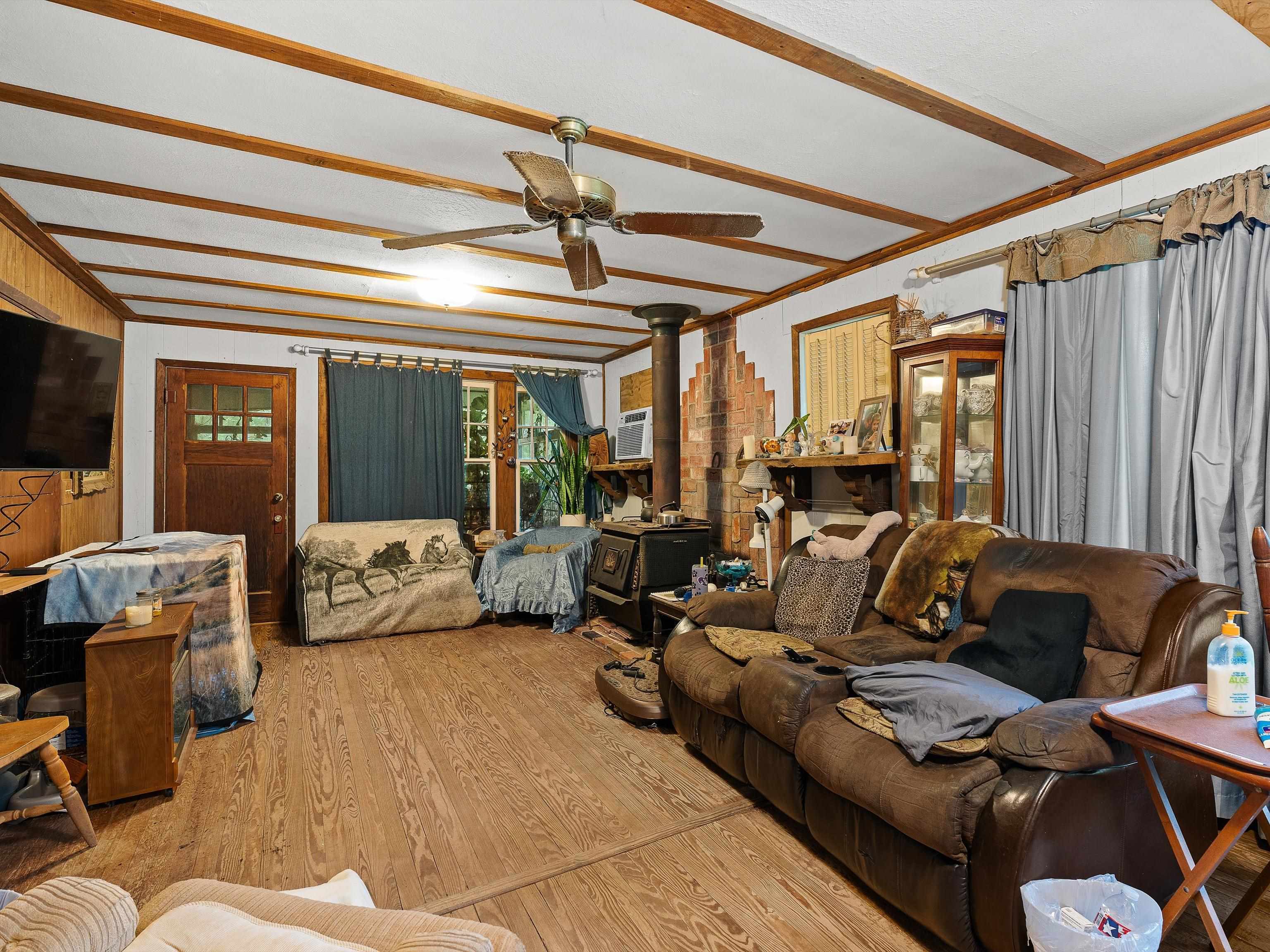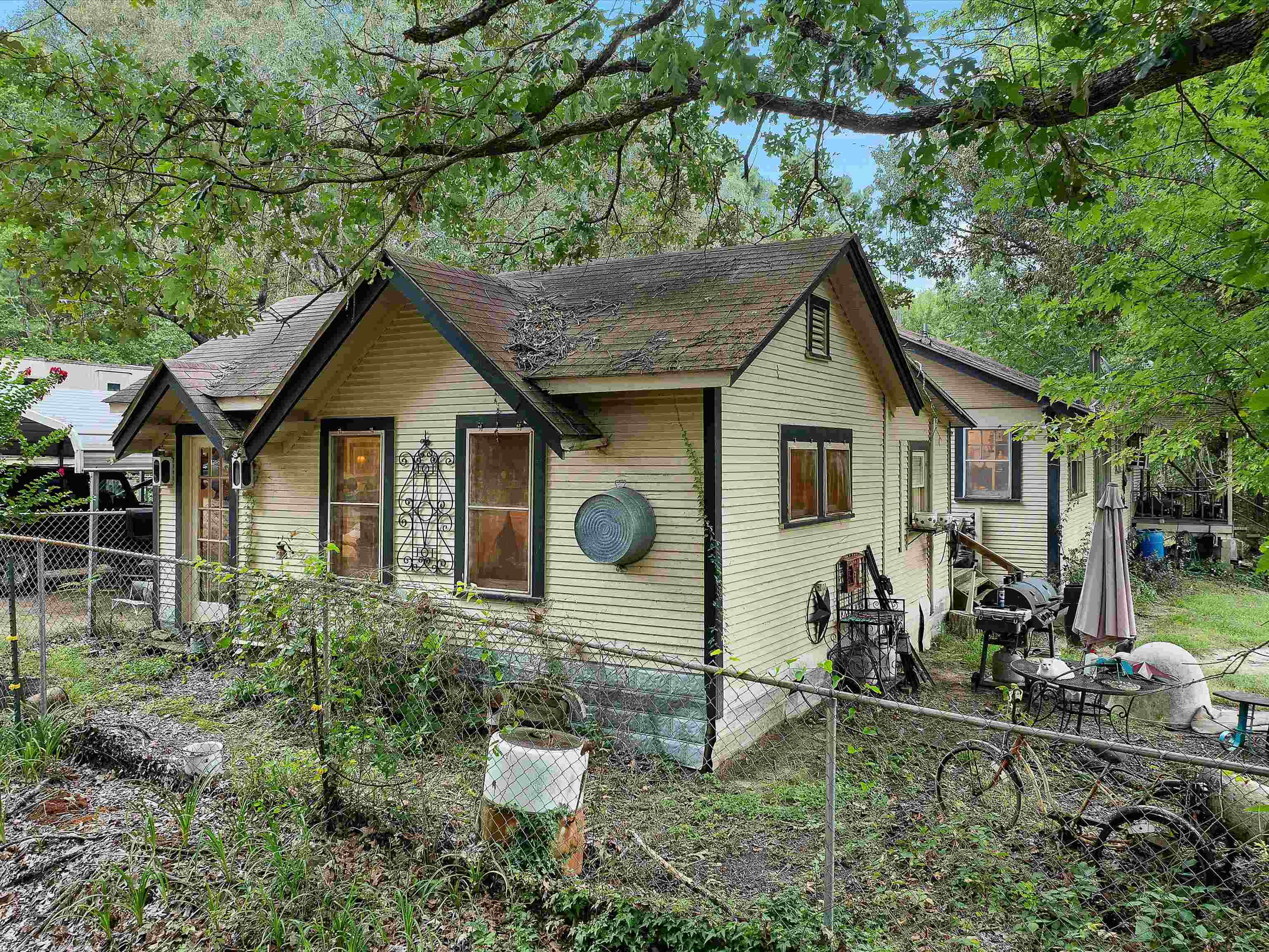 For Sale: 19.6 Acres Fenced Property with 2 Homes, Pond, Barns, and Outbuildings! Property Highlights: Total Acreage: 19.6 acres fully fenced Fenced Area: 1.5 acres secured with chain-link fencing Pond: Spring-fed pond with 5 natural springs and a 15x15 pond house Water Source: Private well Internet: Fiber optic available Timber & Land Use: Approximately 80% timber, 20% cleared (hay and yard) Pastures: 4 small fenced pastures suitable for horses Main House: Approx. 1,500 sq ft facing the pond 2 Bedrooms, 1 Full Bath Oak hardwood floors throughout Large wood-burning stove in living room Attic fan, utility room on back porch Double-walled construction Second House (Guest or Rental Potential): Approx. 1,000 sq ft 1 Bedroom, 1 Full Bath Oak hardwood floors and attic fan Faces the driveway, located in front of the main house Kitchen is plumbed and can easily be converted back Outbuildings & Extras: Storage trailer with bathroom setup (toilet needs to be installed) 20x20 workshop 2 Storage buildings (one with solar electric) Greenhouse with metal frame (needs some repairs) 3-stall barn in rear of property Old barn at front of property (needs demolition) Additional Notes: Property is being sold AS IS Yard art and original porch swing are not included (replacement swing will be provided) This property is ideal for those seeking privacy, self-sufficiency, and rural living with room for livestock or homesteading. Schedule a tour today!
