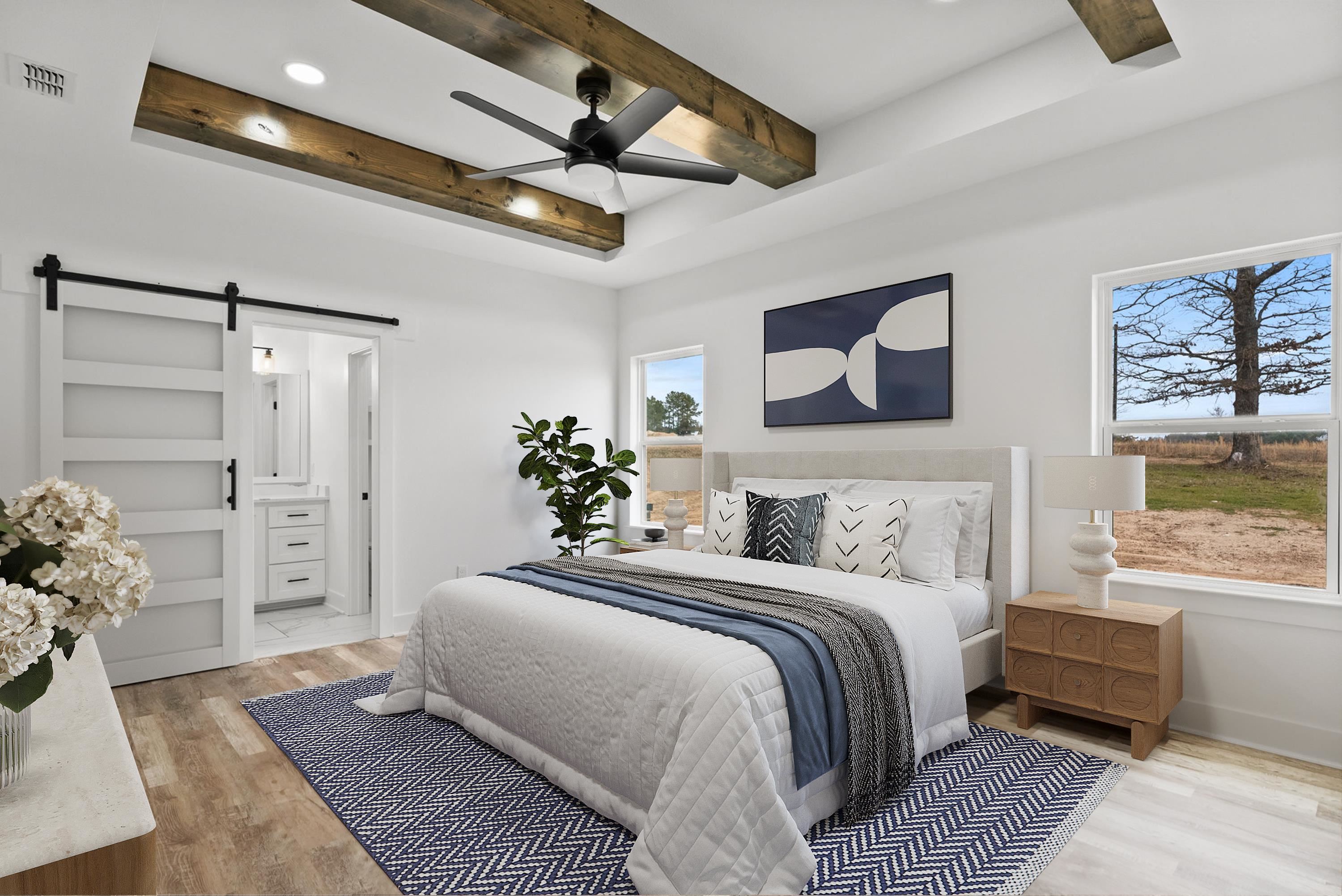 Come view thoughtfully built 3-bedroom, 2-bath home offers 1,665 square feet of comfortable, modern living on over 2 peaceful acres. Inside, the home feels light, open, and high end. Vaulted ceilings and generous windows fill the space with natural light, while the open-concept design creates an easy flow between the living room, kitchen, and dining area - perfect for gathering with family or enjoying a quiet evening at home. The kitchen is both beautiful and functional, featuring a large island for prep and conversation, quartz countertops, custom cabinetry, and durable vinyl plank flooring that carries throughout the main living spaces. The finishes are clean and timeless, creating a space that feels fresh now and for years to come. The primary suite offers a private retreat with plenty of room to relax, along with a well-appointed ensuite bath designed with comfort in mind. The additional bedrooms are spacious and versatile, ideal for guests, hobbies, or a home office. Bathrooms and the laundry area feature porcelain tile for durability and style, and the homes exterior offers curb appeal that fits naturally into its countryside setting. With over two acres to call your own, youll have space for gardens, outdoor entertaining, future projects, or simply enjoying the quiet beauty of East Texas living. Situated just a short drive away from Brownsboro, Athens or Tyler, you'll always be close to all the best entertainment and dining this area has to offer. Schedule your showing today!