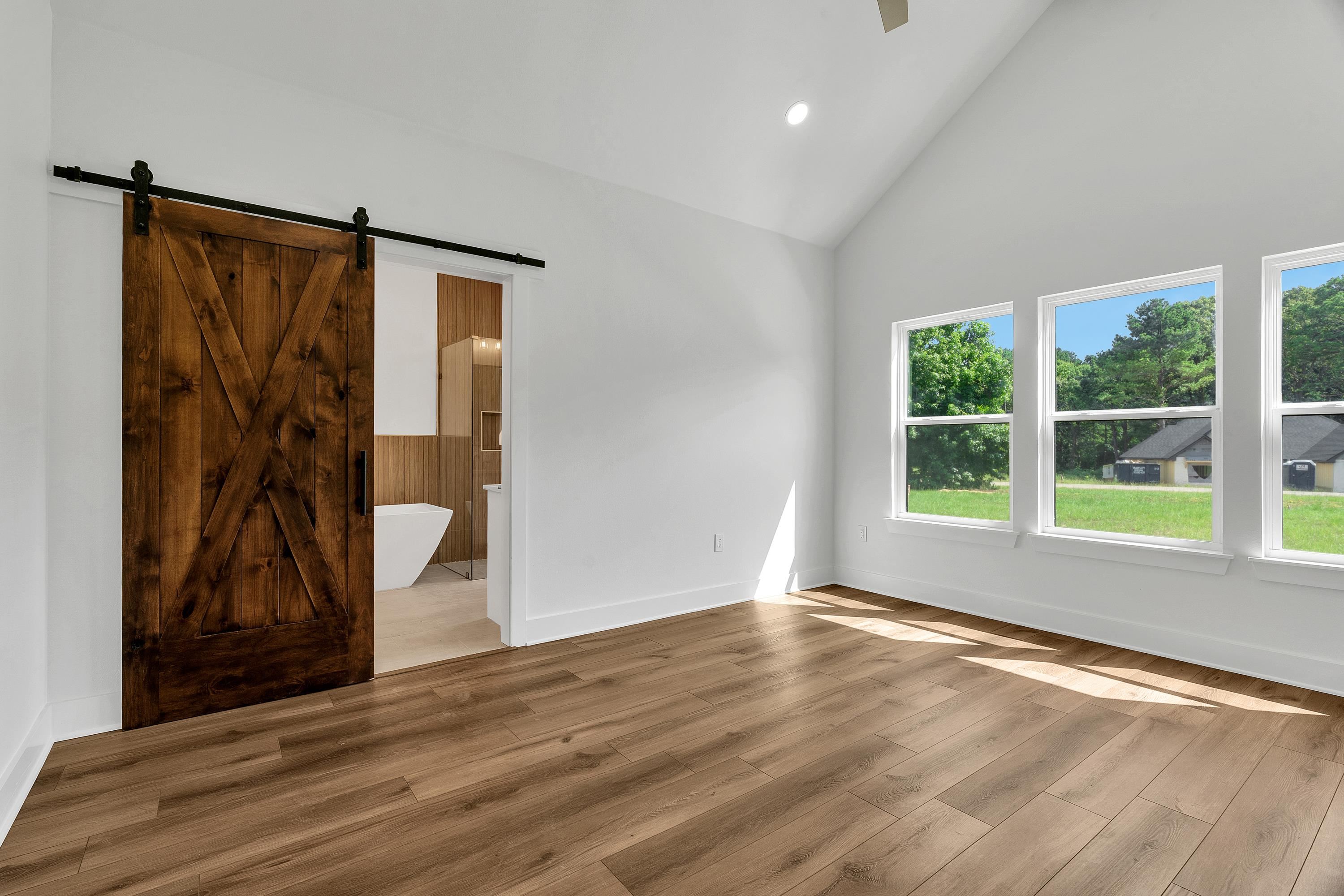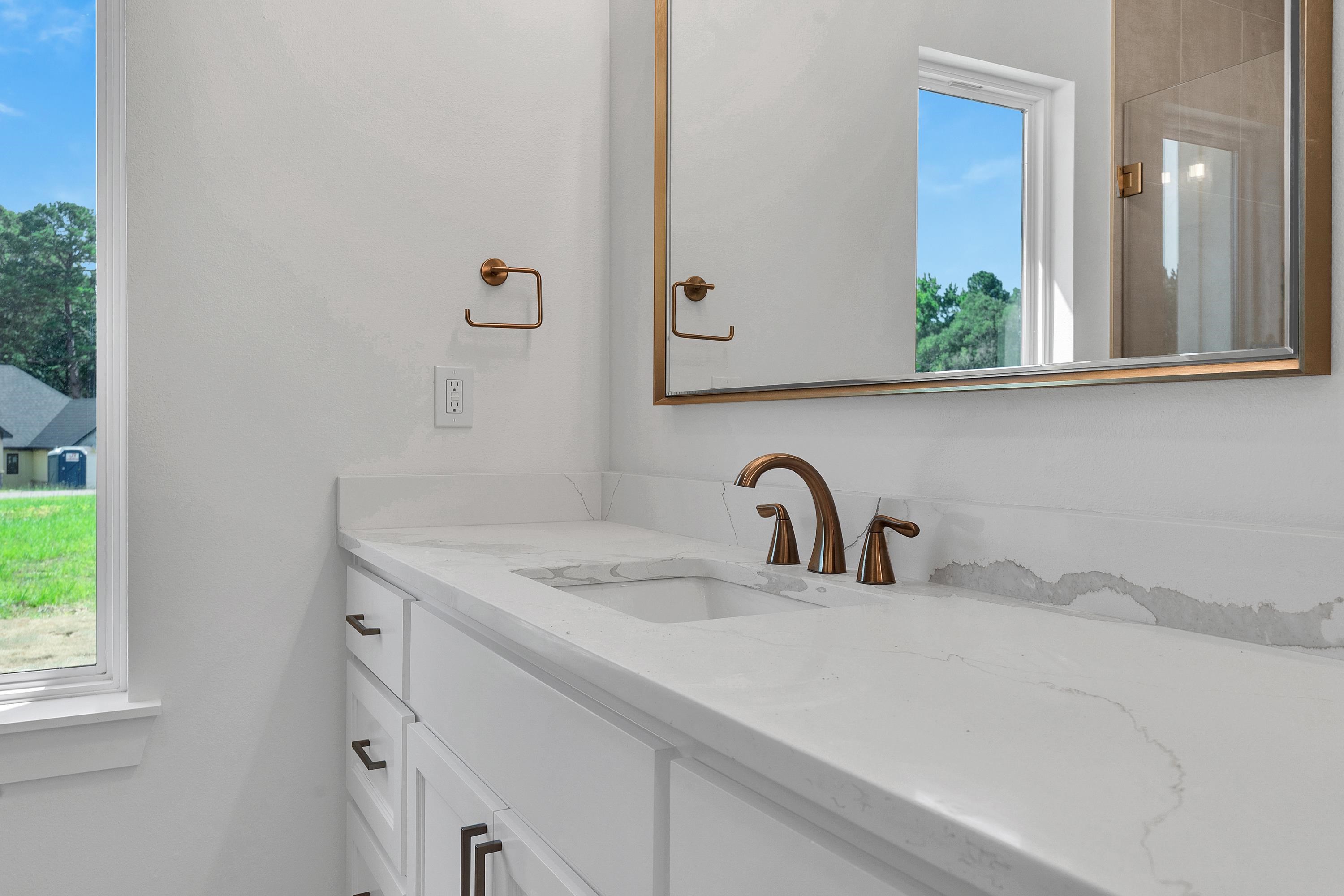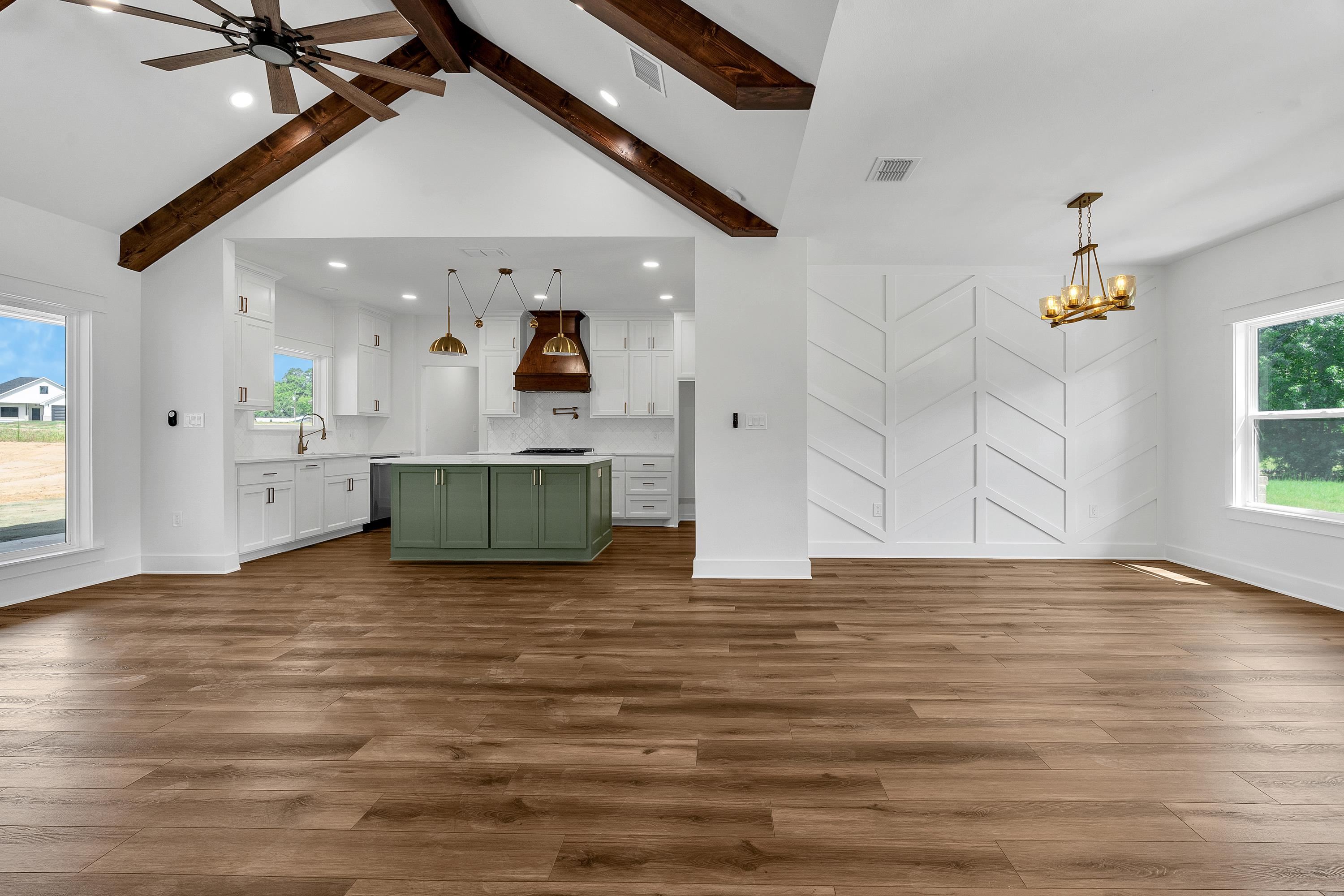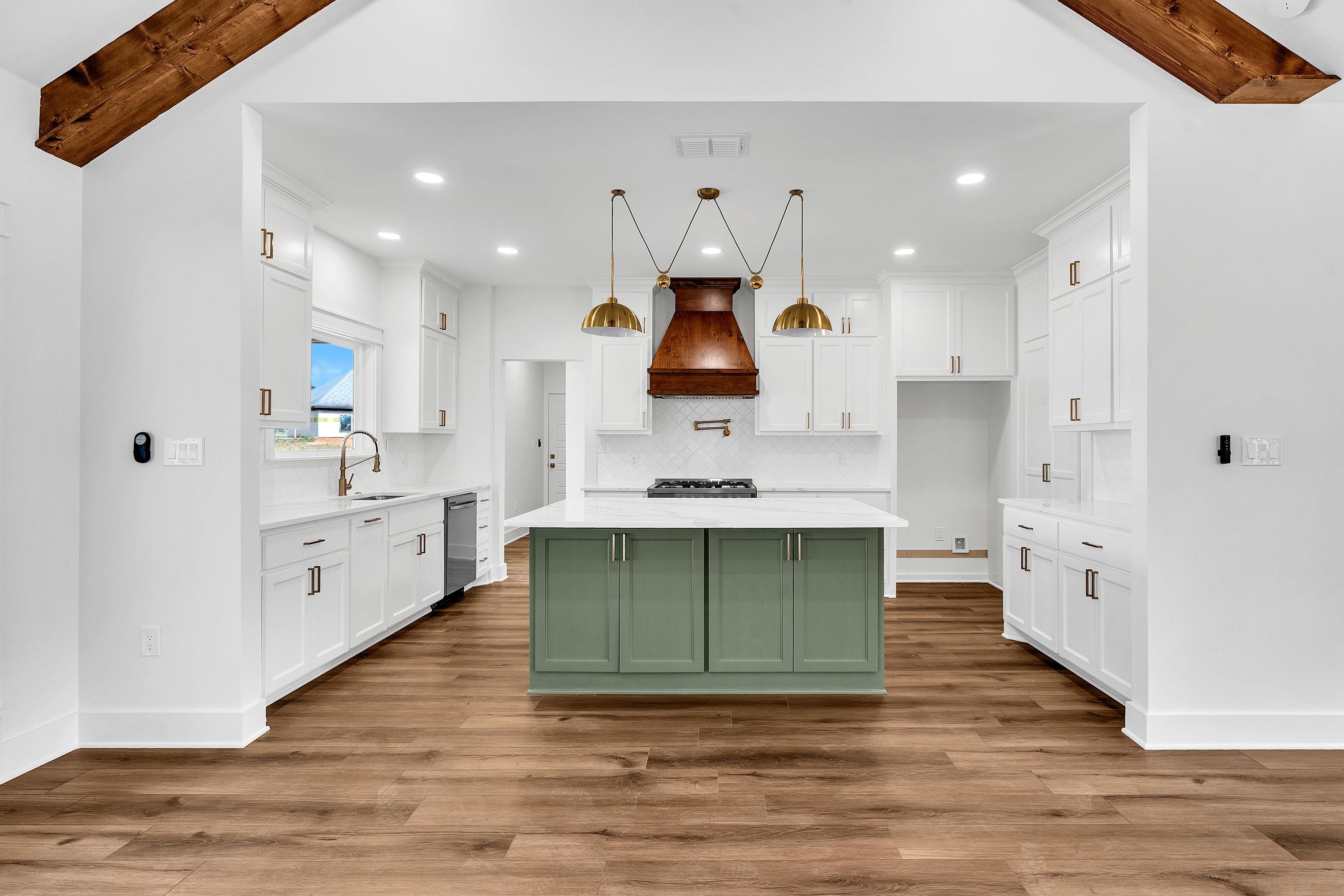 Welcome to this beautifully crafted new construction home located in one of Tatums newest subdivisions, the desirable Meadows Subdivision. Situated on a full 1-acre lot, this property offers the perfect balance of modern design and country-style living with the convenience of nearby town amenities. This 4-bedroom, 2.5-bath home features 2,126 square feet of thoughtfully designed living space with attention to detail throughout. The home is equipped with gas lines already in place, allowing for additional gas appliances. The kitchen currently includes a brand new Cosmo gas range with five sealed burners and a convenient wall-mounted pot filler, a standout feature for anyone who enjoys cooking. Step inside to soaring ceilings, warm wood accents, and abundant natural light. The open-concept living area features wood beam ceilings, custom built-ins, and a sleek fireplace that creates a welcoming space for entertaining or everyday living. The chefs kitchen is the heart of the home, highlighted by a bold green island with granite countertops, custom cabinetry, designer lighting, a hidden pantry, and a wood-accented vent hood. The kitchen flows seamlessly into the dining area, making hosting and gathering effortless. The primary suite offers a private retreat with vaulted ceilings, a sliding barn door, and a spa-inspired ensuite bath. The bathroom features a soaking tub, a glass-enclosed shower with a rainfall feature, dual vanities, and a spacious custom closet. Three additional bedrooms provide flexibility for guests, a home office, or creative space, all finished with the same high-quality details found throughout the home. Enjoy outdoor living from the covered back patio with dual ceiling fans, ideal for relaxing evenings or weekend gatherings. With modern finishes, thoughtful upgrades, and space to enjoy the outdoors, this home delivers both comfort and style in Tatum ISD. Schedule your private showing today and experience everything this exceptional new construction home has to offer.