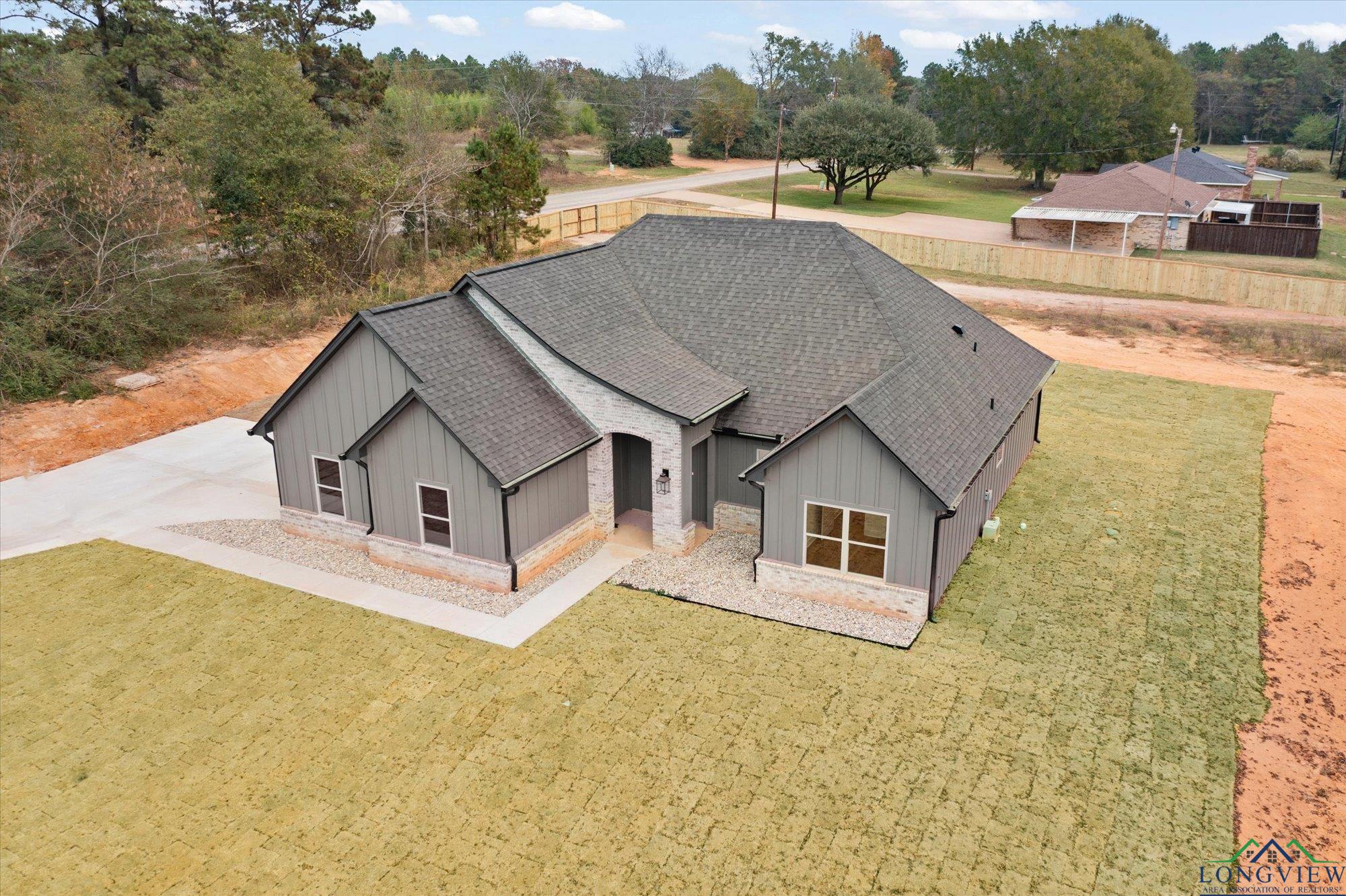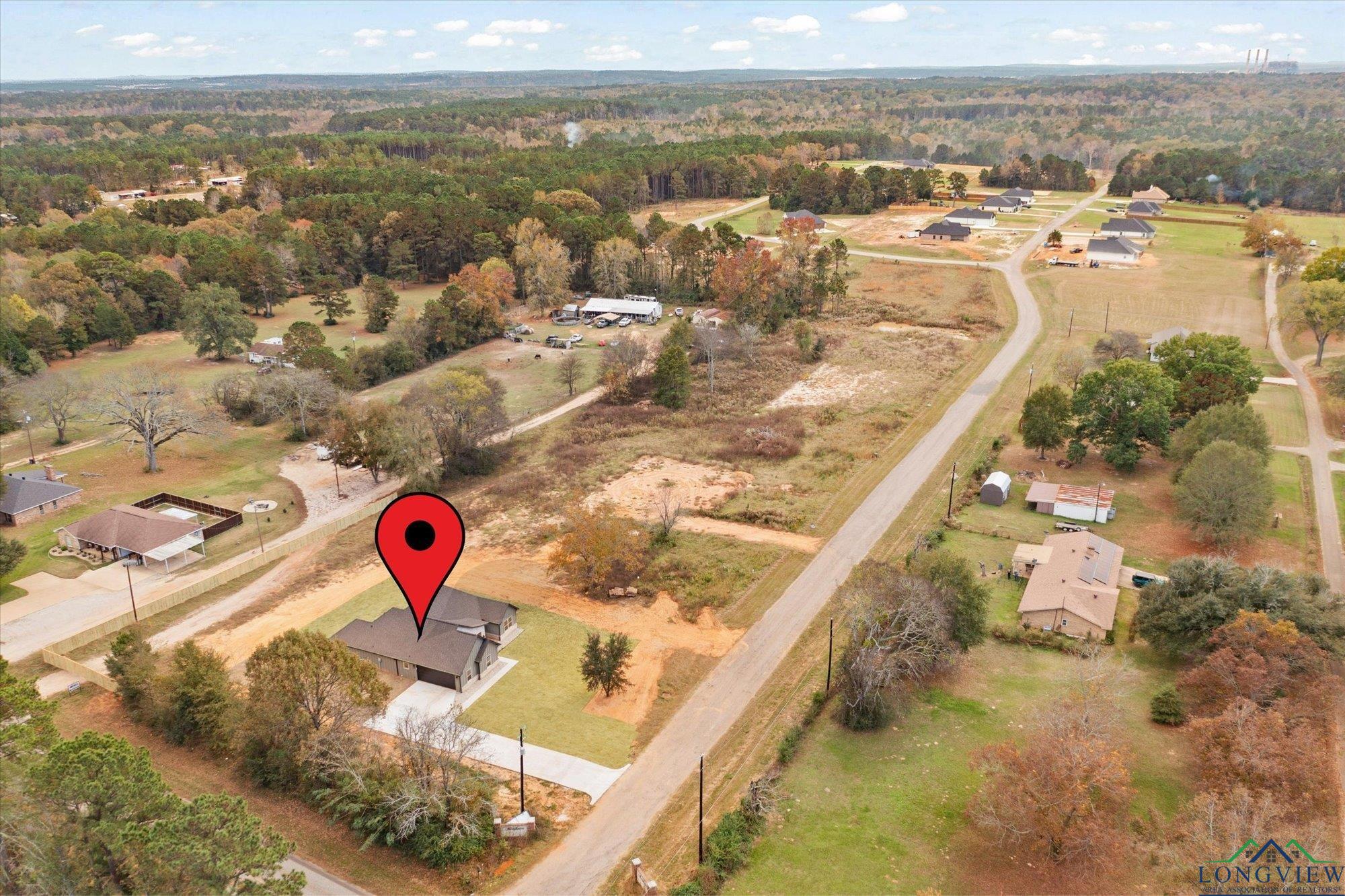 Stunning new construction on a full acre in highly desired Tatum ISD. Enjoy peaceful country living with an easy drive to both Longview and Tyler. This beautifully designed three-bedroom, two-bath home is built by Homes by Noble with designer selections curated by T & P Homes and Interiors. The split-bedroom layout and open living concept create an ideal modern flow. The private primary suite features a spa-inspired wet room, double vanity, private toilet room, and a spacious walk-in closet. Additional highlights include 9-ft ceilings throughout, a welcoming covered front porch, and a large covered back patio. With one acre of usable land, theres ample space for a shop, garden, or future pool. A perfect blend of style, comfort, and country charm.