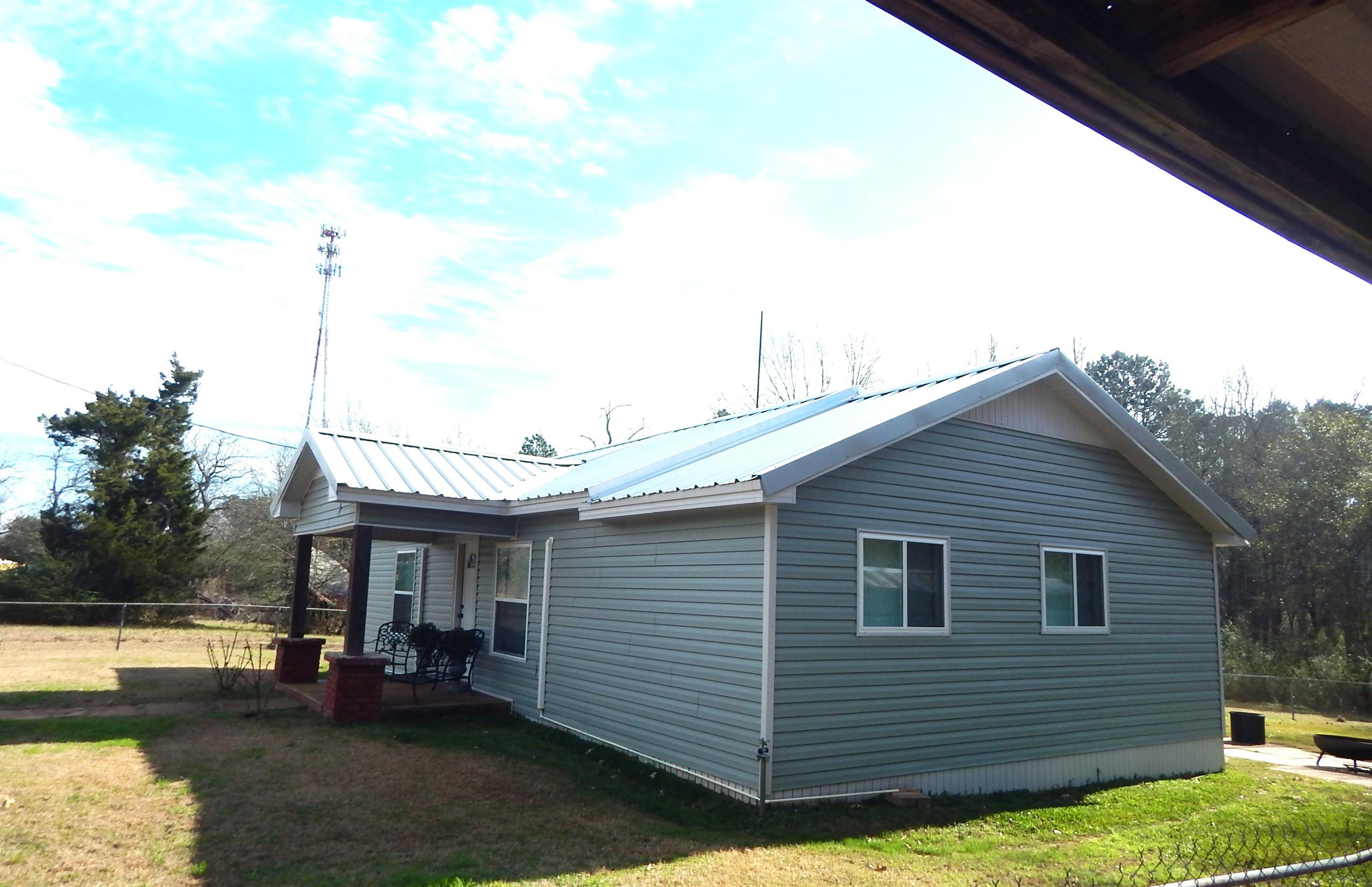 Charming farmhouse situated on 8.747 beautiful acres with property on prime Hwy 64 frontage. This adorable 1,200 sq ft home has been thoughtfully updated with new windows, metal roof, siding, and a remodeled interior. Interior features include butcher block countertops, vinyl plank flooring, and natural colors throughout. The primary bath offers a clawfoot tub with double sinks, adding timeless farmhouse charm. The home is efficiently heated and cooled with zoned mini-split units. The large primary bedroom closet is at this time being used as a 3rd bedroom for small children Enjoy morning coffee on the front porch or entertaining in the backyard. The homesite includes a fenced yard for convenience and security, along with a chicken coop, carport, and additional workshop space. The land is highlighted by stunning mature oak trees, mostly wooded acreage, and select open areas with a creekperfect for enjoying nature. A metal barn/workshop with its own electric meter provides excellent versatility. The property also features an RV hookup with water, electric, and septic, complete with separate water and electric metersideal for guests, rental potential, or future expansion. A rare opportunity combining charm, functionality, and acreage in a location convenient to both Tyler and Henderson.