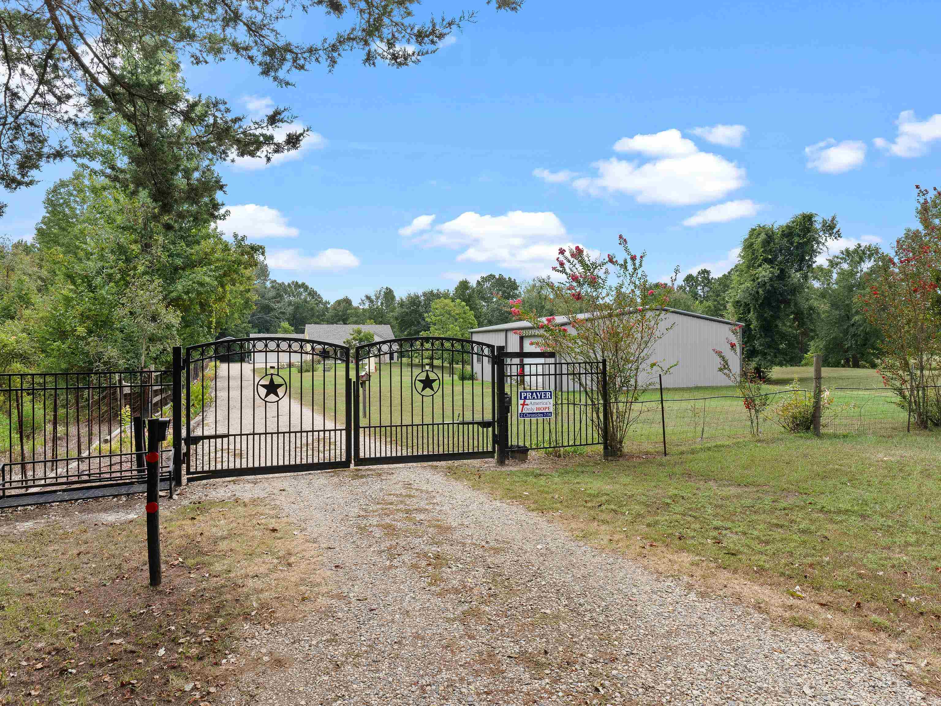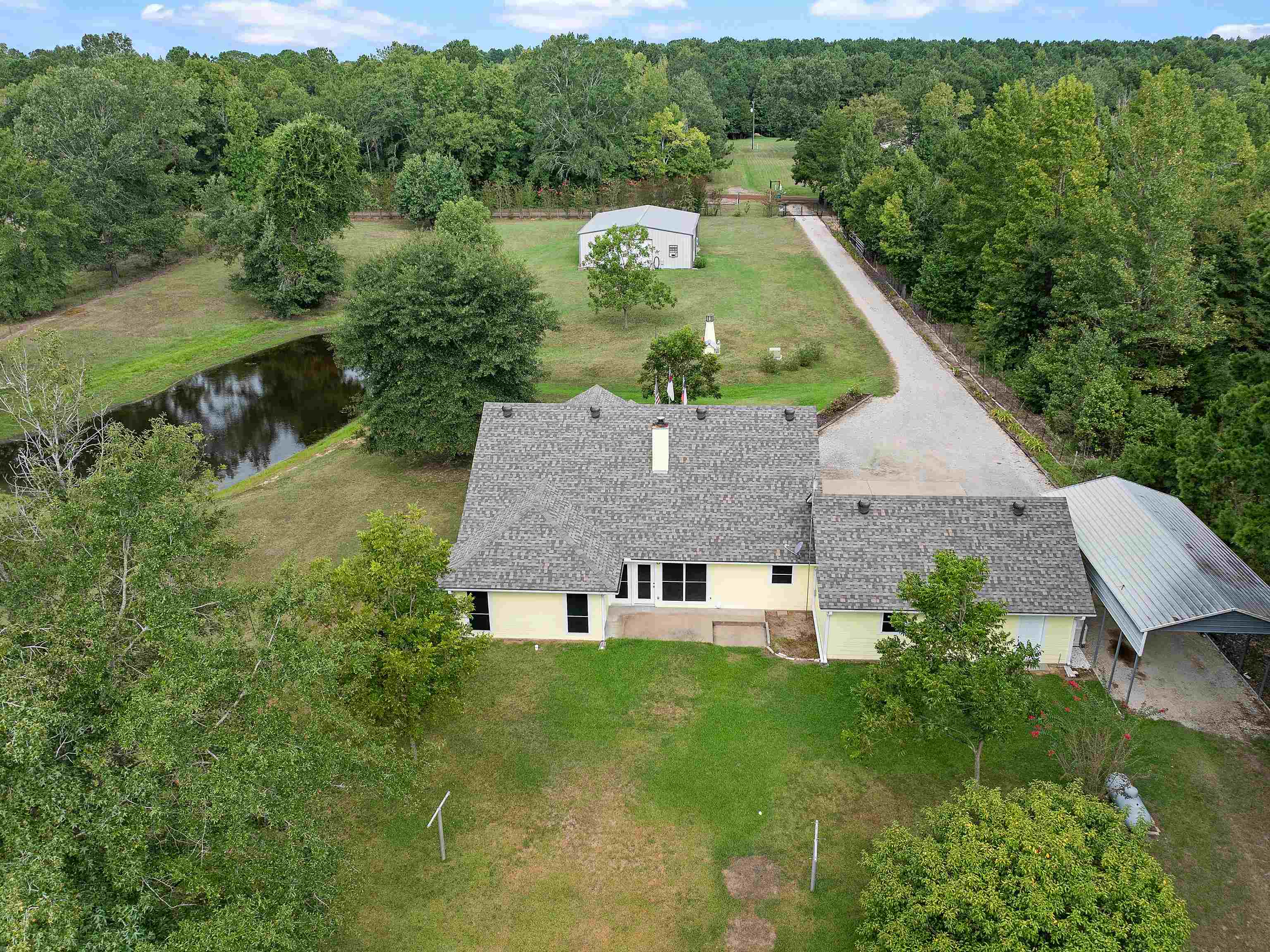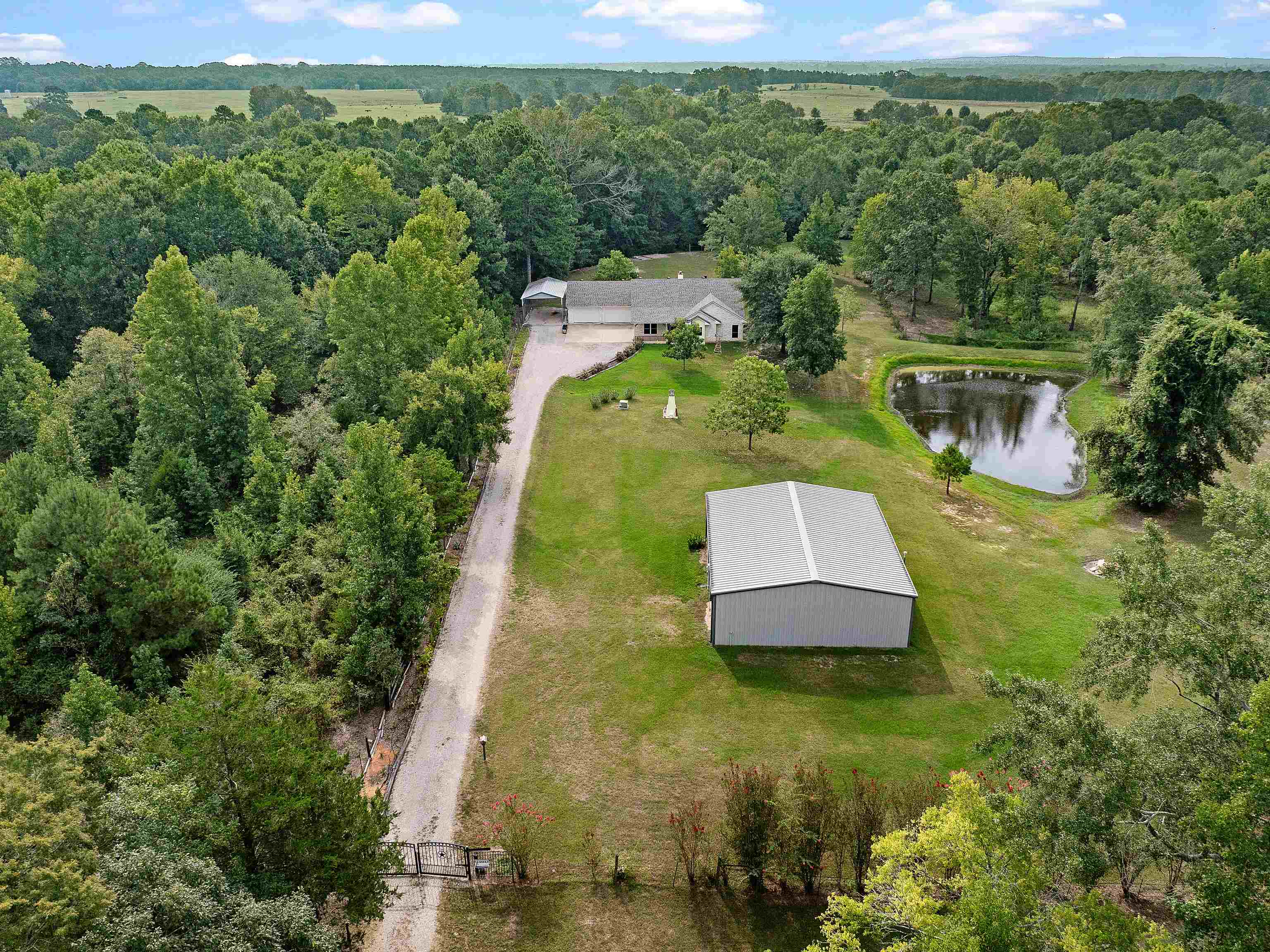 If you are in the market for peace, land, pond, and a meticulous home and shop then you have landed on the right spot! 3/2 home resting on 10 acres with bonus room. Here are some of the numerous details-, new roof 2024, all wheel chair accessible, RV cover with power, private well, reverse osmosis water filter, 250 gallon propane tank (owned), whole home generac, new floors 2025, new exterior paint 2025, 5 pecan trees, all walls 2x6, R22 insulation, inside ac replaced in 2022, implement shed, 2000 sq ft shop, insulated, power, 10 inches blown in attic, gutters with leaf guard, automatic gate with openers and push button, 2.5 car garage all insulated, and the list goes on. Better run to this one or she will be gone!