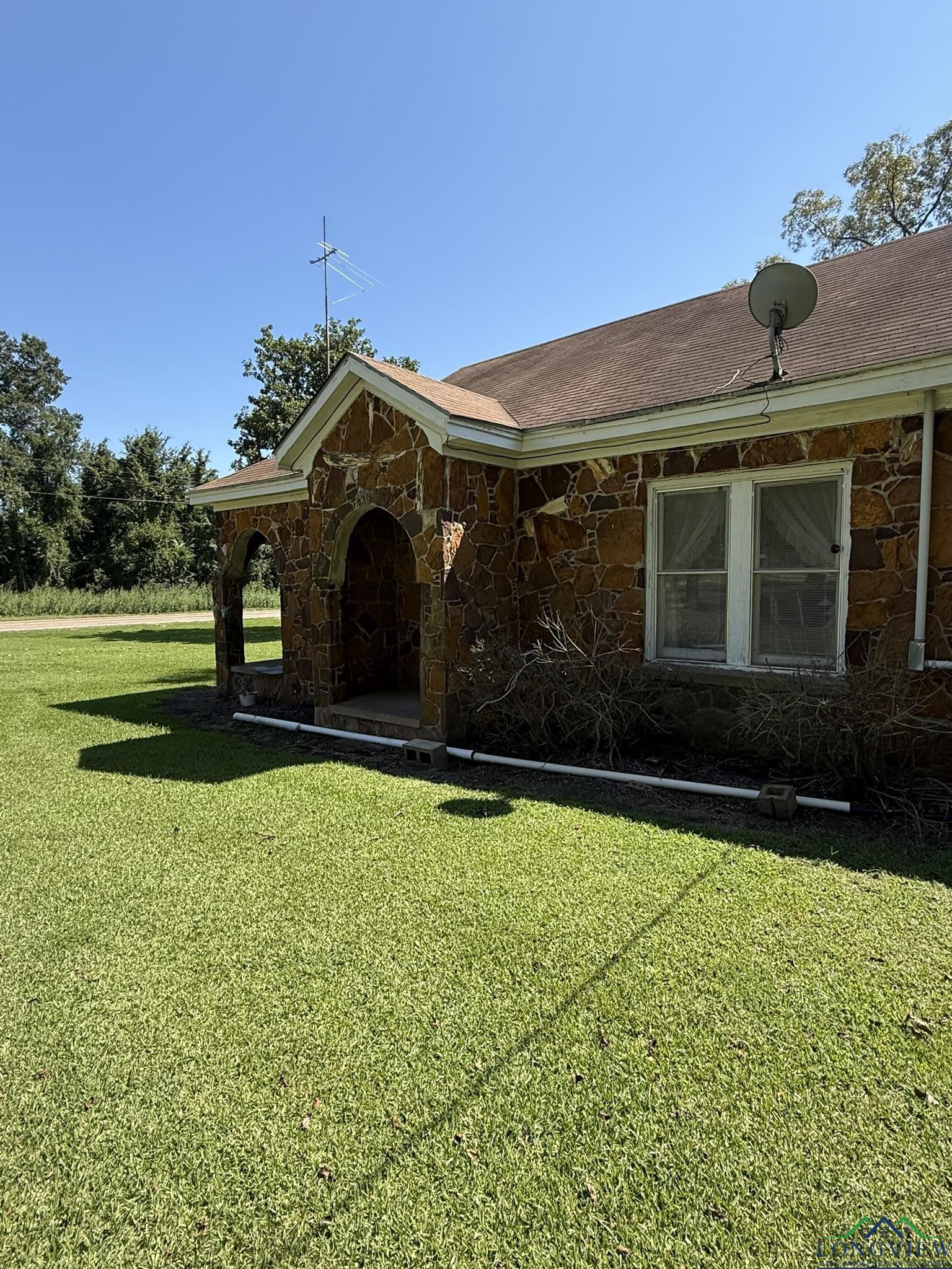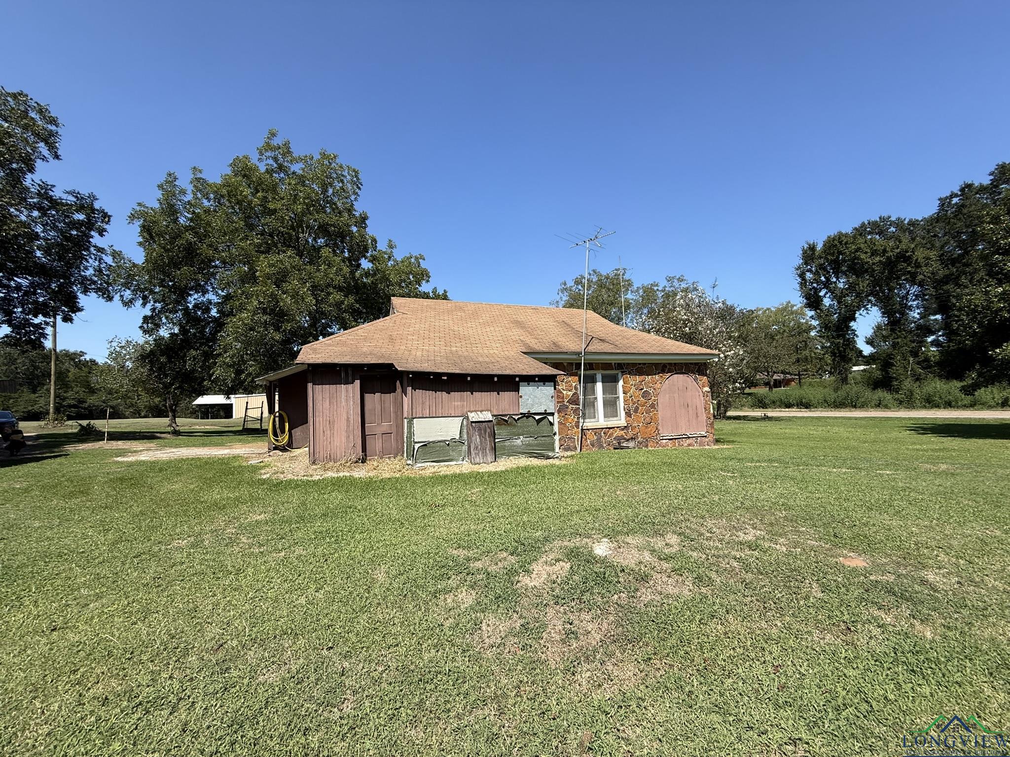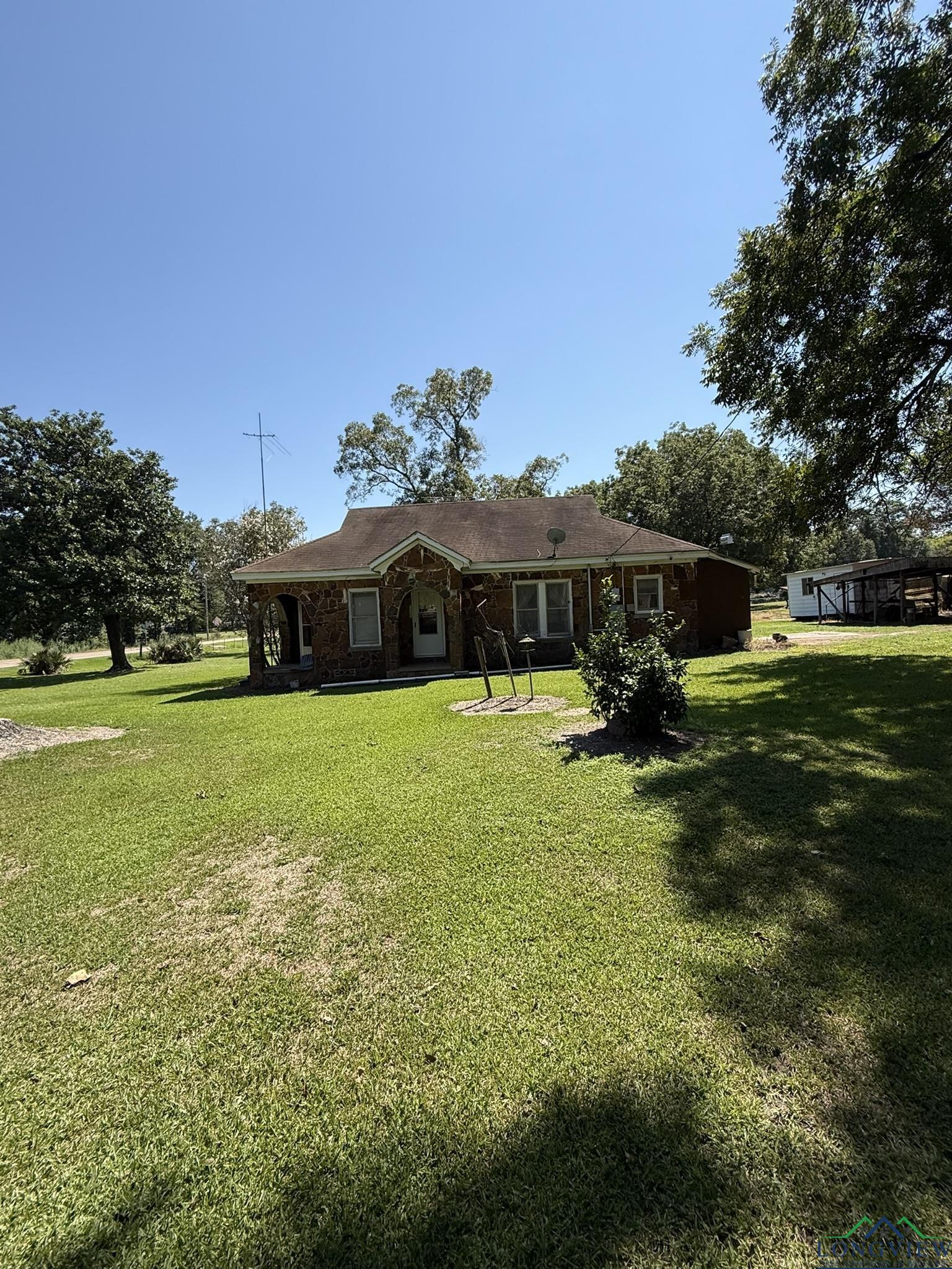 Cute 2 bedroom. 1 bath rock house on 5.303 acres! The land is beautiful has a storm shelter, some barns and a storage building. Has road frontage on Gage rd also! Lots of pecan trees (16) , peach tree, 2 pear trees, 1 black walnut tree, magnolia tree and a fig tree. Come see this cute house!