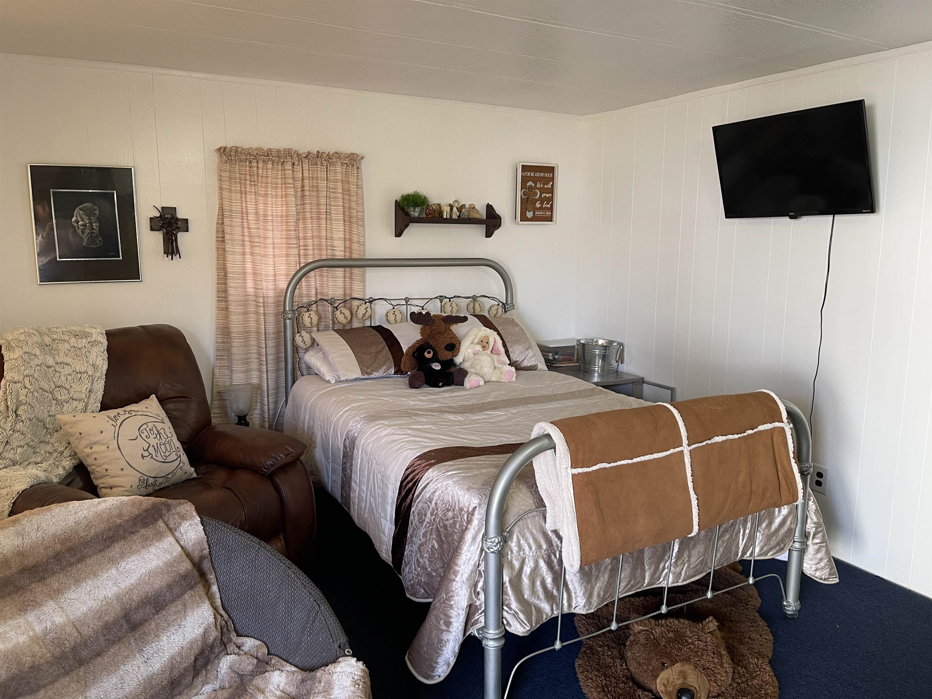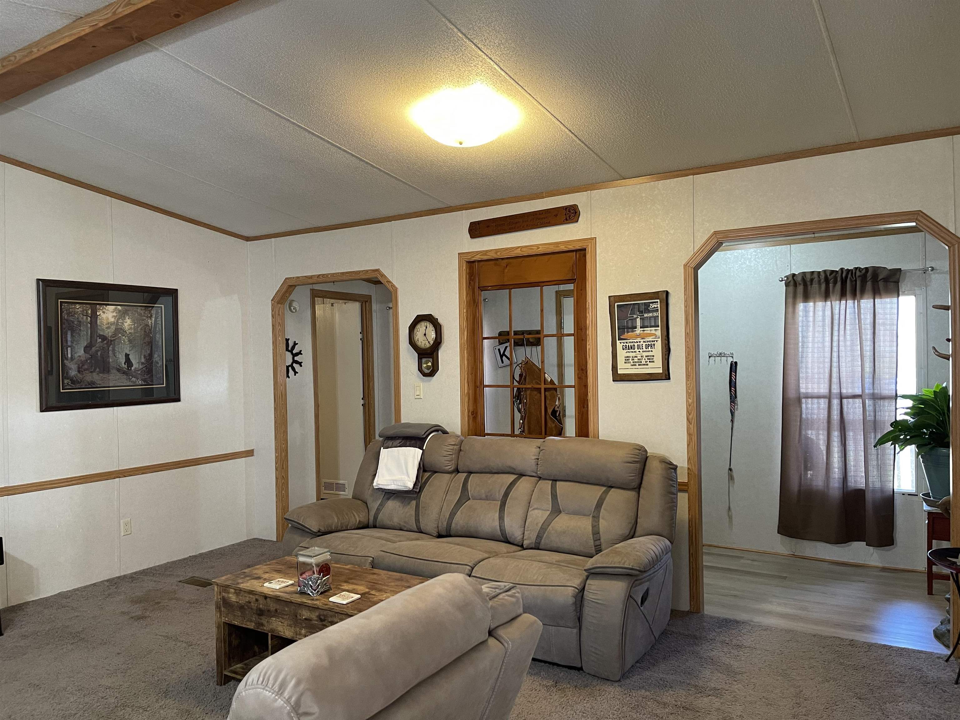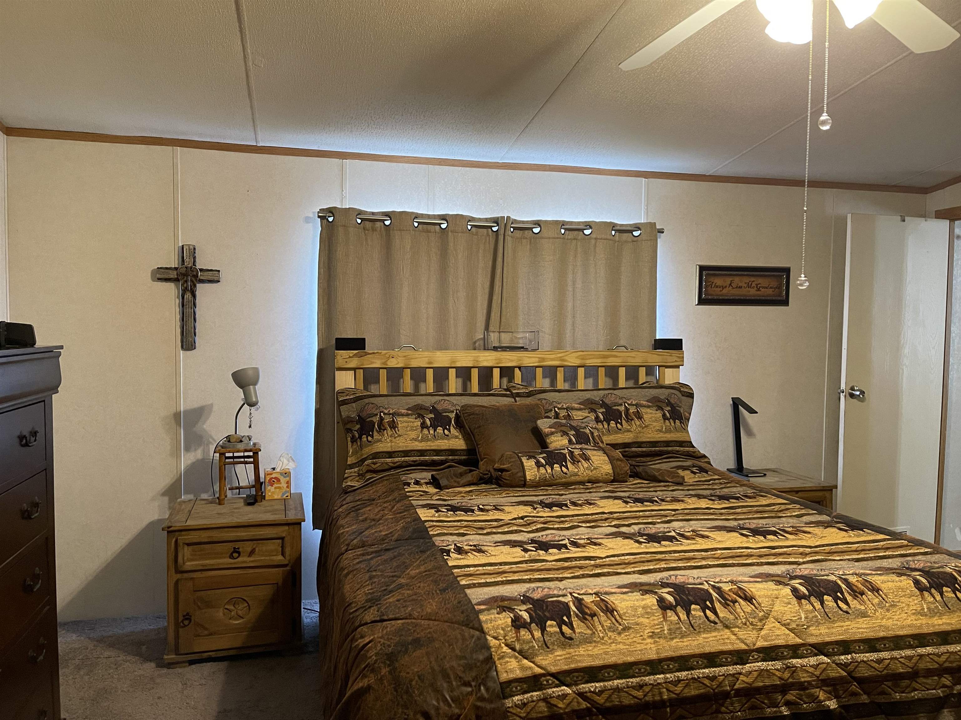 Welcome home! Spacious manufactured home offering 3 bedrooms and 2 bathrooms, situated on approximately 1.5 acres with exceptional amenities. The open-concept kitchen and dining area features an island, stainless steel appliances, and a hidden laundry room tucked behind kitchen cabinetry. The nice-sized primary bedroom includes a walk-in closet and private bath with double vanities and a garden tub. Two additional bedrooms and a second full bath provide comfortable space for family or guests. The living room features a cozy wood-burning fireplace. Outdoor highlights include a wooden front porch overlooking a koi pond, a fenced yard, and a large back deck surrounding the 16x32 above-ground pool with a 3-foot shallow end and 7-foot deep endperfect for entertaining. Additional improvements include a tankless water heater, RV shed and/or carport, and multiple storage buildings. The property also features a heated and cooled shop on a slab with an office. Separate furnished guest quarters/man cave includes 1 bedroom, 1 bathroom, a walk-in closet, and a kitchen, offering excellent flexibility for guests, hobbies, or additional living space. New Roof. Refrigerator, washer/dryer and outdoor grill stays! Too much to list! Schedule your appointment today!