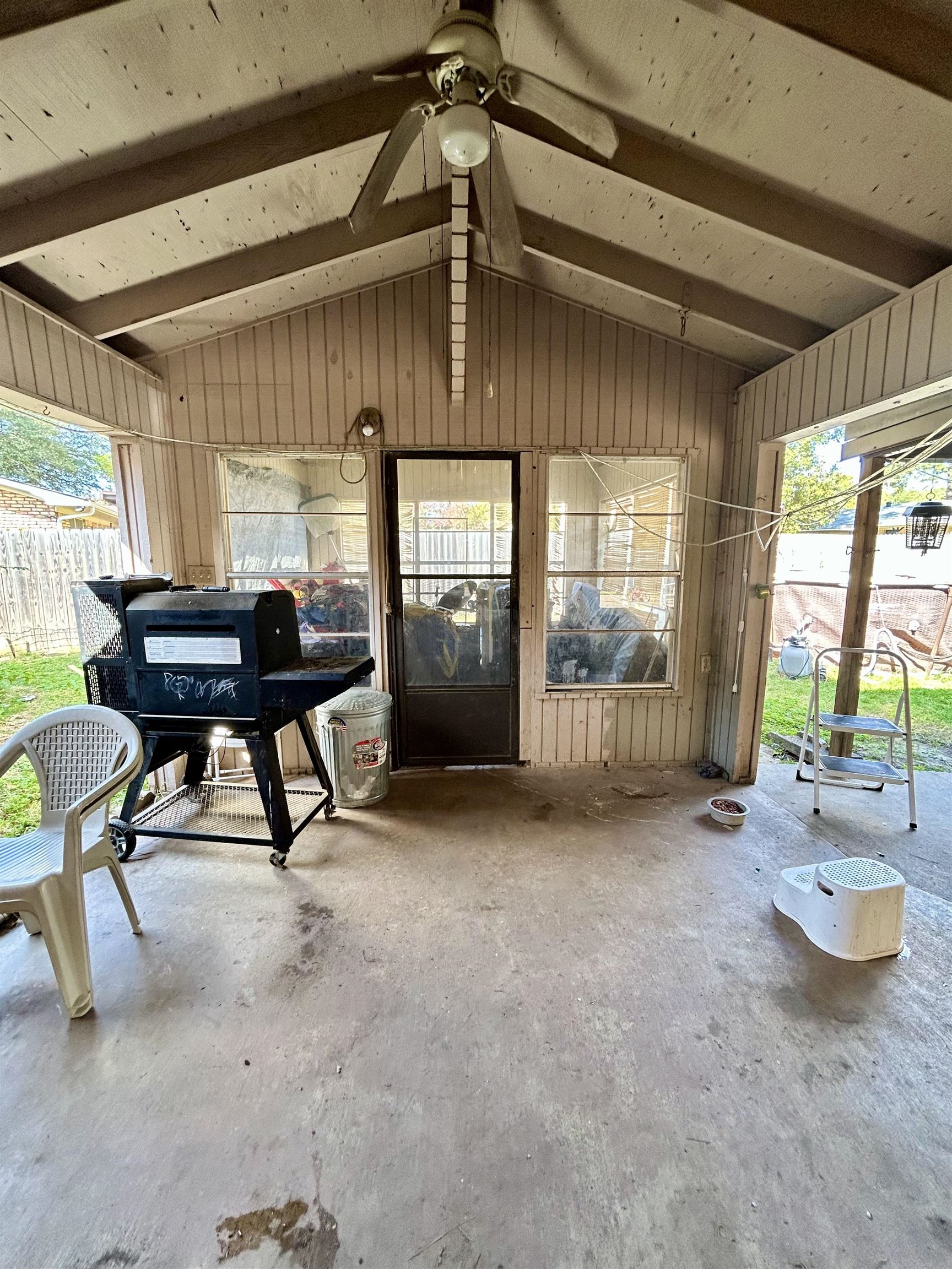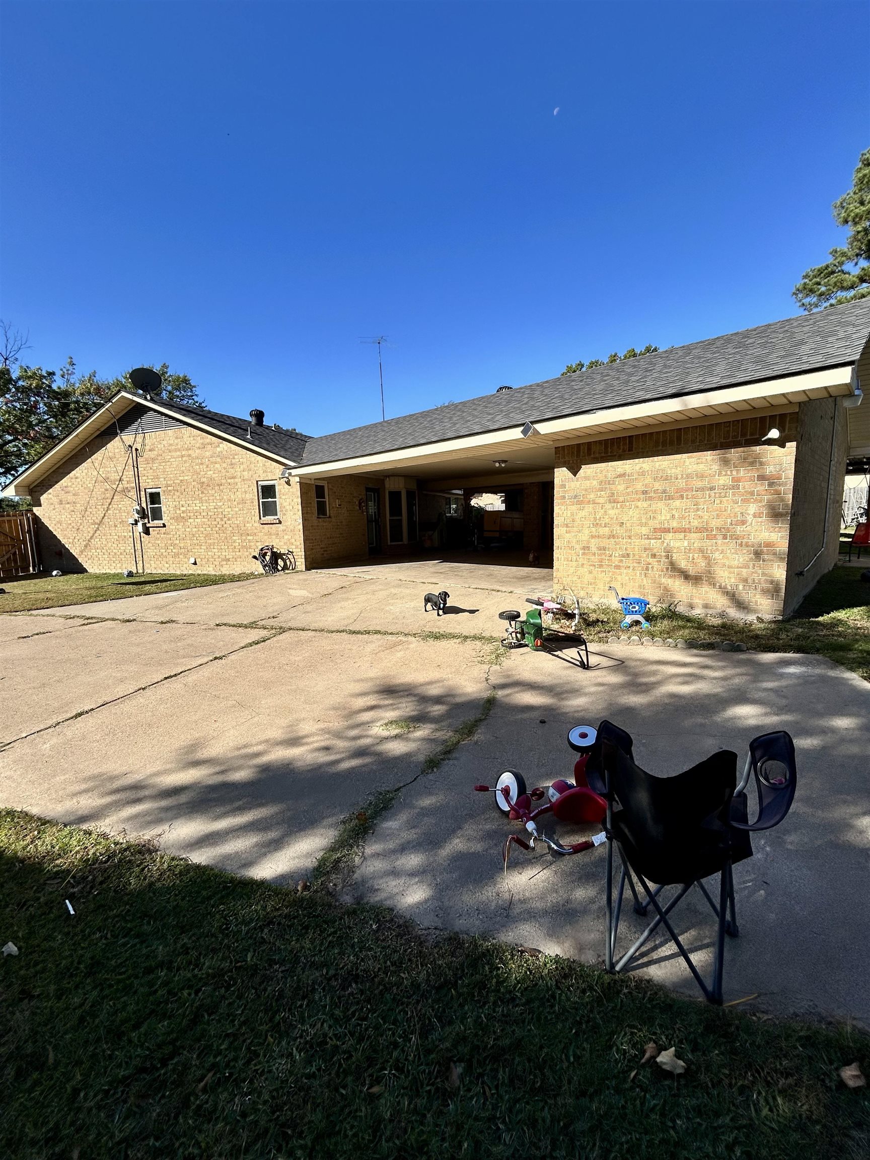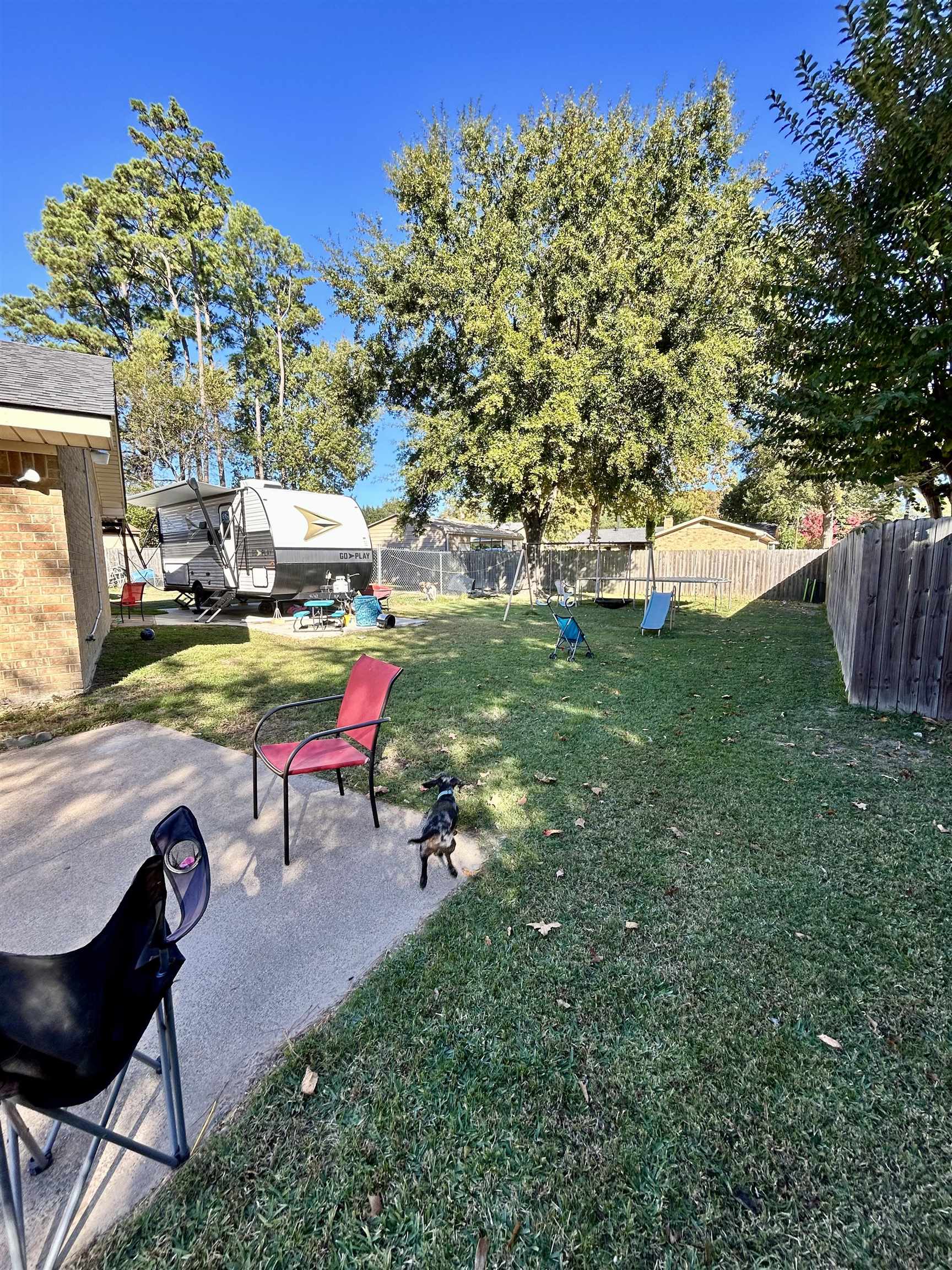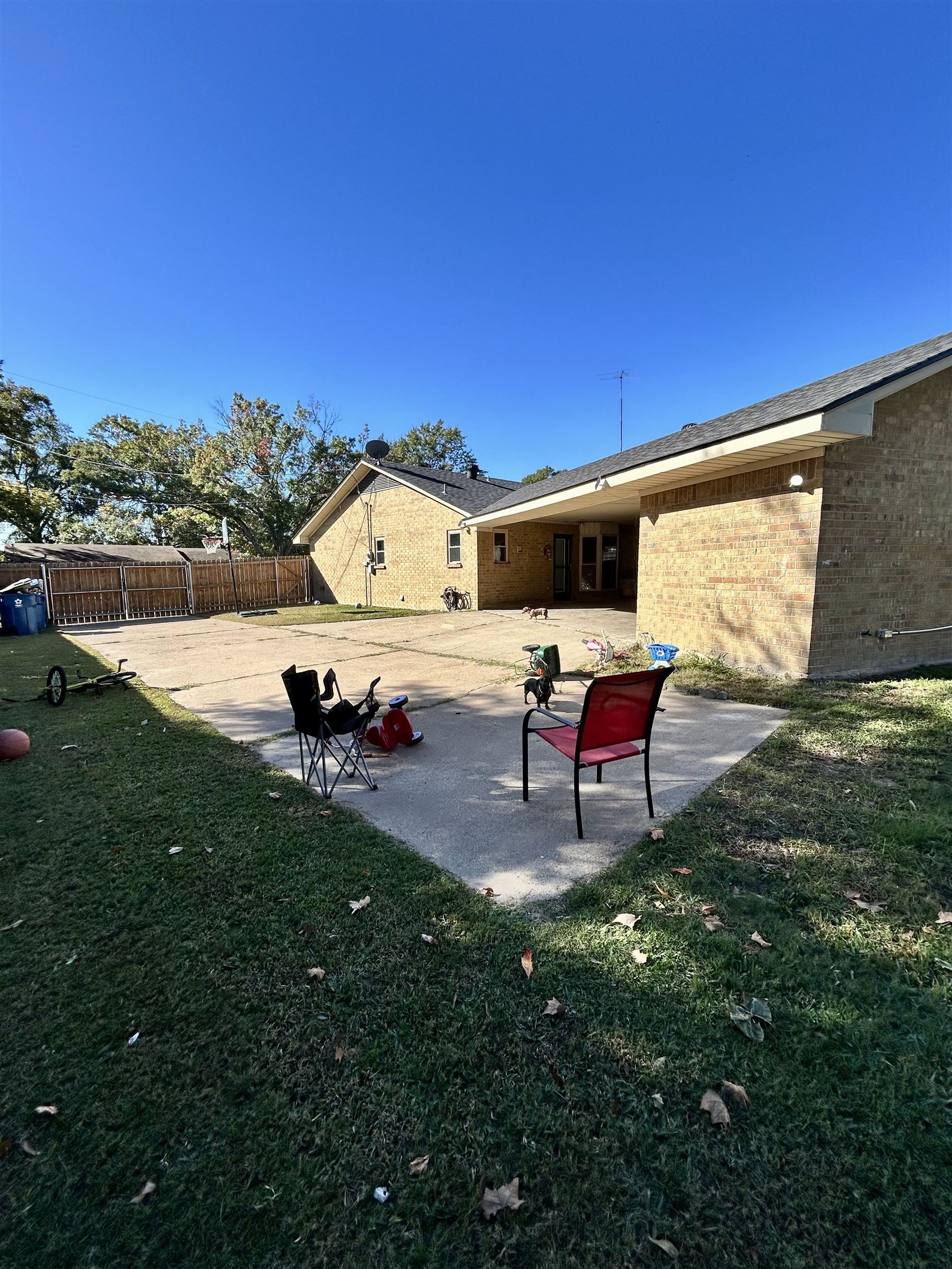 Welcome to this well-maintained 3-bedroom, 2-bathroom home offering 1,674 sq. ft. of comfortable living space and a desirable split-bedroom floor plan. Conveniently located within walking distance to White Oak schools and local restaurants, this property offers the perfect blend of comfort and convenience. The home features a spacious living area, bright sunroom, and a large covered patio with ceiling fansideal for year-round outdoor enjoyment. The backyard provides ample space for kids, pets, or entertaining, complete with an RV slab and plenty of parking for additional vehicles, a boat, or recreational equipment. Enjoy the flexibility of two laundry areasone conveniently located indoors and another in the exterior storage room, offering additional functionality and storage space. This property is perfect for those seeking a family-friendly home with plenty of room for hobbies, vehicles, and gatherings.