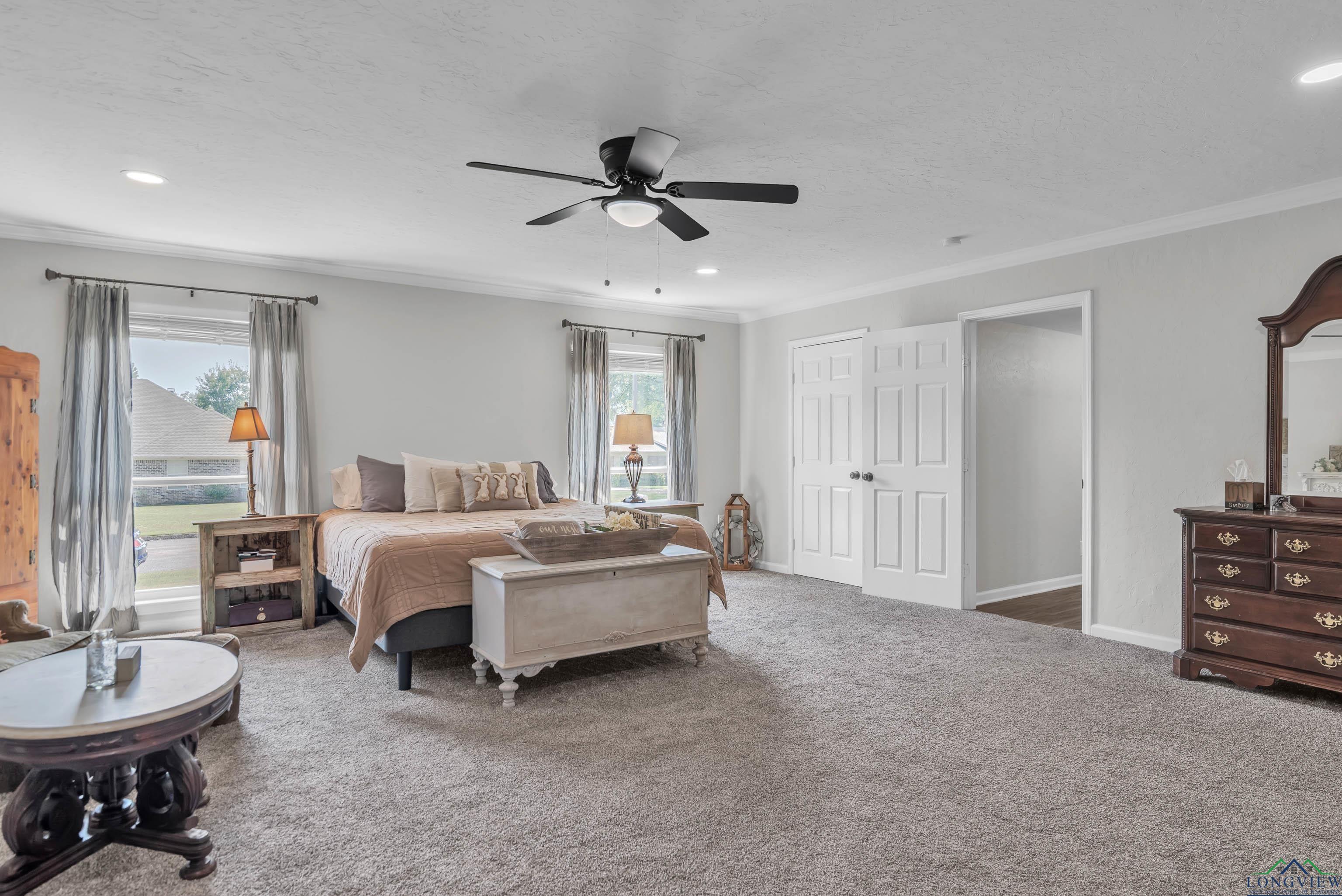 Step into modern comfort with this beautifully updated 4-bedroom, 3-bathroom home offering 2,840 square feet of living space. Thoughtfully remodeled in 2022, the home features fresh paint, new flooring throughout, updated lighting and fixtures, granite and quartz countertops, and a full set of modern appliances. A split mini A/C ensures year-round comfort in the spacious master suite, one of two primary bedrooms with walk-in closets. Enjoy multiple living spaces including a formal dining room, large living area, and a versatile bonus room perfect for a home office, playroom, or gym. The detached 30x40 air-conditioned garage accommodates up to three vehicles with extra storage space. Situated on a corner lot, the property also boasts recent upgrades like new kitchen cabinetry, backyard landscaping, blinds, fencing, and a new water heater. Located just blocks from White Oak schools, parks, splash pad, and local shopping and dining, this home blends convenience with everyday comfort.