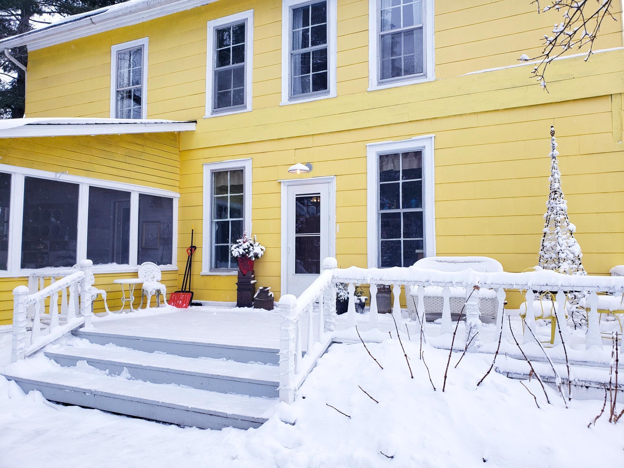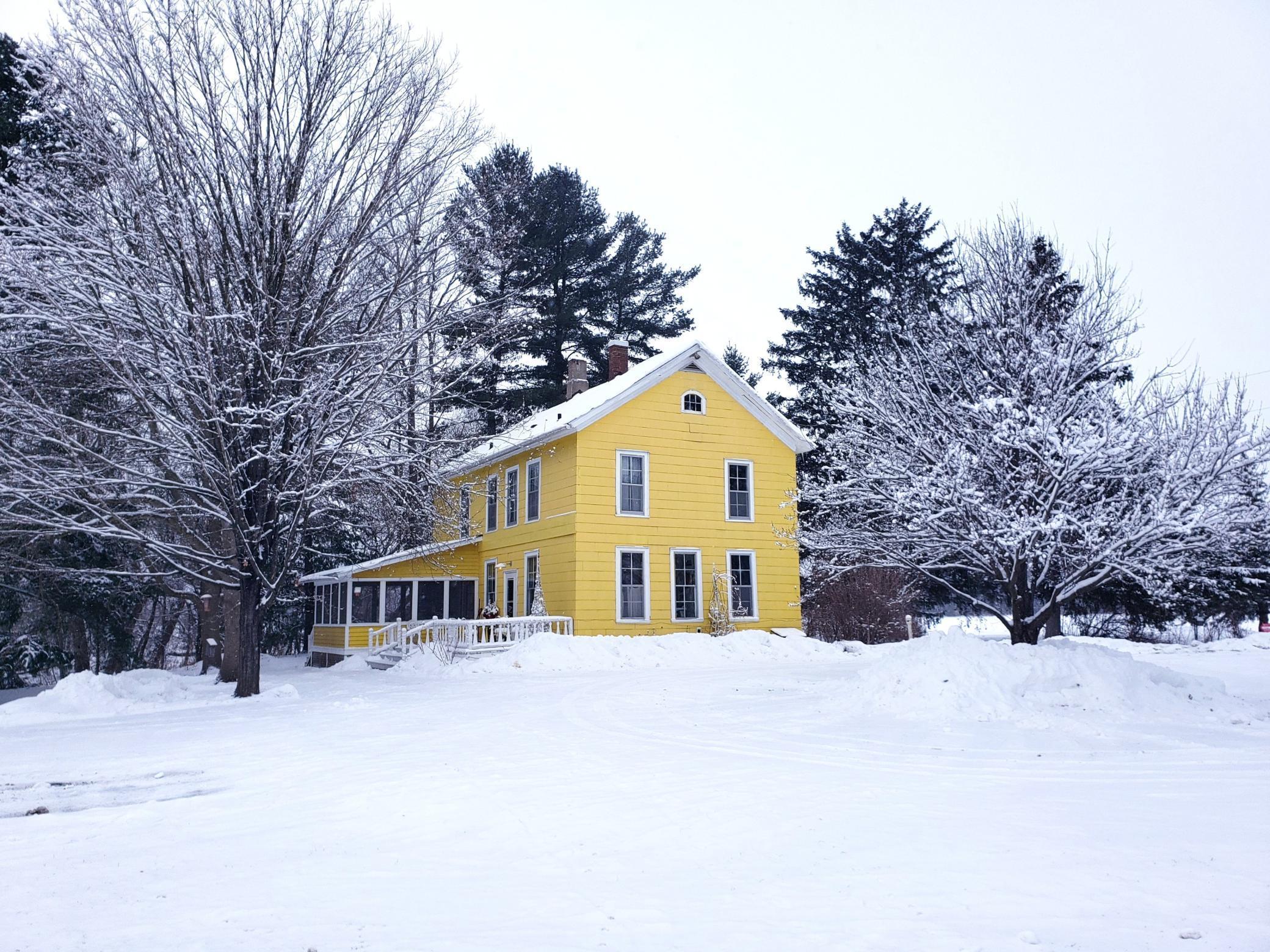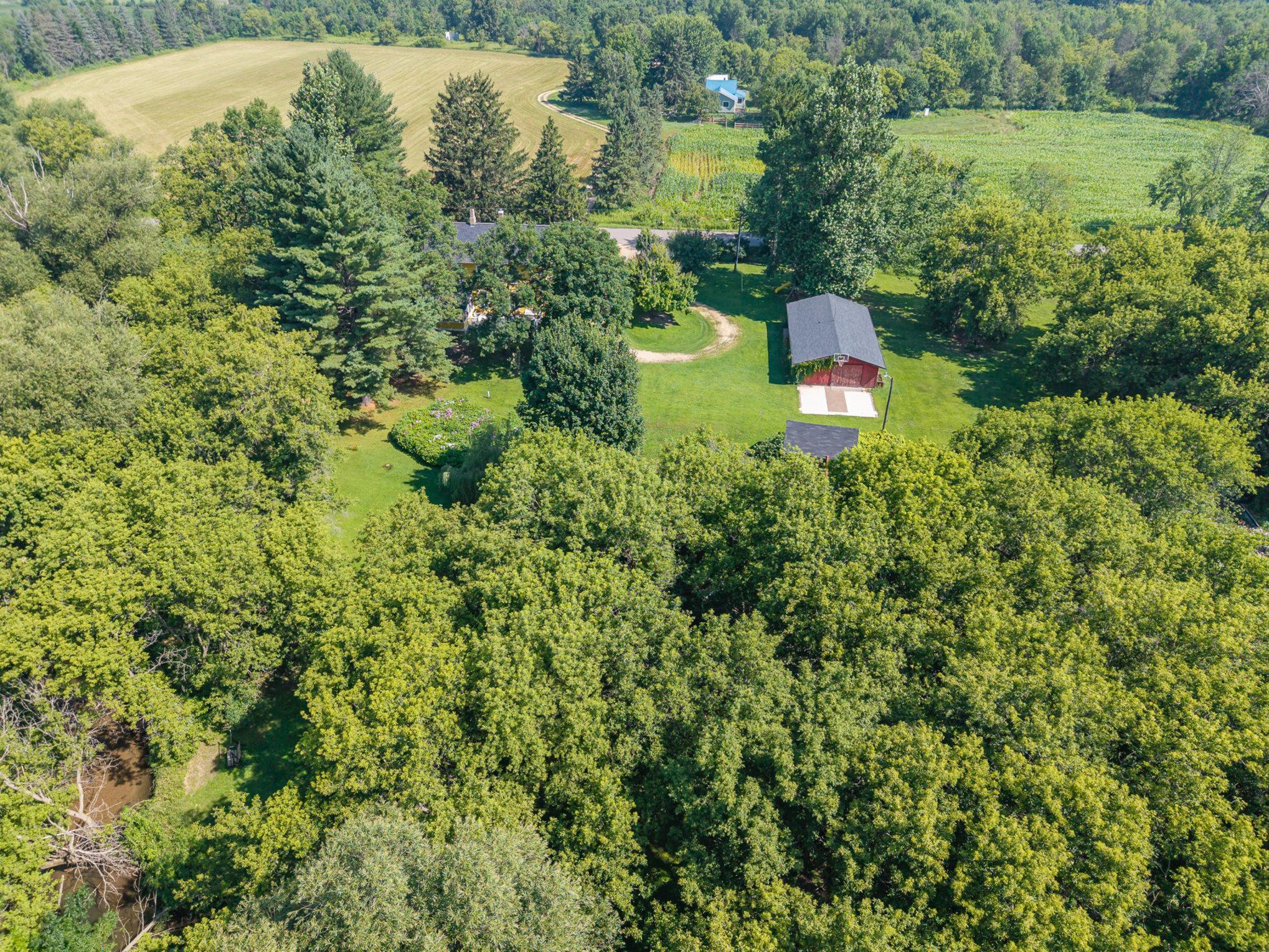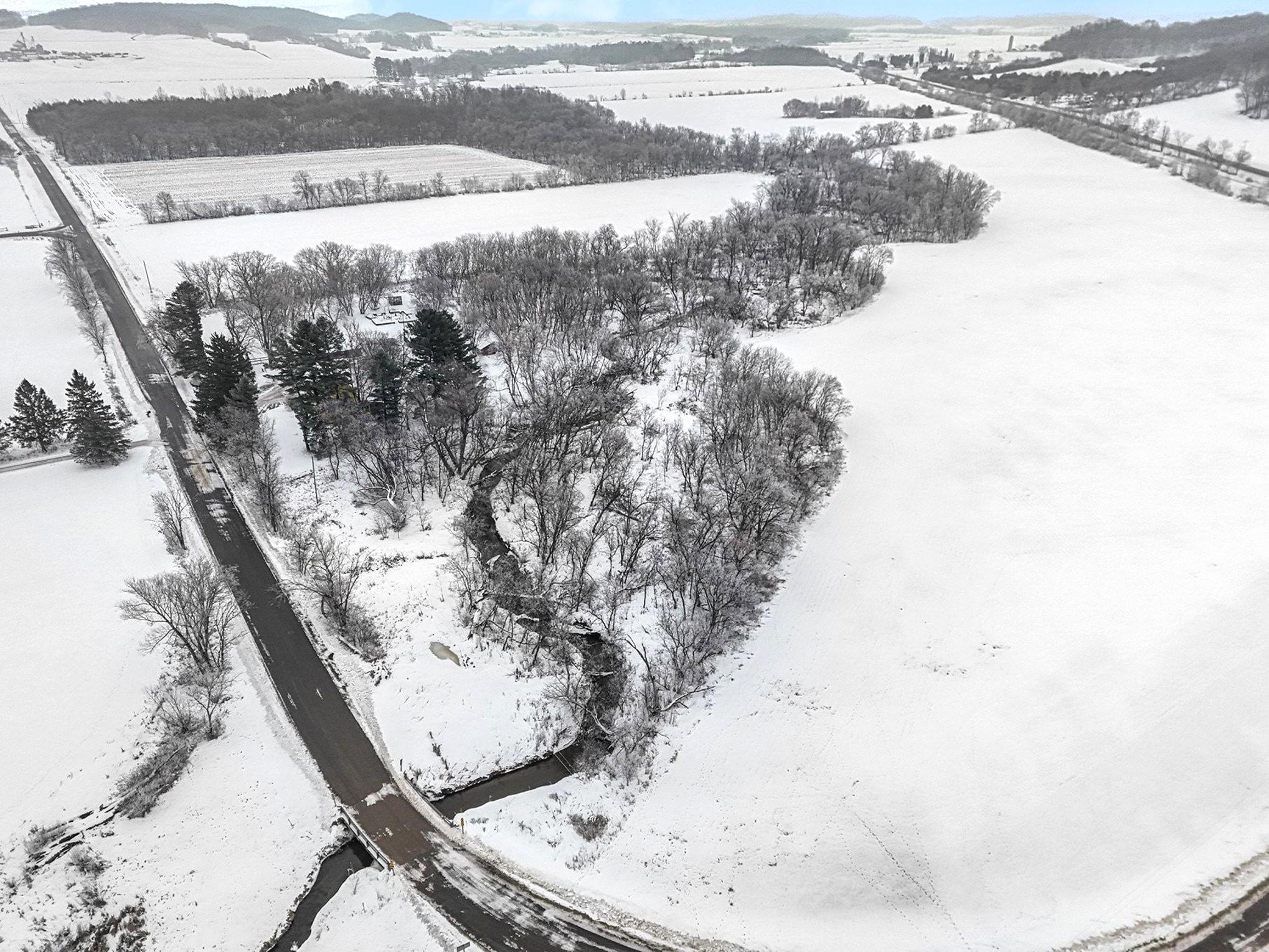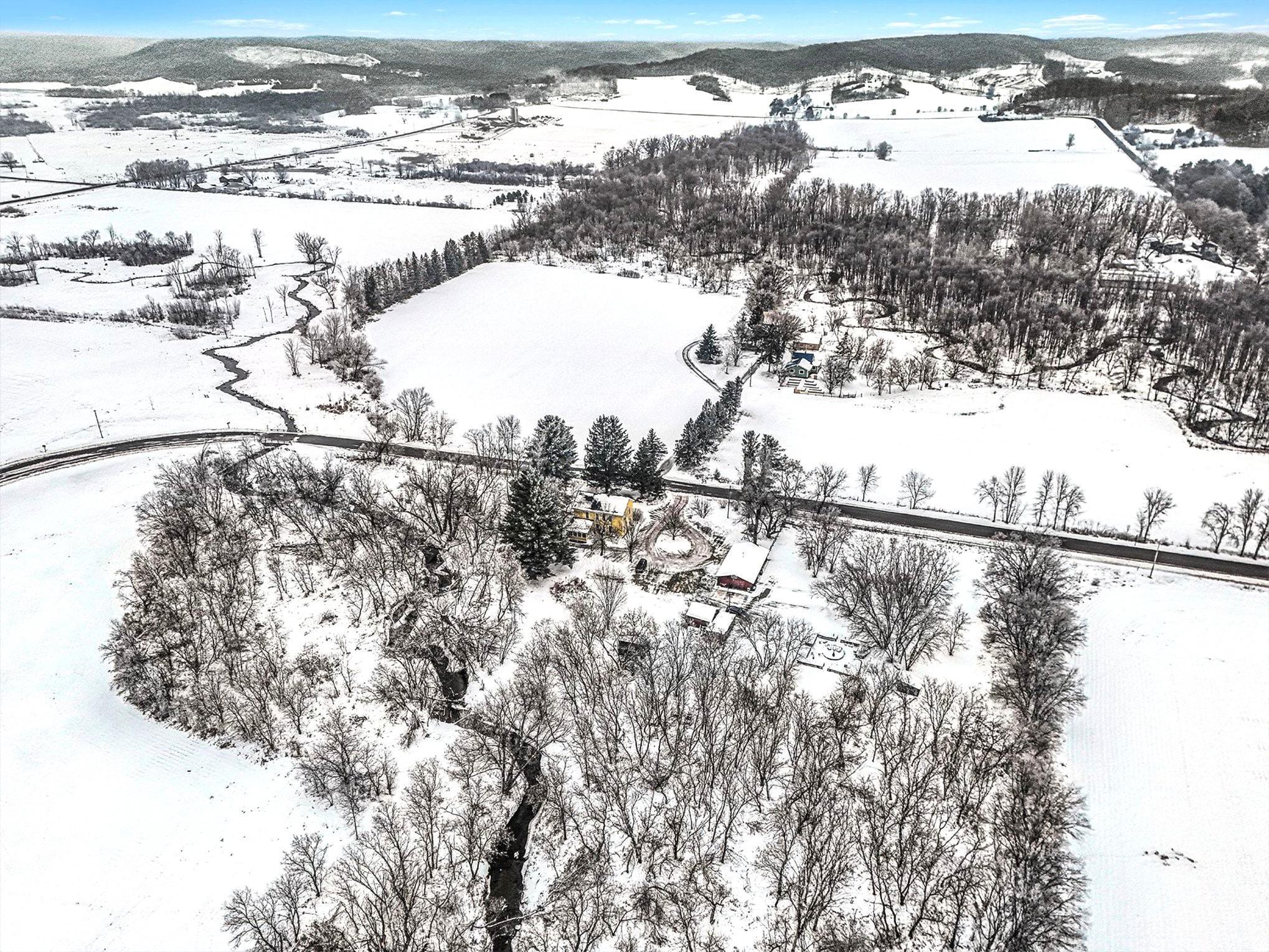 Escape to your own 13.84 acre, 4 bed, 2 bath winter retreat along the peaceful banks of Wilson Creek. Inside this 1863 two-story home enjoy 9-foot ceilings, a sun-filled kitchen for baking, spacious formal rooms ideal for hosting, all bedrooms on one level, a cozy pellet fireplace perfect to gather and warm by-after a day of winter adventure. Enjoy serene winter views from the large deck and side porch. The expansive yard offers space for snow play, chickens, wildlife watching, timbers to cut for bonfires, and quiet moments by the winding creek-an inviting spot for anglers looking ahead to cast a line in the spring. Outbuildings include a 50x25 detached garage with room for parking snowmobiles and ATVs, a workshop, flexible-use shed, chicken coop, greenhouse, and crop cage. Growers planning ahead for spring blooms will enjoy the established garden area and fields. An invisible fence is already in place for pets. The home is being sold in its current condition, offering a great opportunity to bring your vision to life. Conveniently located for easy Highway 94 commute to St. Paul or Eau Claire. One year home warranty included. Winter adventurers will appreciate county snowmobile trails and plenty of room for outdoor toys.