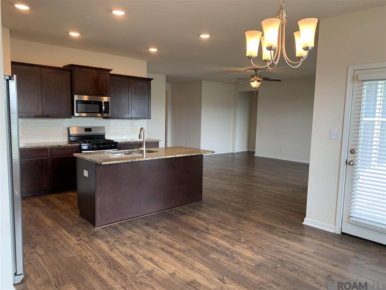 4 BR with open concept floor plan, kitchen island, granite counters, subway tile backsplash, gas stove, separate pantry. Wood floors in the living area and master bedroom. Master bath has a large soaking tub and separate shower, double vanities, extra large walk in closet. Appliances include refrigerator, washer and dryer. Double garage, back porch, community pool, sidewalks, & lake view. Brand new fence installed! Property available now for showing. Ascension Parish Schools! Schedule your viewing appointment today! Structural square footage nor lot dimensions are warranted by Realtor or Owner.