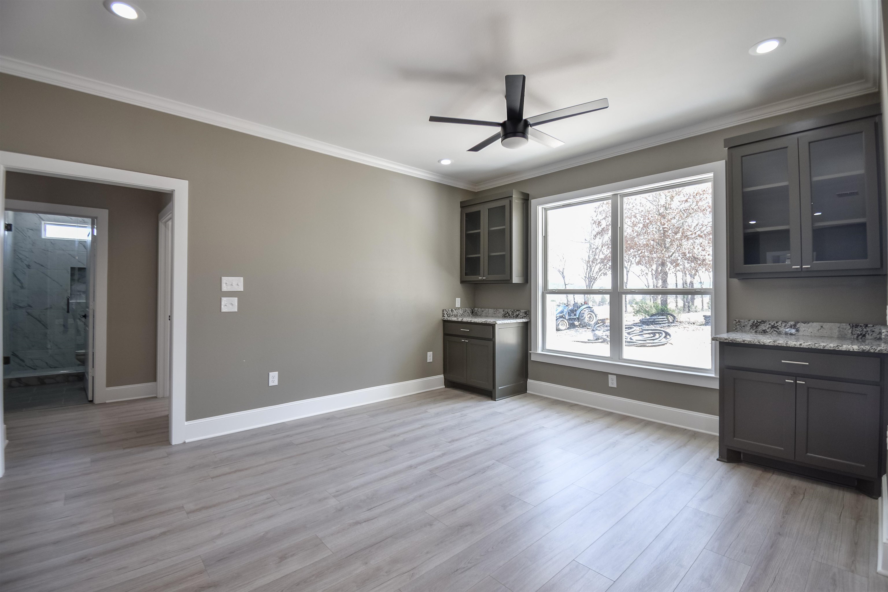 Step into this beautifully crafted 3-bedroom, 2.5-bathroom home with a 2-car garage, completed in 2024 and thoughtfully designed to blend modern convenience with timeless farmhouse charm. Nestled on 4.39 acres, this property offers the space and tranquility youve been looking for. A welcoming front porch sets the tone, inviting you to relax and enjoy the peaceful country setting. Inside, youll find a spacious open-concept layout where the living room, dining area, and kitchen flow seamlesslyperfect for both everyday living and entertaining. The kitchen is stylish and functional, featuring a breakfast bar, pantry, electric range, over-the-range microwave, dishwasher, and plenty of cabinetry. A versatile flex room with a nearby closet adds extra potentialideal for a home office, guest room, or creative space. The generously sized primary suite boasts an ensuite bath with dual sinks, a jetted tub, walk-in shower, and a spacious walk-in closet. Two additional bedrooms are well-proportioned and share a nearby full bath with a walk-in shower. The home also includes a laundry room with a sink and hanging space for added convenience. Step out back to a covered patio that overlooks your private acreageperfect for evening gatherings or quiet mornings with coffee in hand. This stunning home is the perfect blend of comfort, style, and rustic elegance. Schedule your private tour today and experience the charm for yourself!