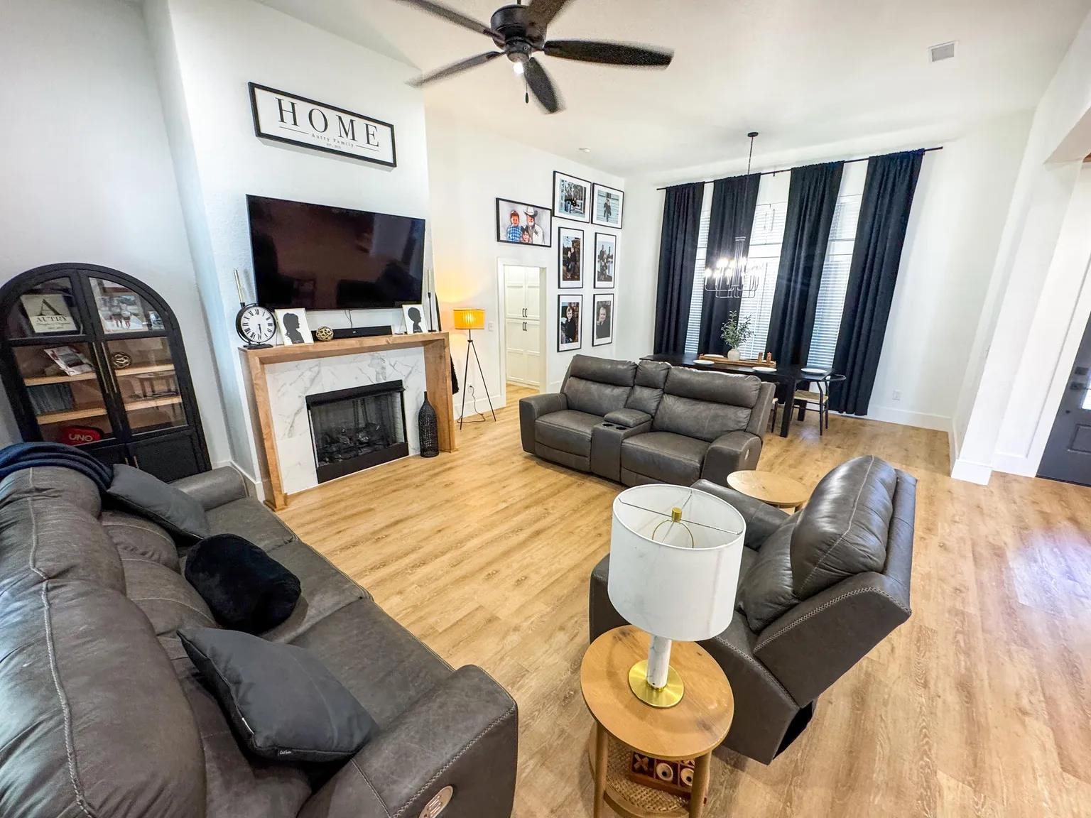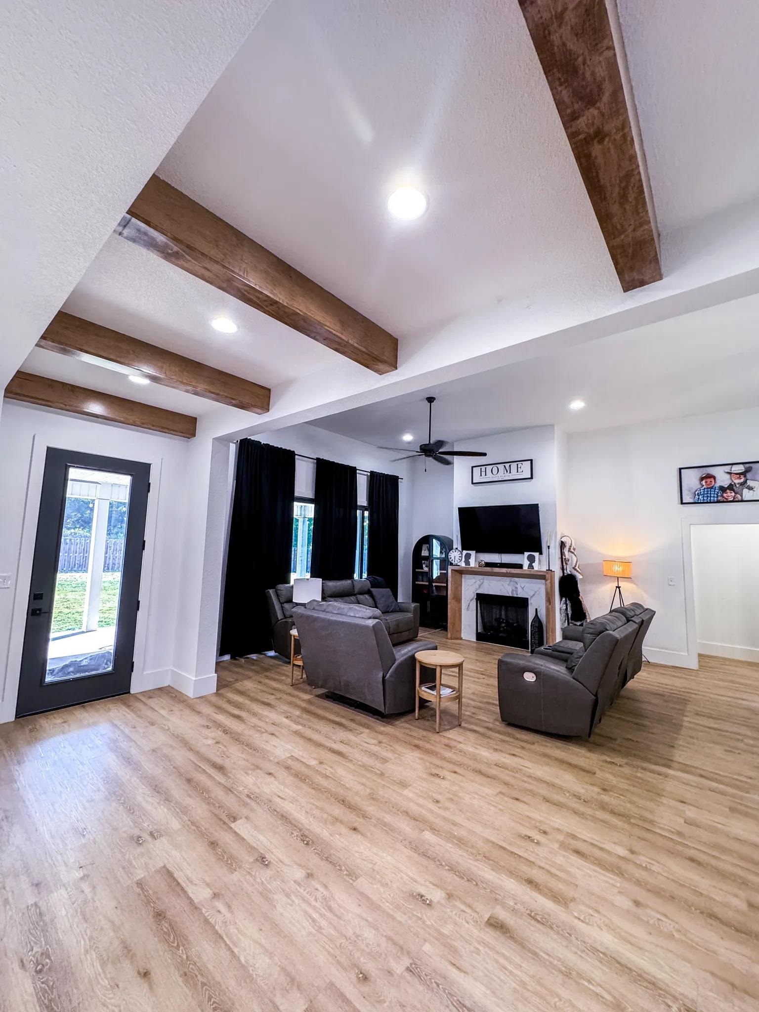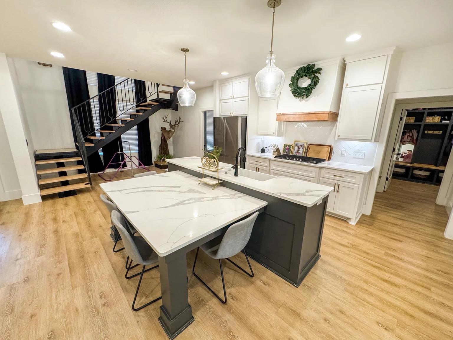 Modern luxury blends seamlessly with warmth, sophistication, and timeless design in this stunning white brick residence nestled within the exclusive gated enclave of Mallard Pond. This picturesque community features private streets lined with charming lanterns, a scenic gazebo, and a tranquil dock overlooking the lake creating a peaceful, storybook setting just outside the city limits. Residents enjoy a close-knit atmosphere surrounded by beautiful views and thoughtful amenities that elevate everyday living. Located in the highly sought-after Pleasant Grove ISD just north of I-30, this home offers unbeatable access to top-rated schools, leading healthcare facilities, and a wide array of shopping, dining, and entertainment options. Whether you're enjoying a night out at a local bistro or heading to Shreveport, Louisiana or Little Rock, Arkansas via nearby gateways, convenience is always within reach. From its sleek lines and striking curb appeal to the welcoming front porch, every detail sets the tone for what awaits inside. Step into a sun-drenched interior where soaring ceilings, expansive floor-to-ceiling windows, and a beautifully crafted wooden staircase anchor the open-concept living space. The great room exudes comfort and elegance with exposed wooden ceiling beams and a contemporary gas fireplace, creating a refined yet inviting atmosphere. The chefs kitchen is a true showpiece, featuring stainless steel appliances, a gas cooktop, herringbone-patterned subway tile, glass pendant lighting, and stunning countertops that flow into a sit-down dining surface. A statement chandelier in the dining area adds a touch of drama and completes the cohesive design. Just off the main living area, a single-panel glass door reveals a spacious private office or creative studio, outfitted with custom built-ins and ample room for productivity, inspiration, or quiet focus. Whether you're working from home or pursuing a passion project, this dedicated space offers both style and substance. Upstairs, a versatile loft provides additional living space, ideal for a media room, play area, or quiet retreat. The primary suite is a sanctuary of style, boasting cathedral ceilings, a luxurious soaking tub, a glass-tiled walk-in shower, dual vanities, and a spacious closet with built-in drawers and shelving. Thoughtful extras abound, including a generously oversized mudroom with built-in cubbies, bench seating, and storage nooks perfect for organizing daily essentials and keeping the home clutter-free. This functional hub connects effortlessly to the garage and laundry room, streamlining routines with elegance and ease. You'll also find an oversized laundry room with a utility sink and a roomy garage designed for convenience and storage. Step outside to a beautifully landscaped, fully fenced backyard that offers both privacy and tranquility. The spacious covered porch is perfect for year-round enjoyment whether you're hosting summer barbecues, sipping morning coffee, or unwinding in the evening with friends. With ample room for outdoor dining, lounging, or play, this backyard is a true extension of the home, designed for comfort, connection, and effortless entertaining. With a tankless water heater, premium finishes throughout, and a second gas fireplace, this residence is as efficient as it is elegant. Quiet, secure, and impeccably designed, this Mallard Pond masterpiece defines modern living in a private, gated setting where every detail speaks to quality, style, and thoughtful craftsmanship.