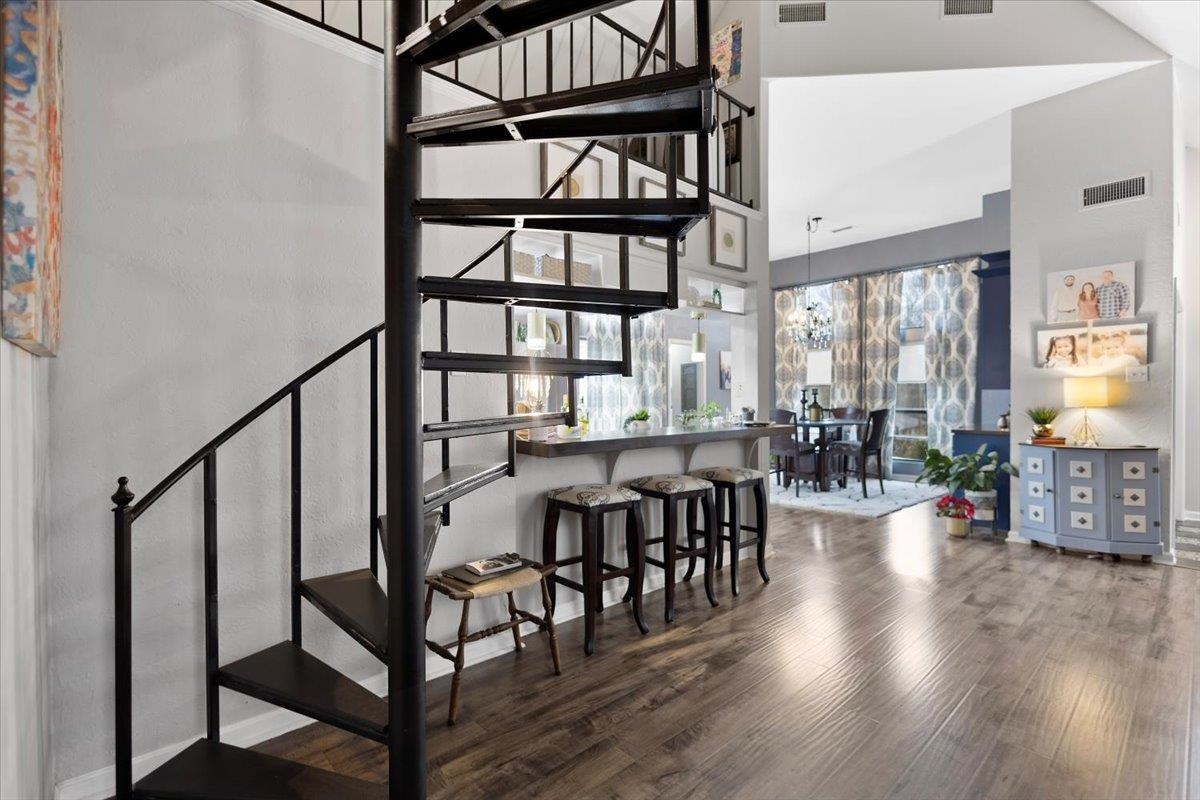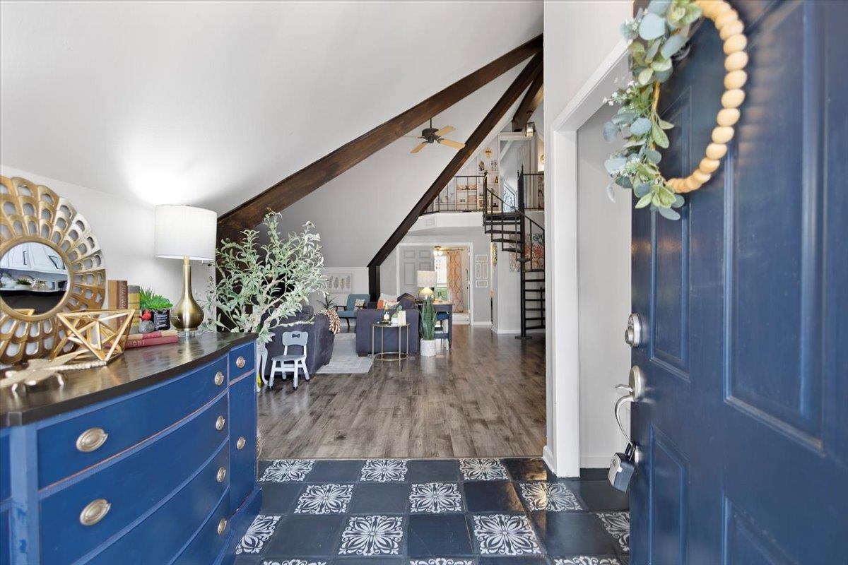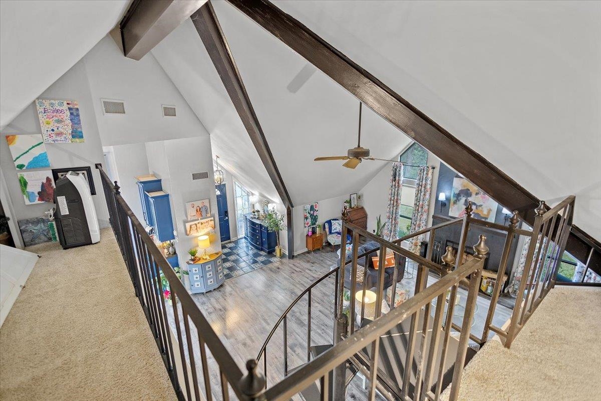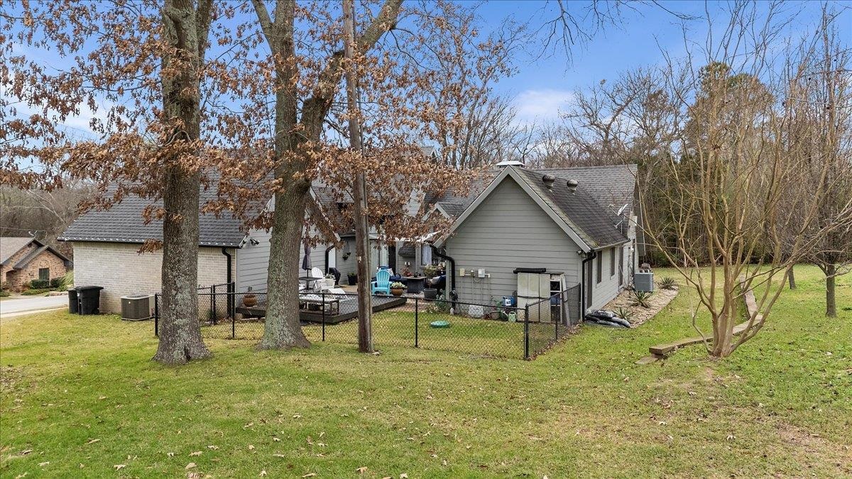 Welcome to this wonderful 3 bedroom, 2.5 bath home located on the golf course in Hideaway Lake and just minutes from the front gate. This beautifully updated home offers both charm and functionality with thoughtful custom touches throughout. The dining room features custom cabinetry that provides extra storage and a perfect space for entertaining. Enjoy a large laundry room with abundant storage to keep everything organized. The spacious primary suite has been updated to include a relaxing soaking tub and a beautifully tiled shower, creating a true retreat. The living room is generously sized and anchored by a stunning wood-burning fireplace, making it the perfect gathering space. A unique spiral staircase leads to one of the upstairs bedrooms, adding character and architectural interest. Step outside to the lovely back patio and take in peaceful golf course views, ideal for morning coffee or evening relaxation. Enjoy all that Hideaway Lake has to offer including golf, lakes, pools, parks, and more, all within a gated community. This home combines comfort, style, and location in one exceptional package.