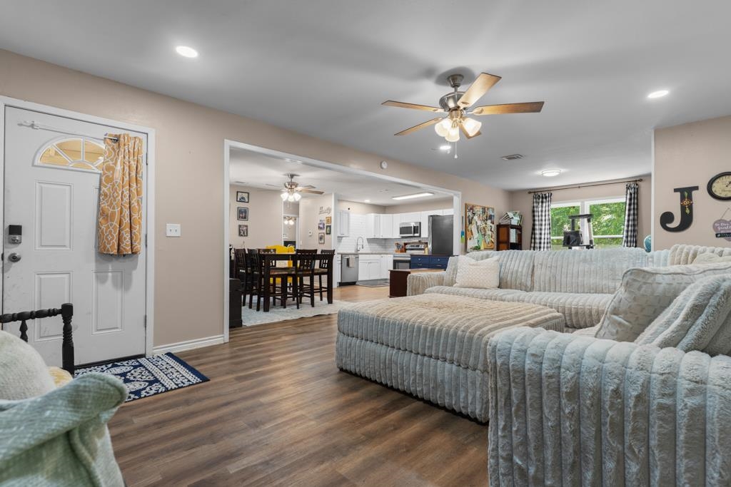 Located in the heart of Daingerfield, this charming 3-bedroom, 2-bath home offers generous space and versatility for everyday living. The property features ample parking, a covered front patio, and an attached carport for added convenience. Step inside to a spacious living room that flows into a flexible bonus areaperfect for a formal dining room, home office, or playroom. The kitchen is open and roomy, complete with an adjoining breakfast nook ideal for casual meals. All three bedrooms are well-sized, and the home includes a large utility room with direct access to a fenced backyardperfect for pets or outdoor enjoyment.