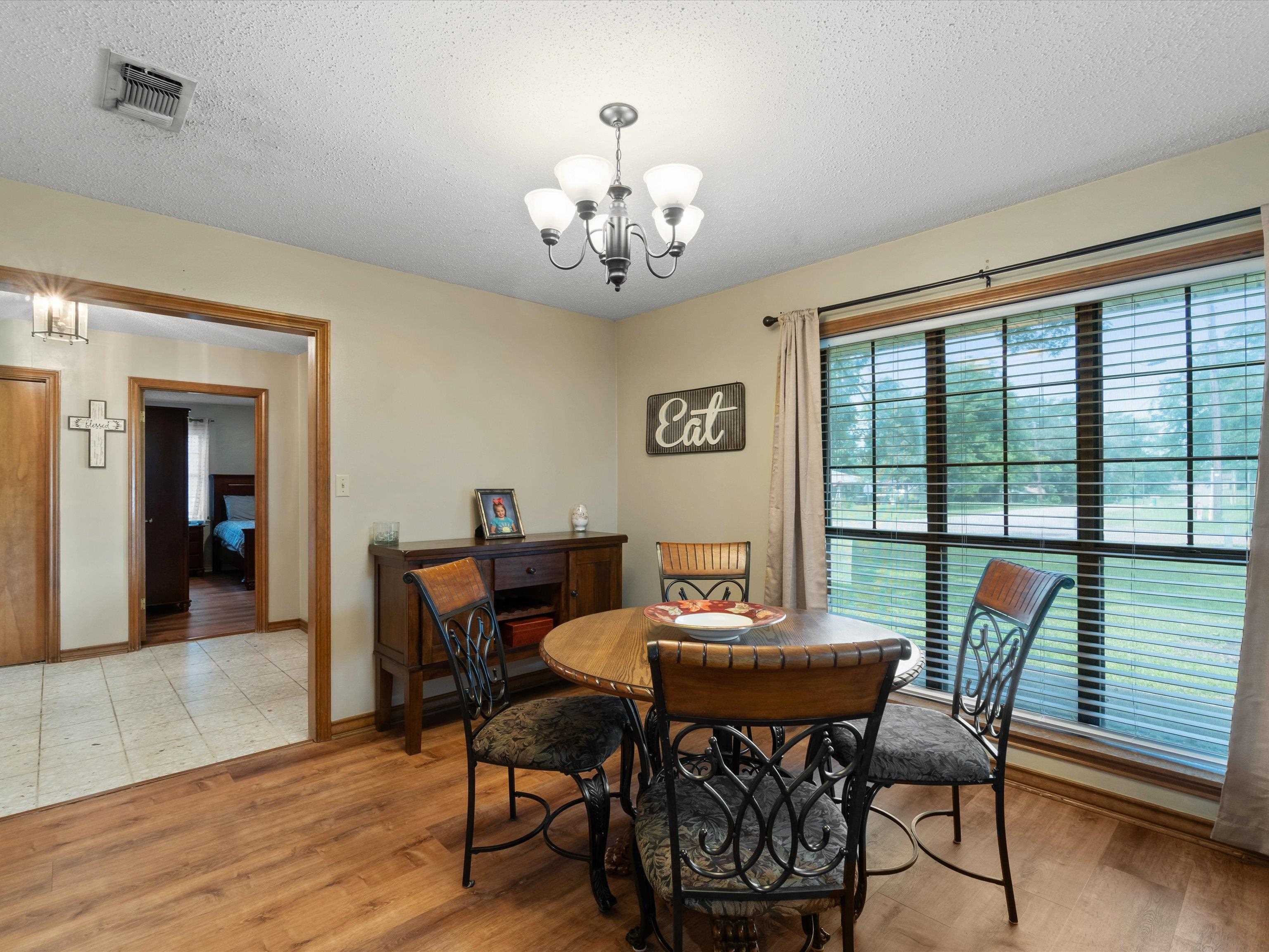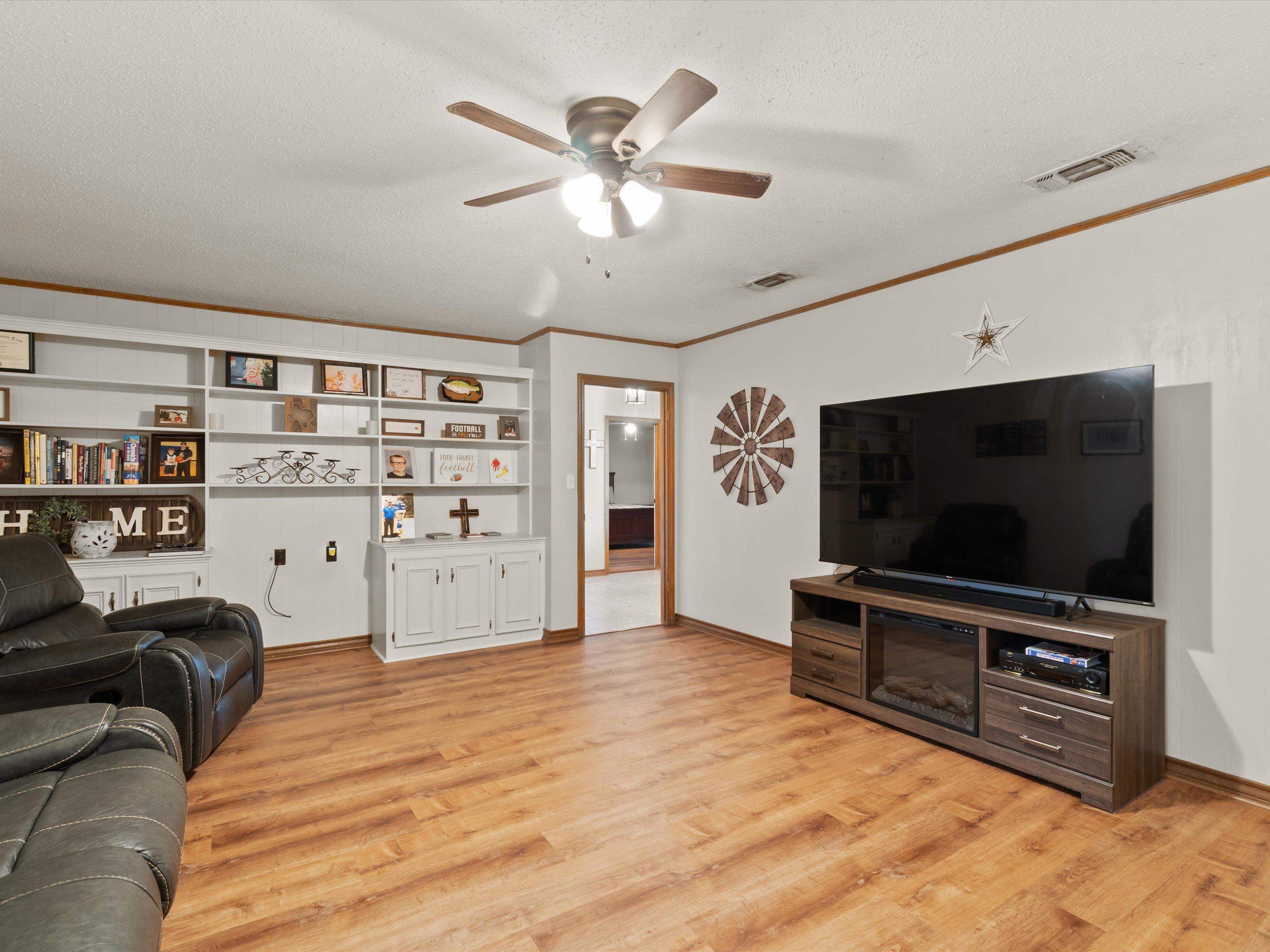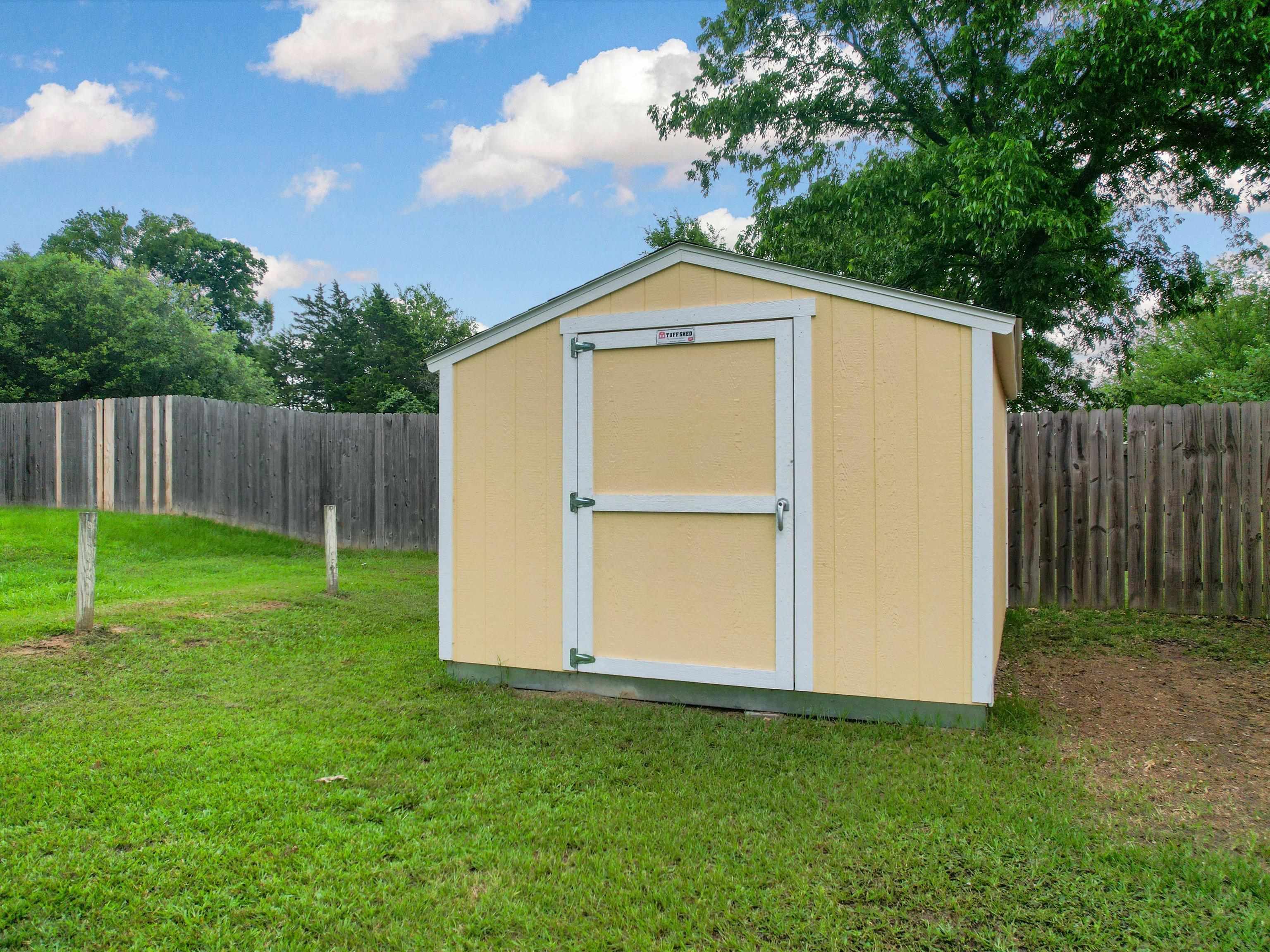 Don't miss this move-in ready gem tucked away in a peaceful and desirable neighborhoodperfect for your next chapter! Step inside to discover a spacious and open kitchen featuring updated countertops, a stylish new tile backsplash, stainless steel appliances, and plenty of room for family meals and entertaining. The living room boasts a built-in entertainment center, creating a cozy yet functional focal point for everyday living. The primary suite offers a large walk-in closet, newer blinds with black out screens, a generous vanity and dressing area, and direct access to a beautiful bathroom. The secondary bedrooms are also oversized, and the home is loaded with storage, including two large hall closets and custom cabinetry throughout. Outside, enjoy the huge backyard enclosed by a wooden privacy fenceideal for kids, pets, or weekend get-togethers. A recently added 12x12 storage/workshop building gives you room for hobbies or extra tools. Additional exterior features include a two-car garage with cabinet storage and backyard access, extended concrete patio space perfect for entertaining and gutters added. With updated flooring and thoughtful upgrades throughout, this home is as practical as it is charmingand it wont last long! Schedule your private tour today before this one gets away.