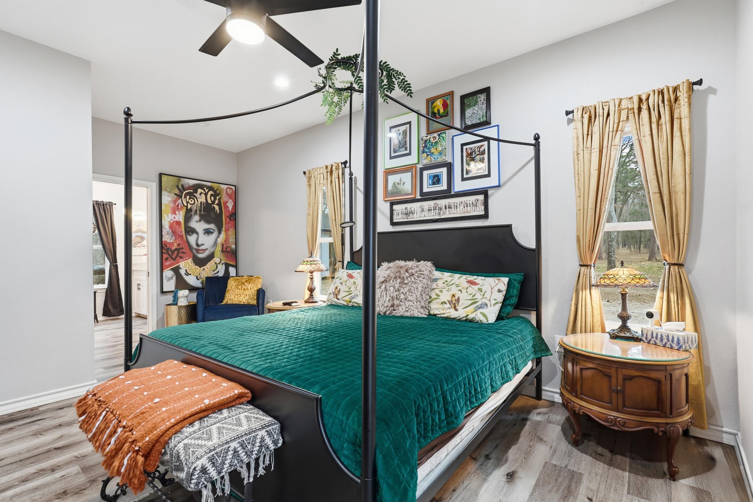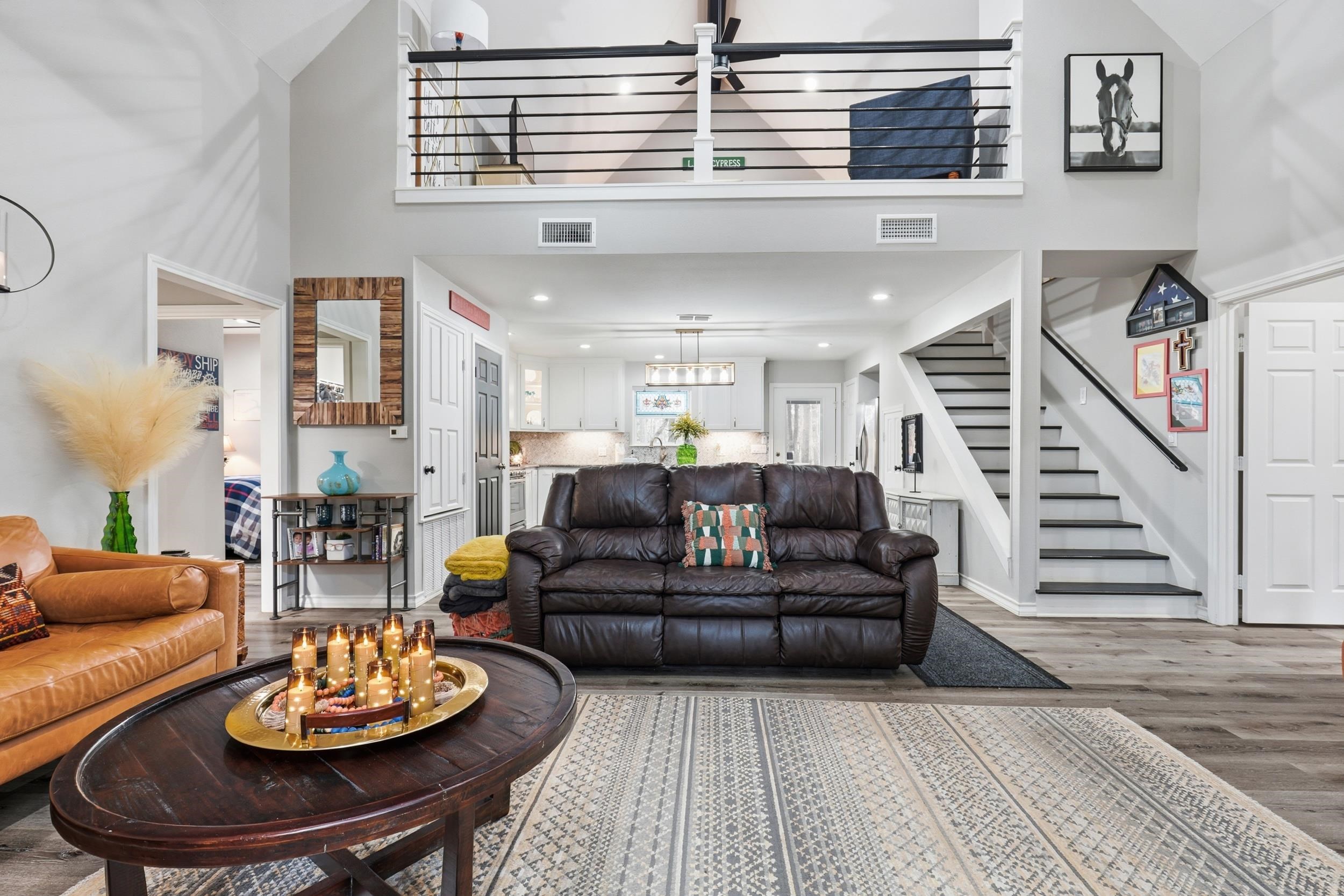 Stunning water view residence overlooking Lake Cypress Springs, ideally positioned on one of the most prestigious streets in Kings Country and surrounded by luxury homes. This exceptional property offers refined lake living with comfort, elegance, and thoughtful design throughout. The dramatic living room showcases soaring vaulted ceilings and gorgeous windows overlooking an expansive covered patio, creating a seamless transition to outdoor entertaining and relaxation. The chef inspired kitchen is both beautiful and functional, featuring premium countertops, stainless appliances and an oversized island designed for hosting and gathering. The private primary suite is a true retreat, offering direct patio access and a well-appointed en-suite bath with a fabulous bathtub. A secondary bedroom on the main level provides convenience for guests, while the upper level offers a versatile bonus space ideal for a third bedroom, media room, office, or additional living area. Outdoor living takes center stage with two spacious covered patios, a dedicated workshop, covered parking, and a charming firepit area perfect for evenings under the East Texas sky. A whole-home generator provides added comfort and security year-round. Residents enjoy access to exclusive neighborhood amenities including gated entry, clubhouse, fitness area, sports courts, playground, boat ramp, and boat slips, delivering the full lake lifestyle experience. Water-view homes of this caliber are rarely available. This is a remarkable opportunity to own a refined retreat near one of East Texas most sought-after lakes.