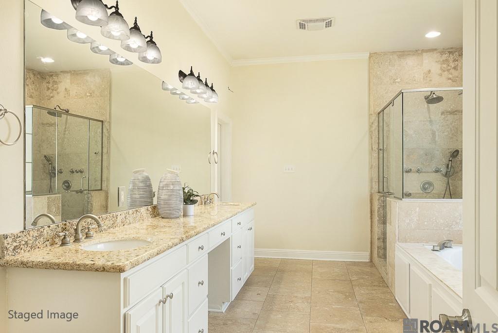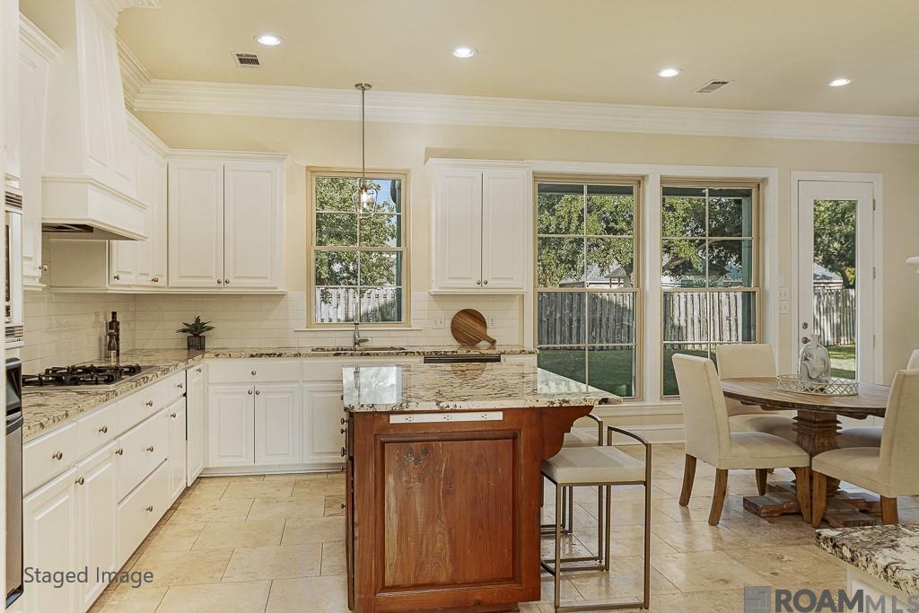 This exquisite 4 bedroom, 4 bath home plus a BONUS room and OFFICE is situated in the prestigious University Club Plantation and offers luxury and comfort. The gourmet kitchen is a chef's delight, showcasing granite countertops, stainless steel appliances, a gas stove, a butler's pantry and a generously sized island for enhanced workspace. Throughout the main living areas, the residence showcases beautiful travertine and wood flooring. The oversized master suite offers plenty of space for a sitting area while the master bath serves as a sanctuary of relaxation with its spacious walk-in shower, separate garden tub and dual vanities adorned with granite countertops. You will absolutely love the sizable walk-in closet. The upper level unveils a spacious bonus room with wood floors, along with 3 additional bedrooms with brand new carpet, each offering private access to its own bathroom. This home also offers a two car garage with sizable walk-in storage room, gutters and a four year young roof! In keeping with its luxurious atmosphere, University Club Plantation also provides access to an array of amenities including two pools, tennis courts, golf course, club house, workout facility, restaurant dining, playground and much more! Call today to schedule your personal showing!