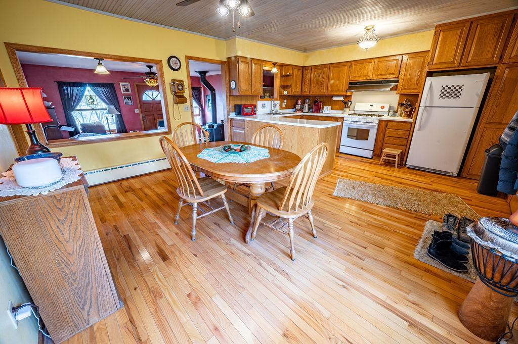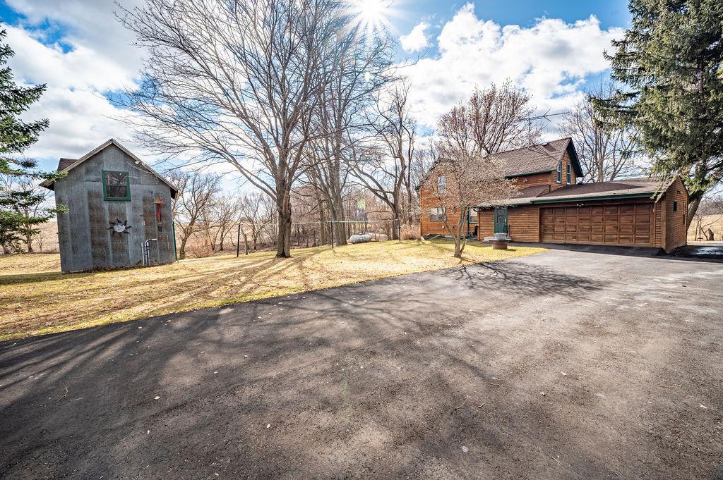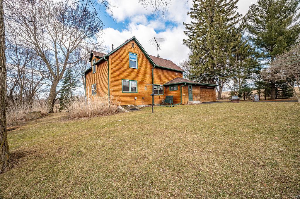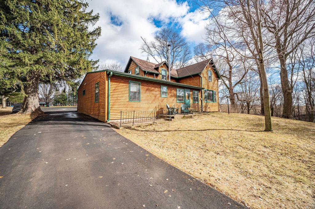 This warm and welcoming Cedar Home blends rustic charm with everyday comfort, offering bright, lived-in spaces and a peaceful rural setting!! Inside, youll find cozy living areas with rich wood accents, large windows that bring in natural light, and thoughtfully arranged rooms that feel both functional and inviting. The Kitchen and Dining spaces flow easily for daily living, while the cozy Family Room features Woodburning Fireplace & door leading out to Front Patio. Two Bedrooms & one Bath on each level w/Jacuzzi Tub on Upper Level. Two Car Attached Garage as well as a 2-story Granary. Outside, the property sits among mature trees and open yard space, giving it a private, country feel with plenty of room to enjoy the outdoors! Character-filled home; ready to be enjoyed!!